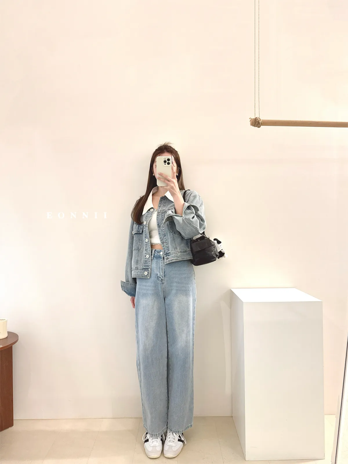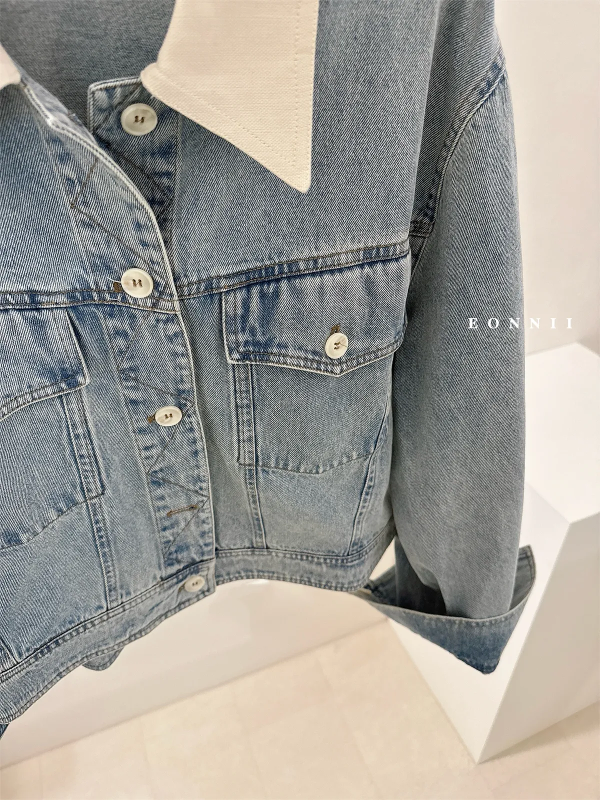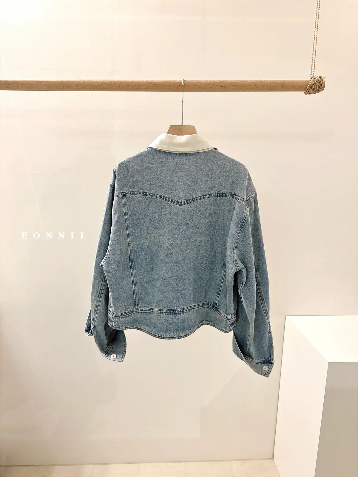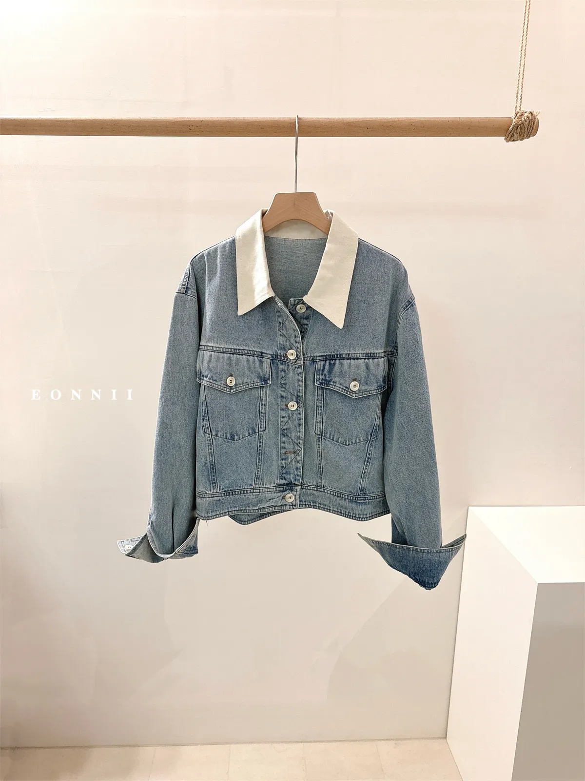 春𝐧𝐞𝐰🤍撞色領短款牛仔外套,藍