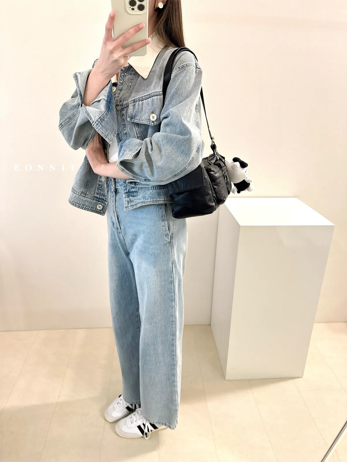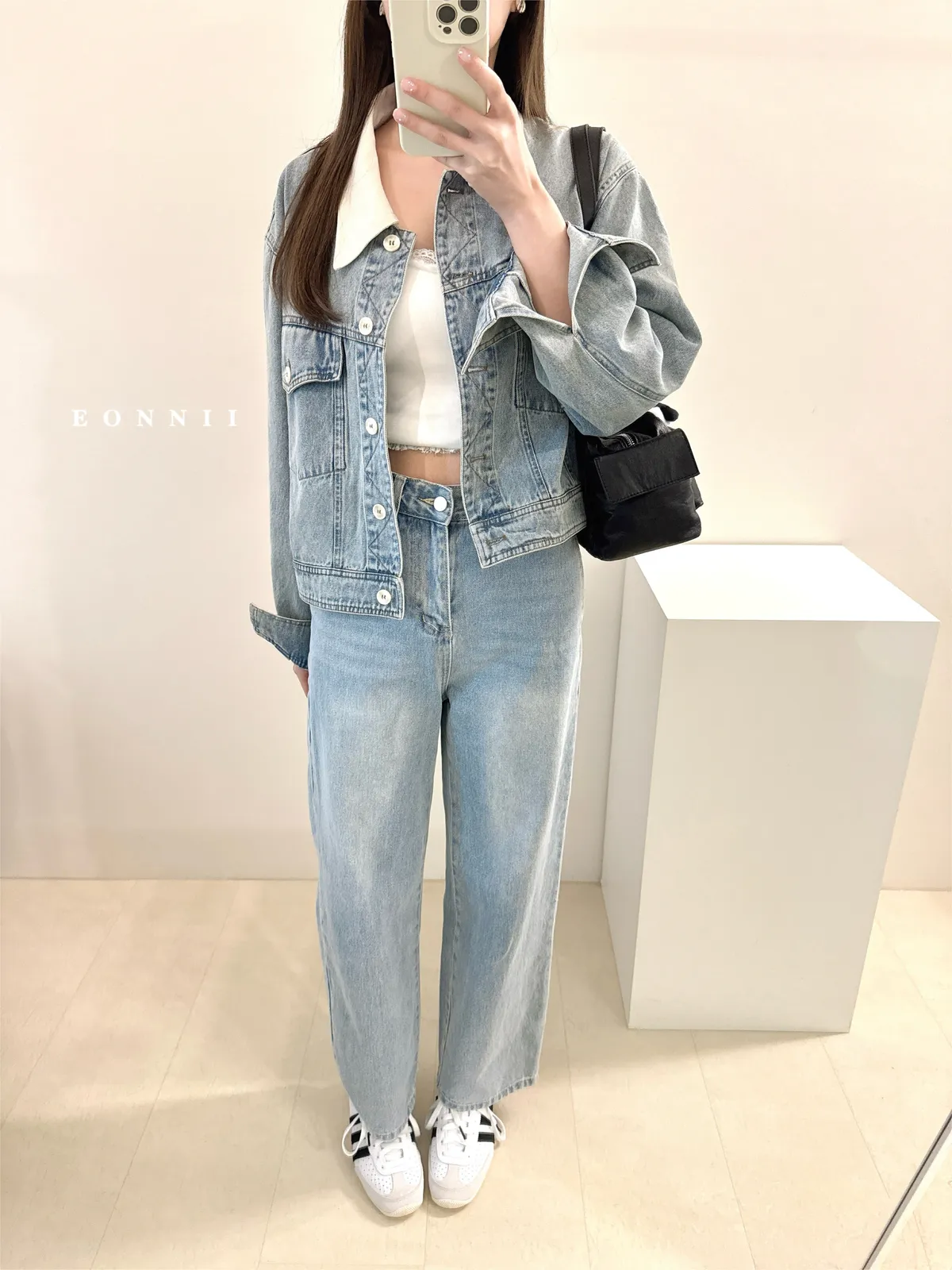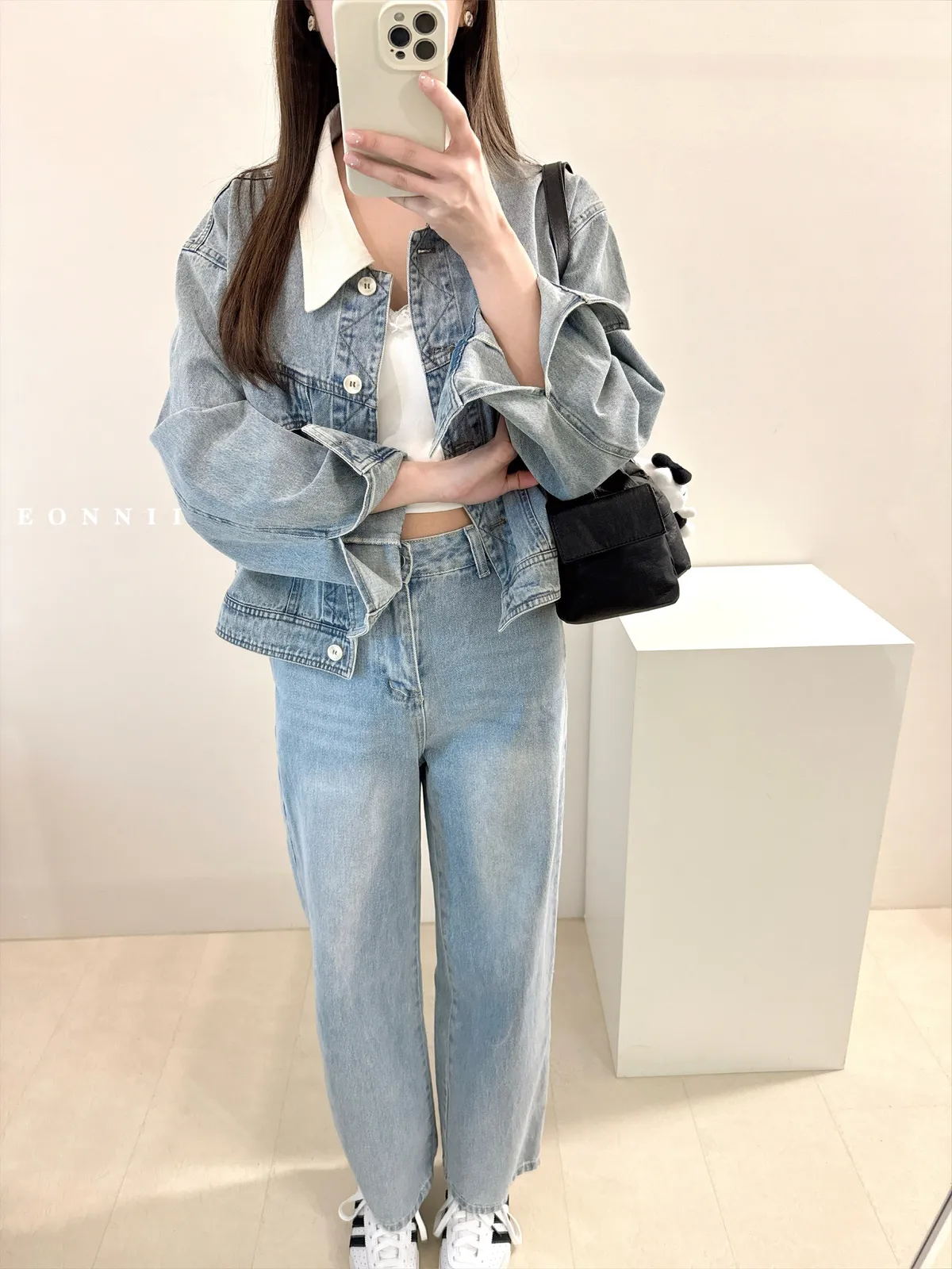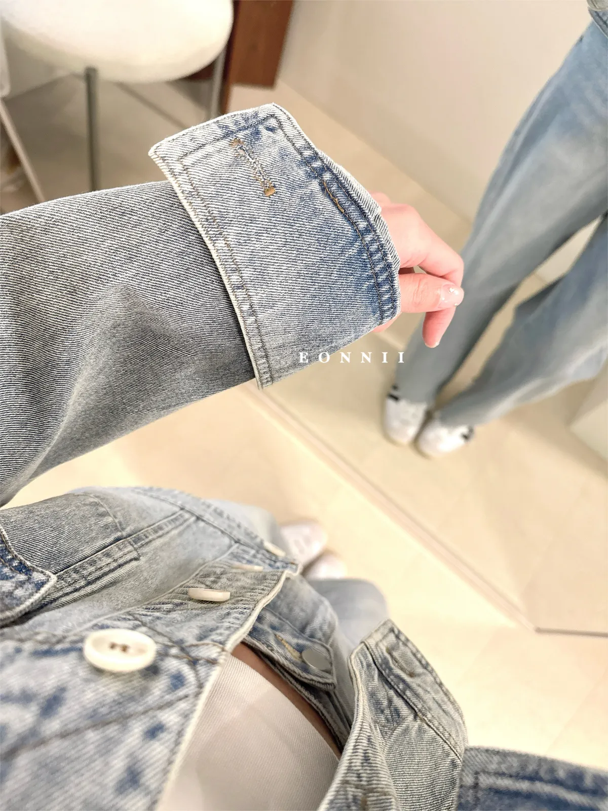 春𝐧𝐞𝐰🤍撞色領短款牛仔外套,藍