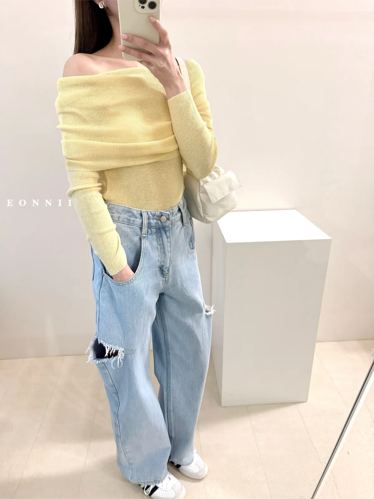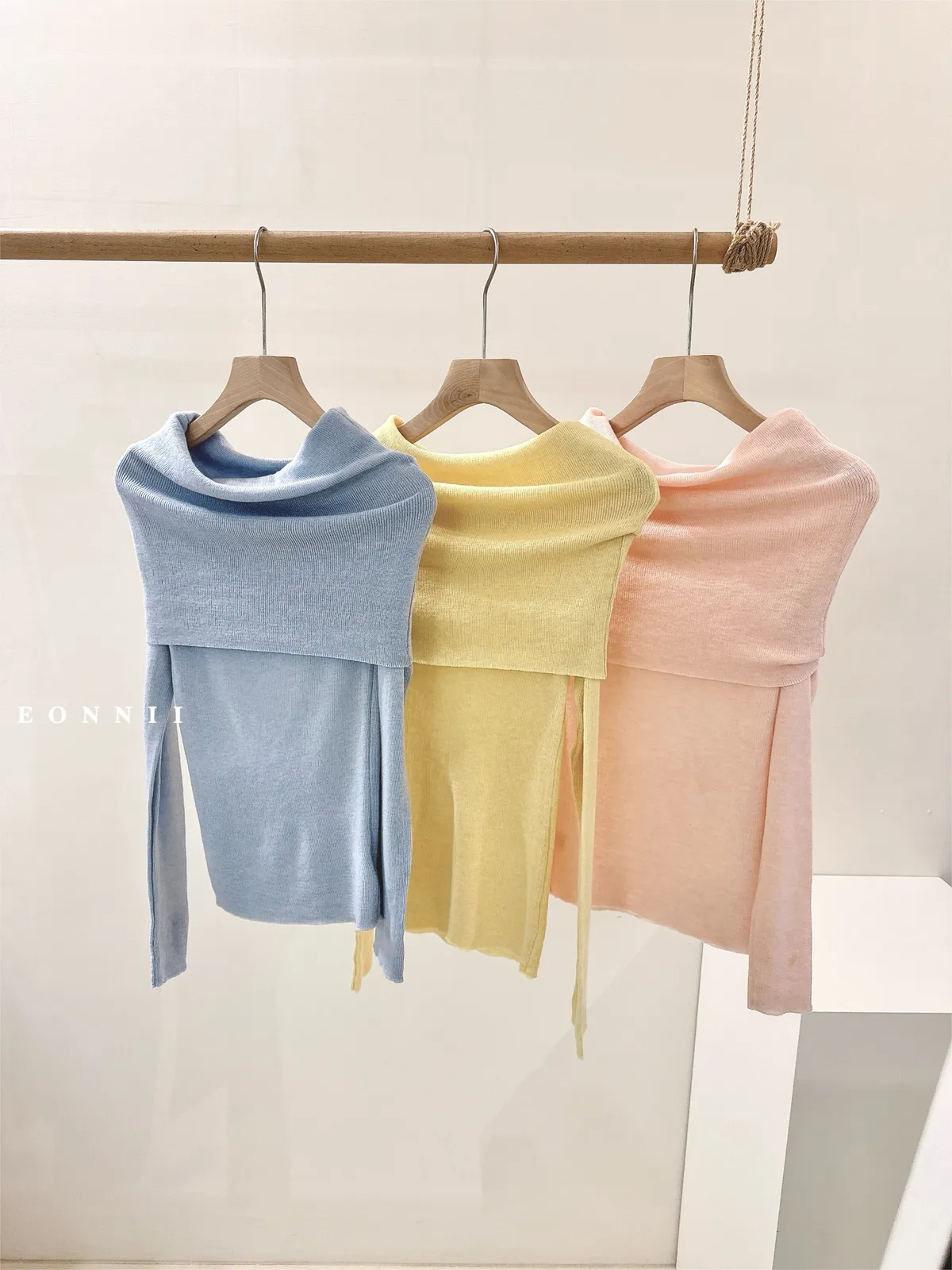 春𝐧𝐞𝐰🤍大翻領平肩針織上衣,黃/粉/藍