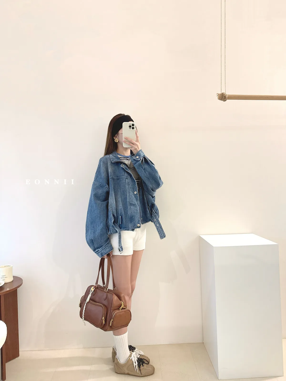 #下單前請查看購買須知、售後服務 可接受在下單❗️ *這款牛仔布料味道偏重 厚度:正常,春天款式 材質:牛仔 📷闆娘:165/48 這款穿S號合身 商品照片闆娘實穿實拍 每人身形胖瘦部位不同,建議參考商品平量尺寸