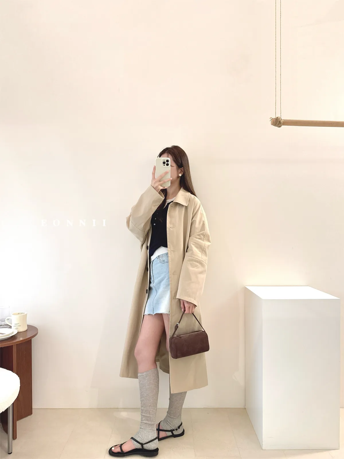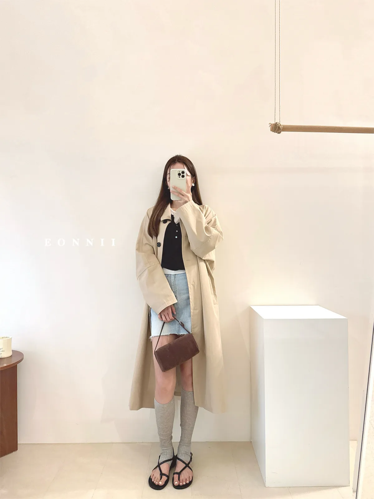 秋𝐧𝐞𝐰🍂基本款黑釦風衣外套,卡其(現貨)