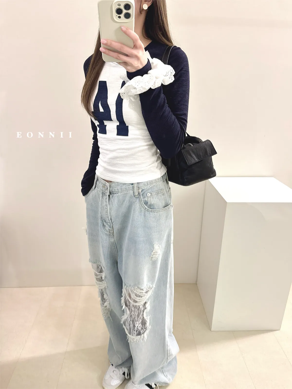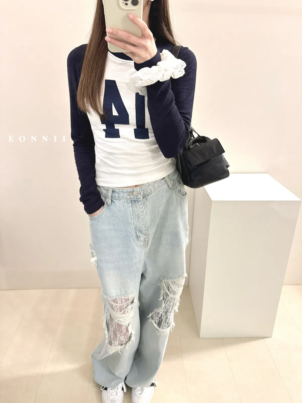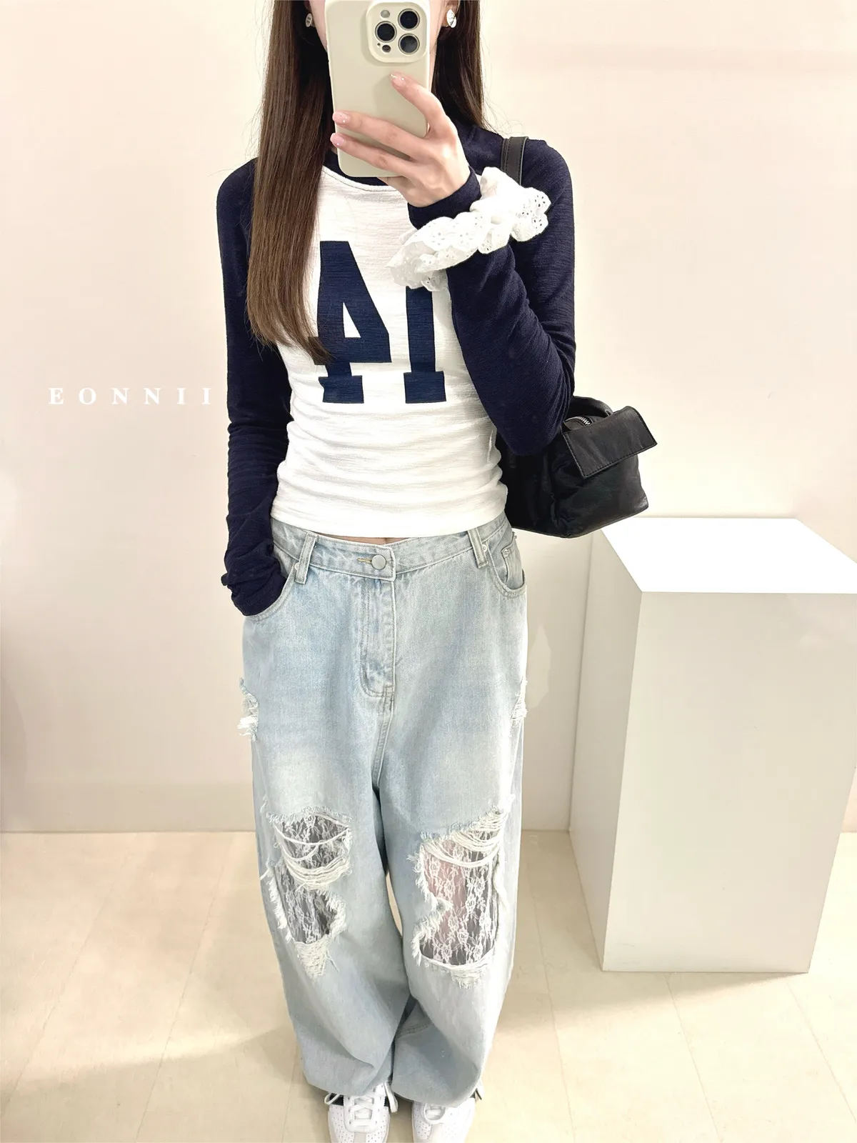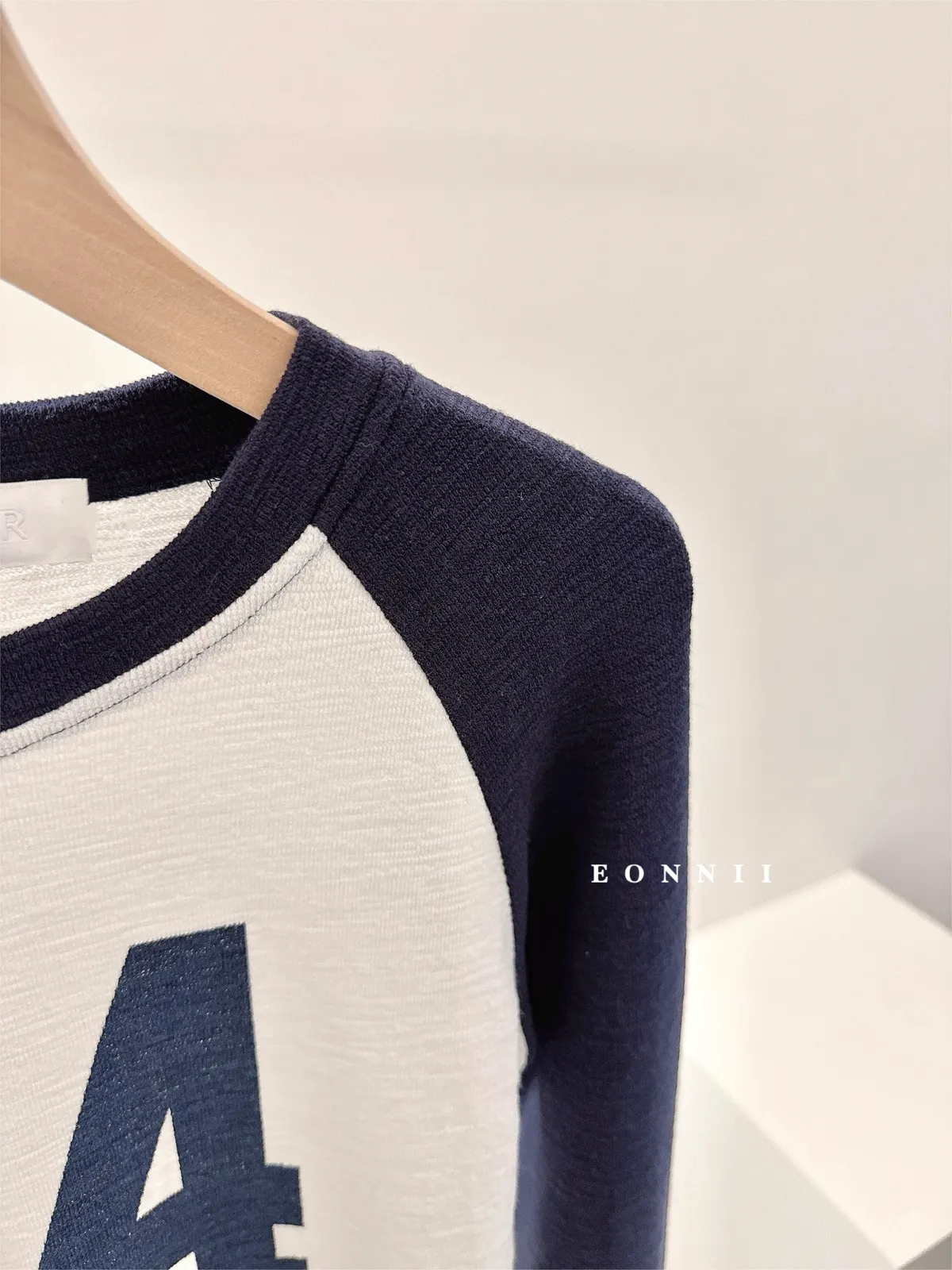 春𝐧𝐞𝐰🤍撞色袖字母棉質tee,藍