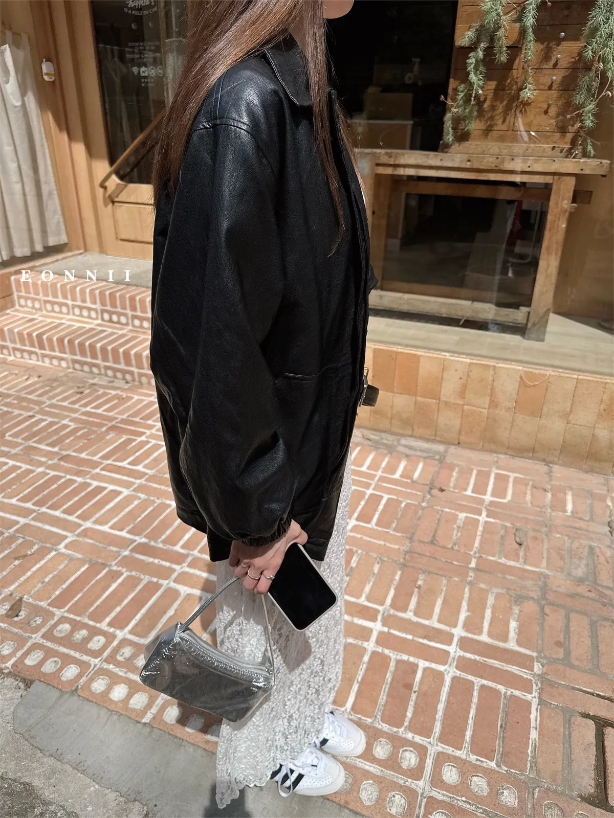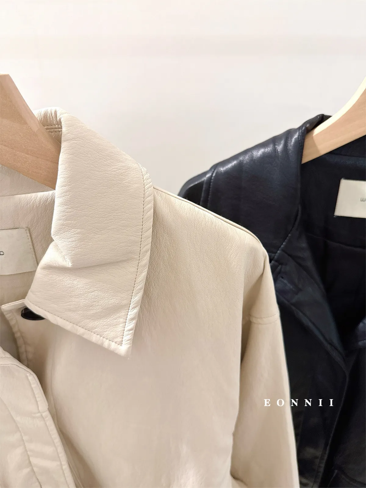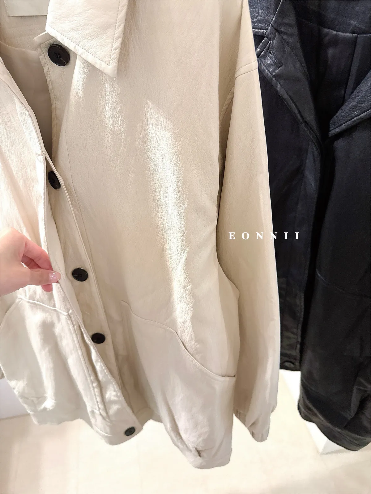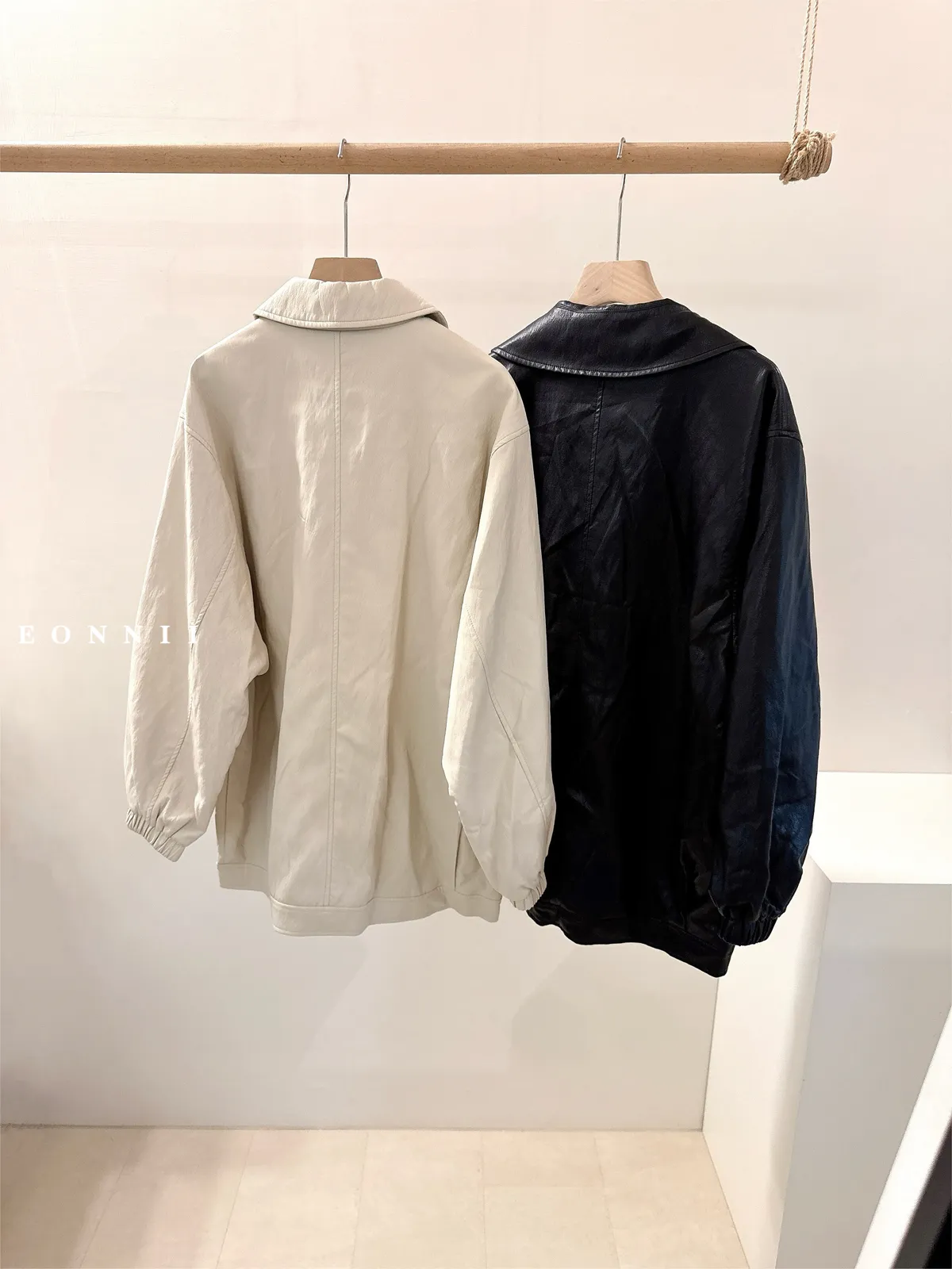 春𝐧𝐞𝐰🤍舒服柔軟寬鬆皮外套,杏/黑