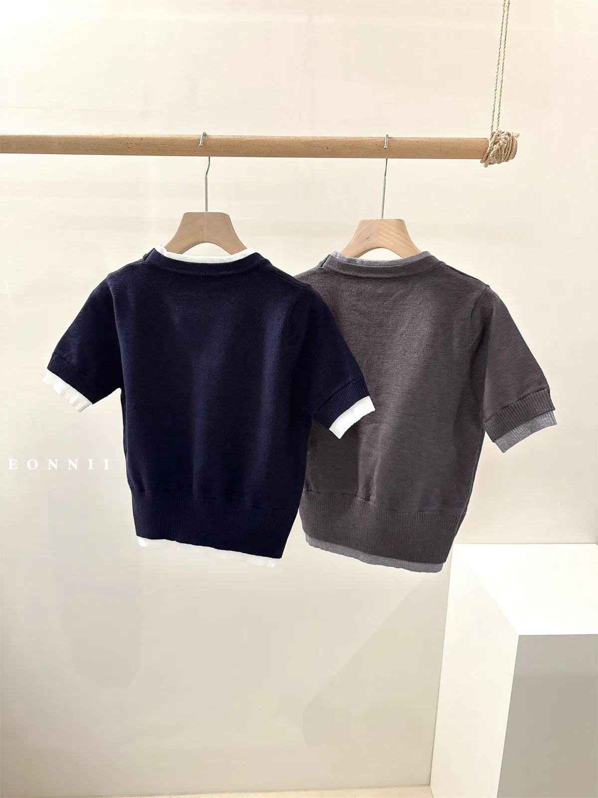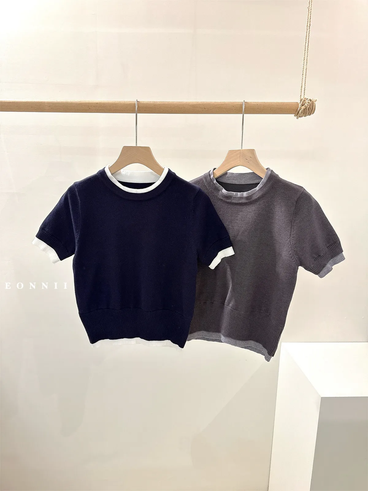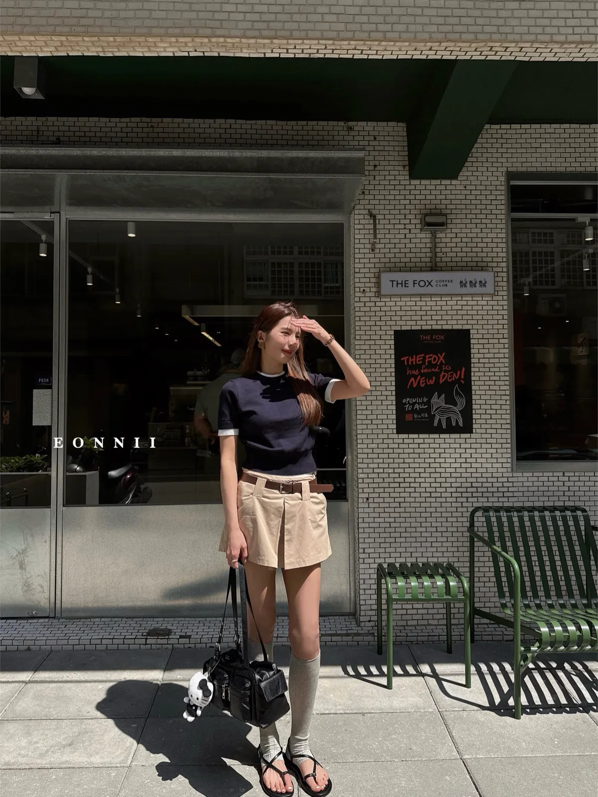 春𝐧𝐞𝐰🤍撞色針織上衣,深藍/灰