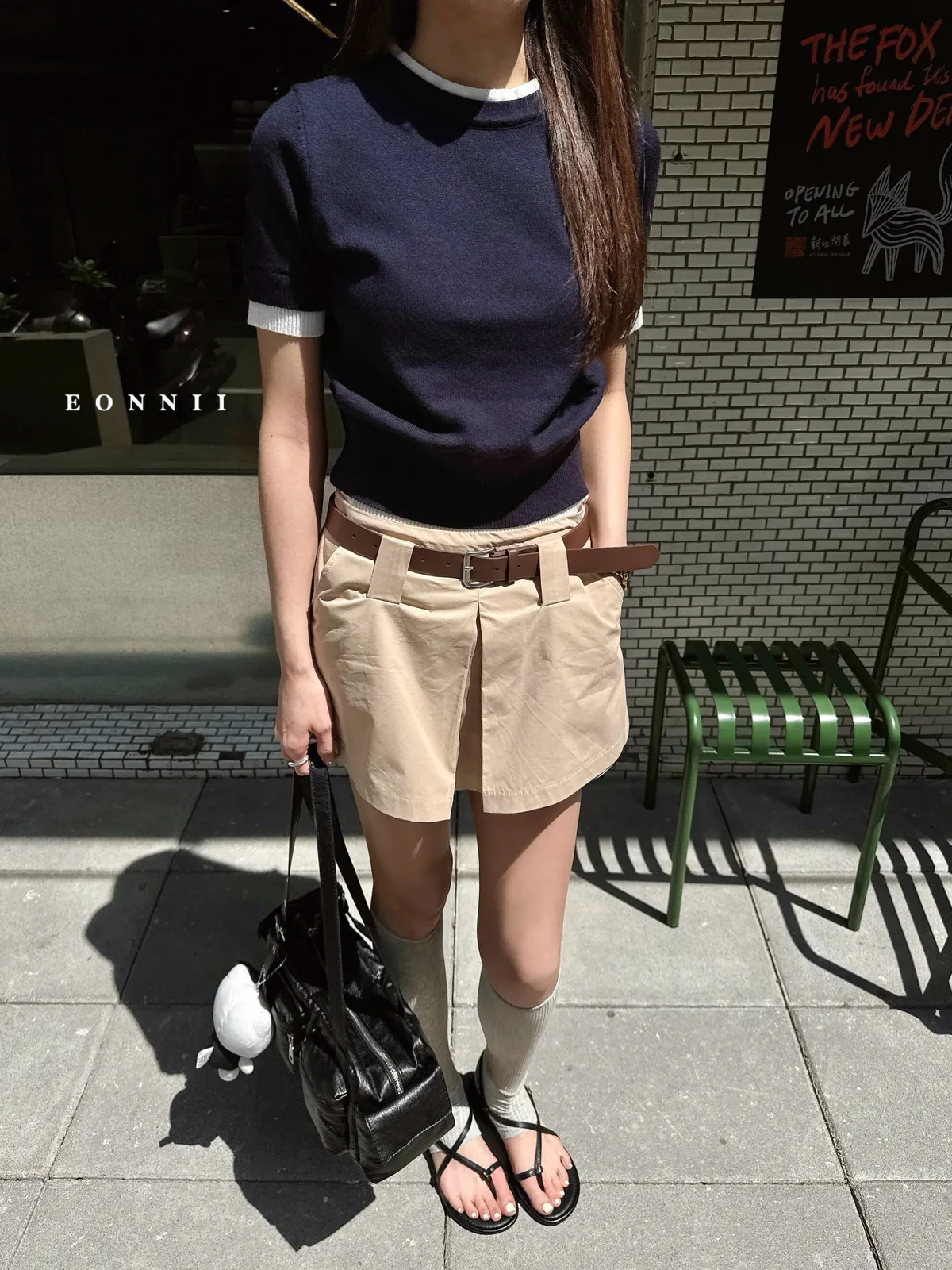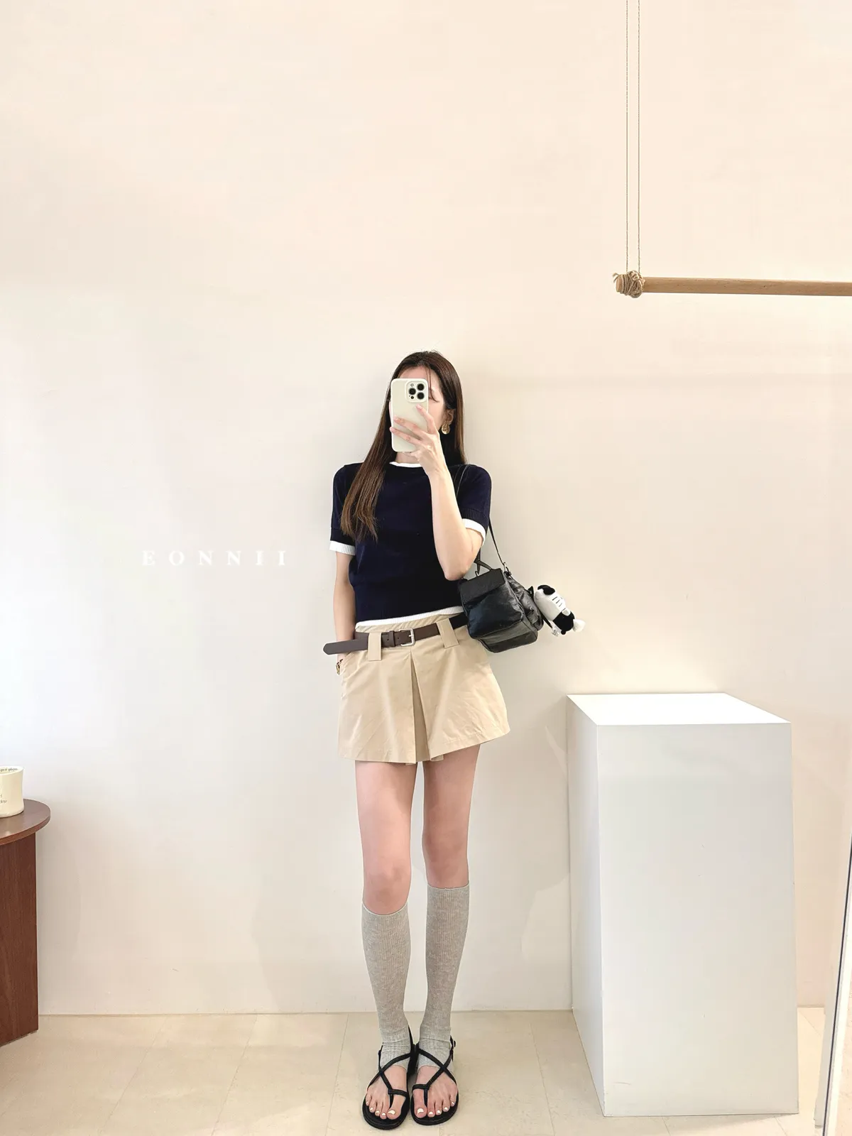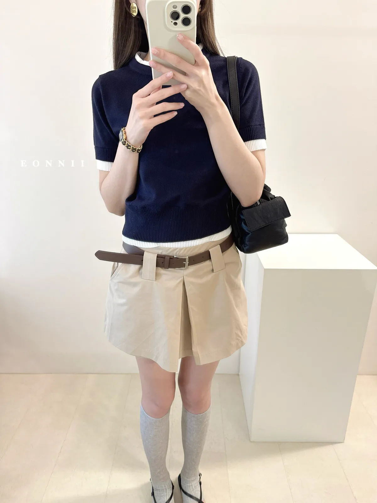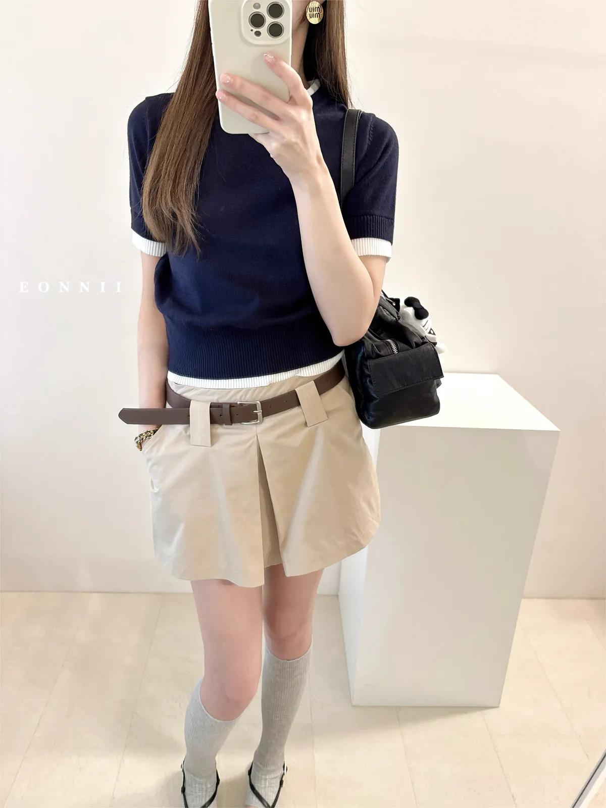 春𝐧𝐞𝐰🤍撞色針織上衣,深藍/灰