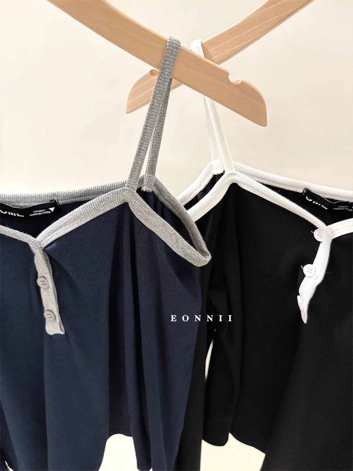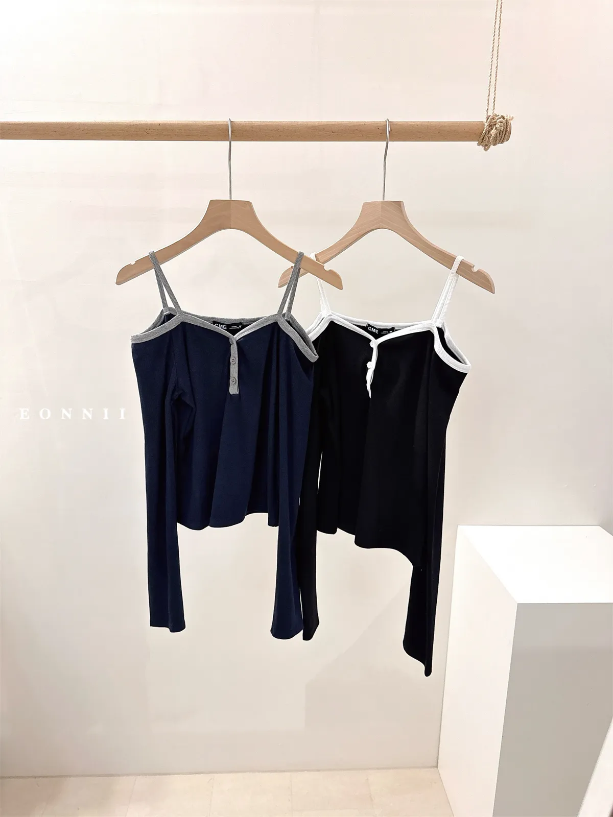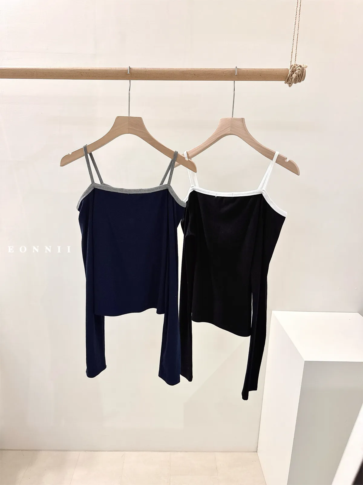 秋𝐧𝐞𝐰🍂細肩撞色露肩上衣,黑/深藍(現貨)