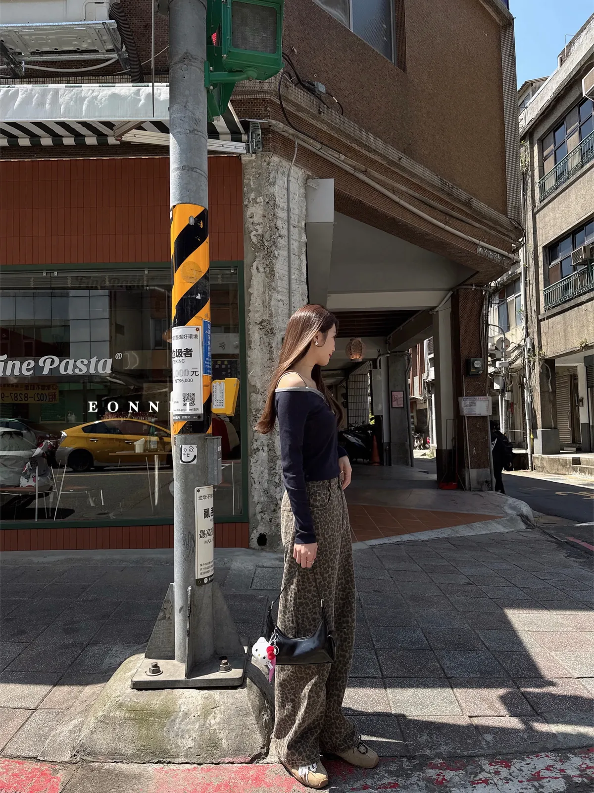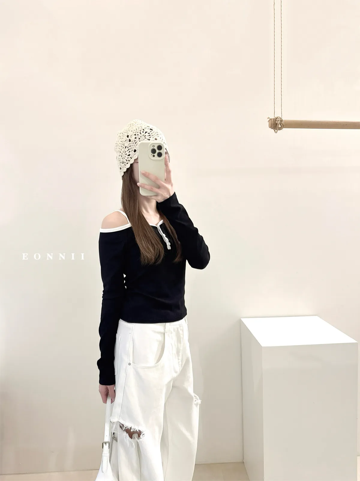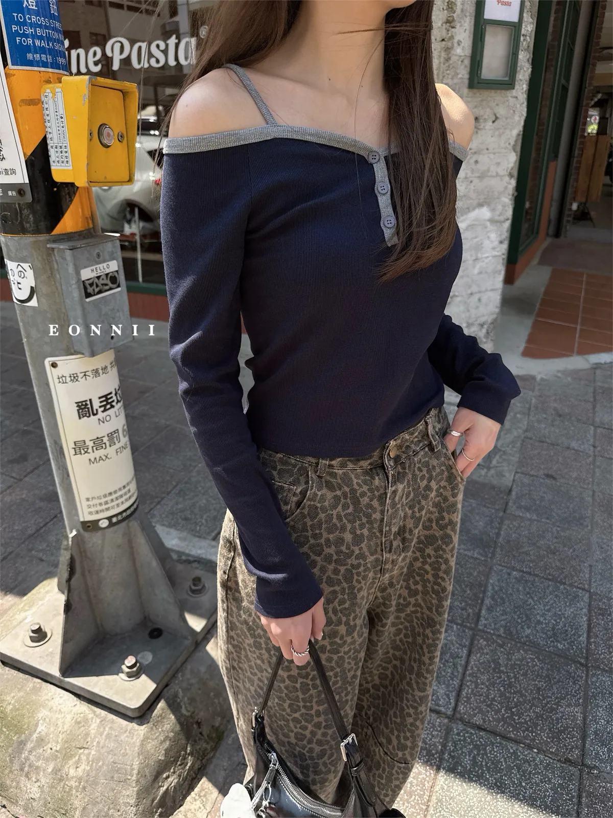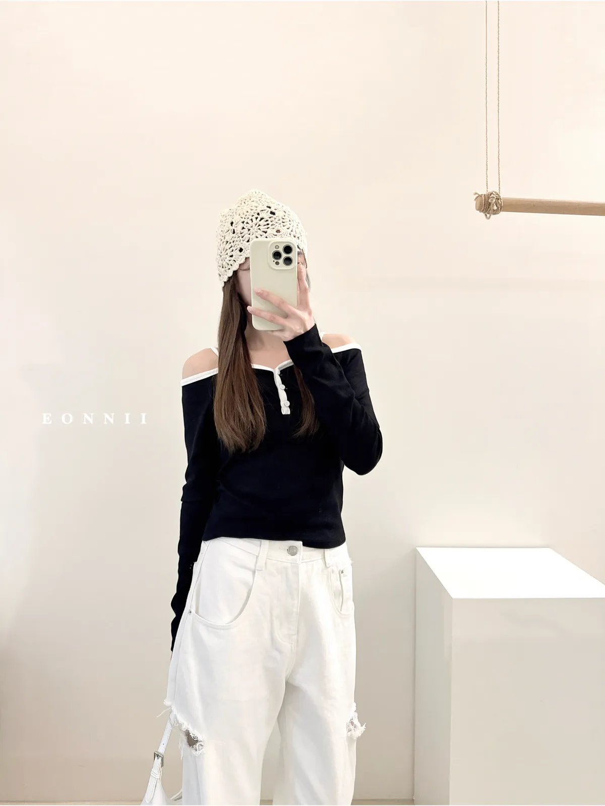 秋𝐧𝐞𝐰🍂細肩撞色露肩上衣,黑/深藍(現貨)