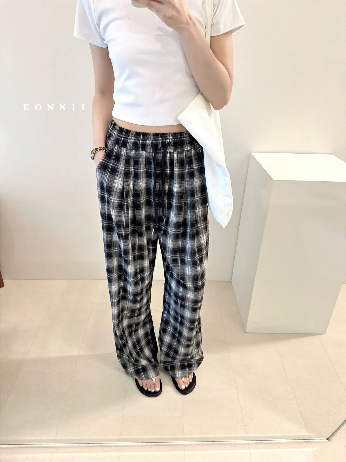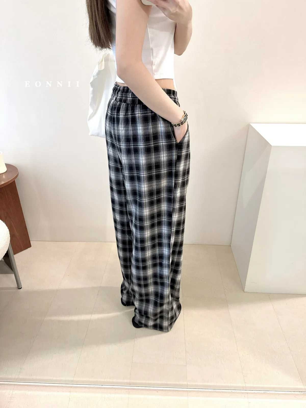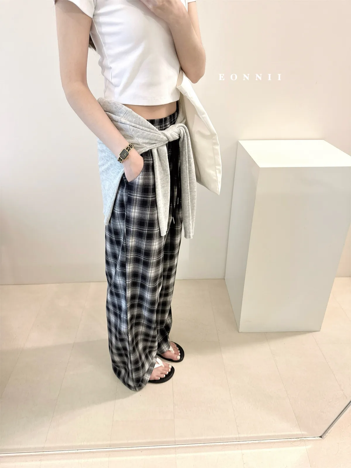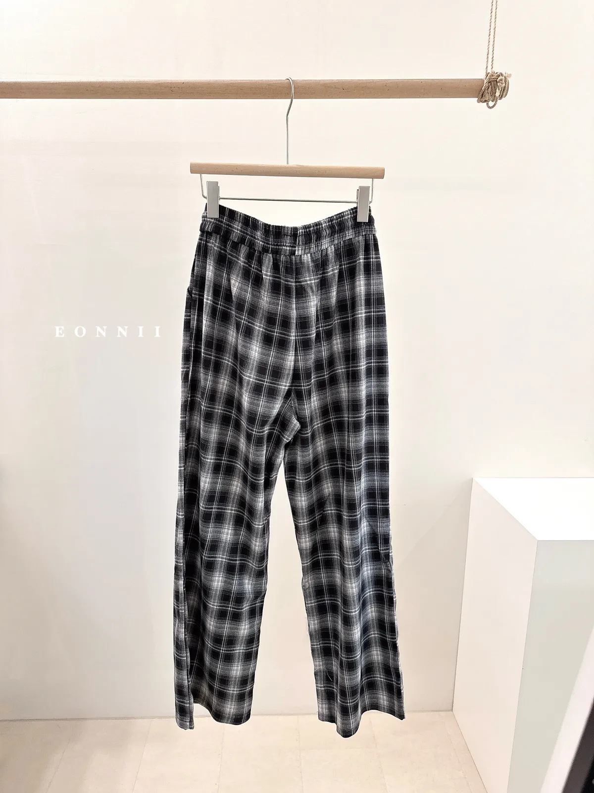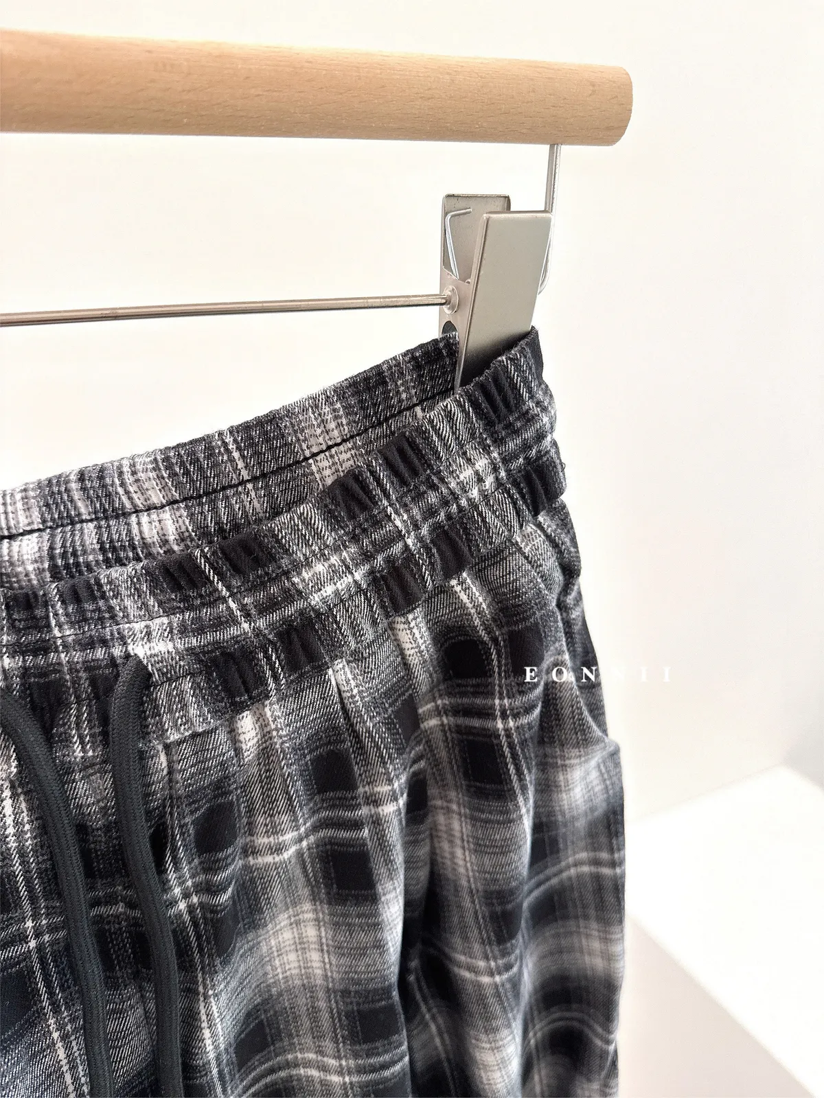 春𝐧𝐞𝐰🤍舒服格子長腿寬褲,黑