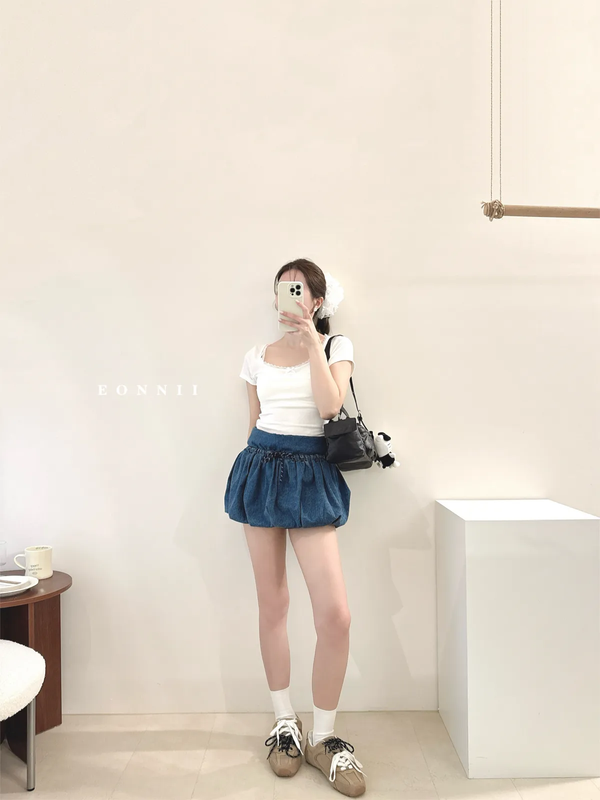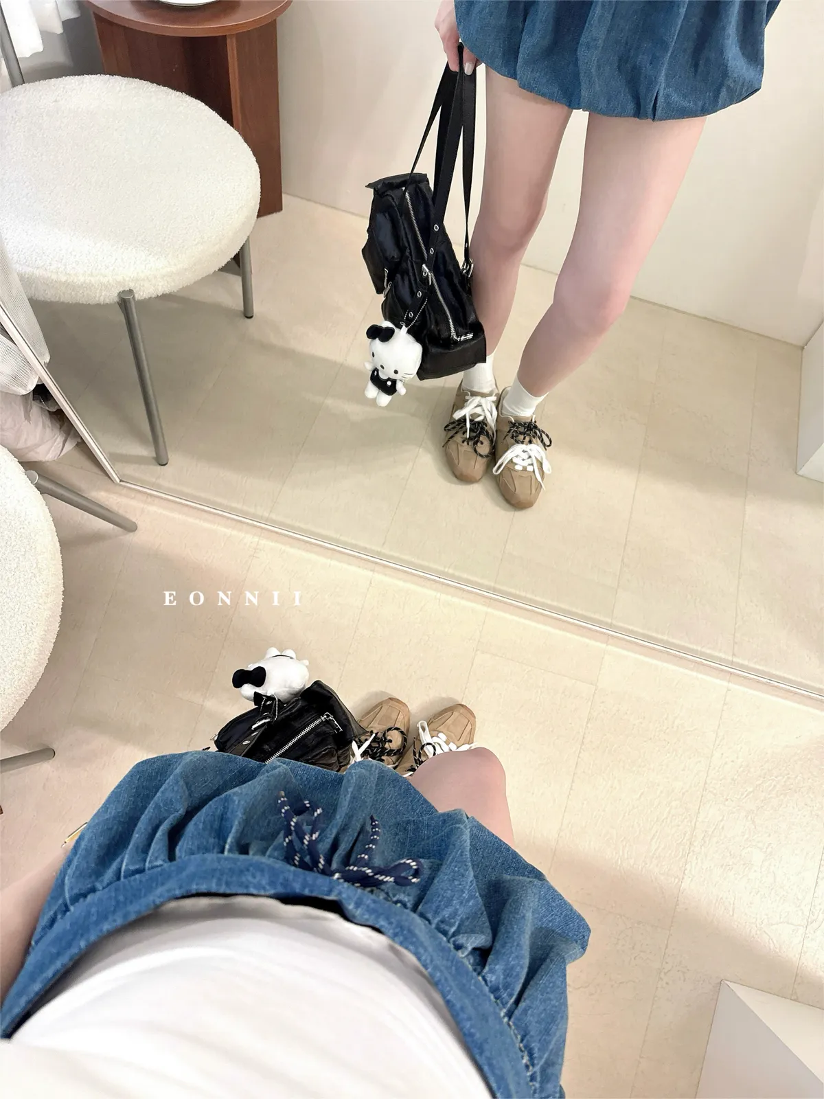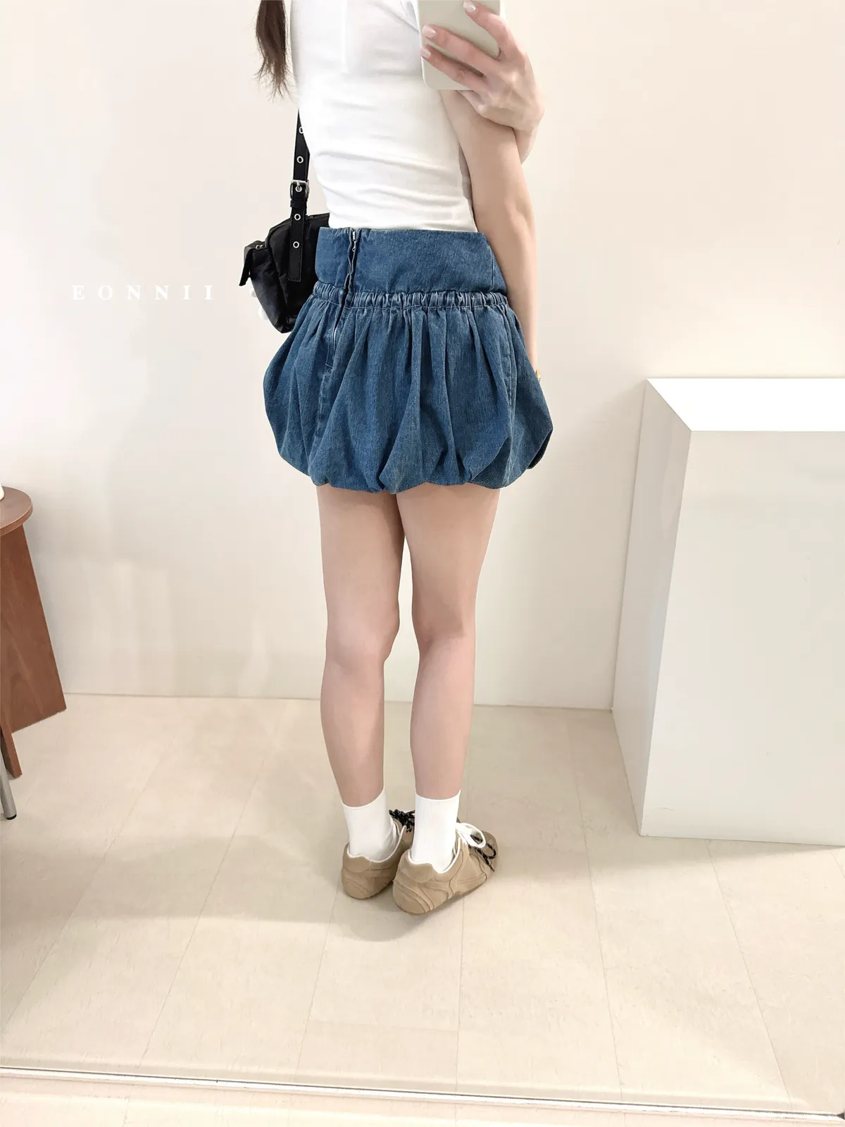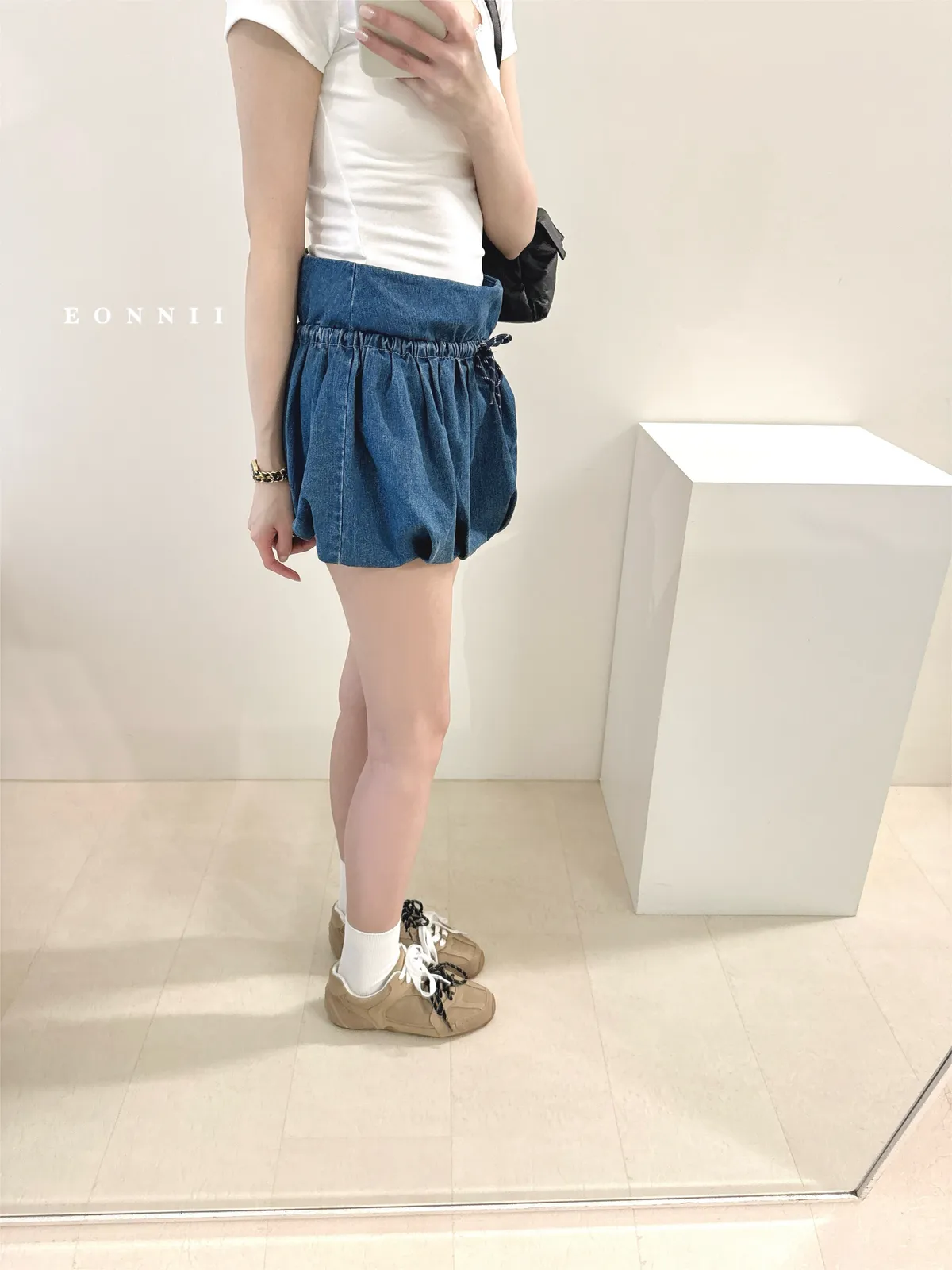 #下單前請查看購買須知、售後服務 可接受在下單❗️ *牛仔布料味道偏重 版型:無彈性//腰後拉鍊//綁結可調整鬆緊//褲型內裡 厚度:薄 材質:牛仔 📷闆娘:165/48 這款穿S號微鬆 商品照片闆娘實穿實拍 每人身形胖瘦部位不同,建議參考商品平量尺寸