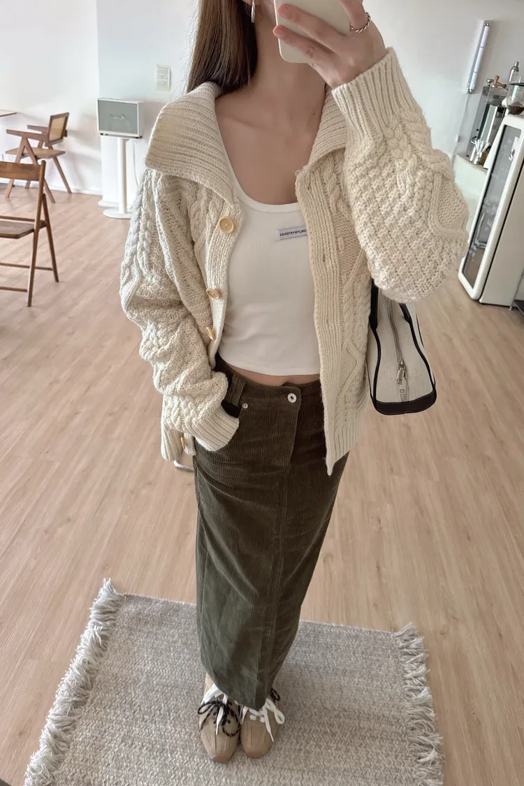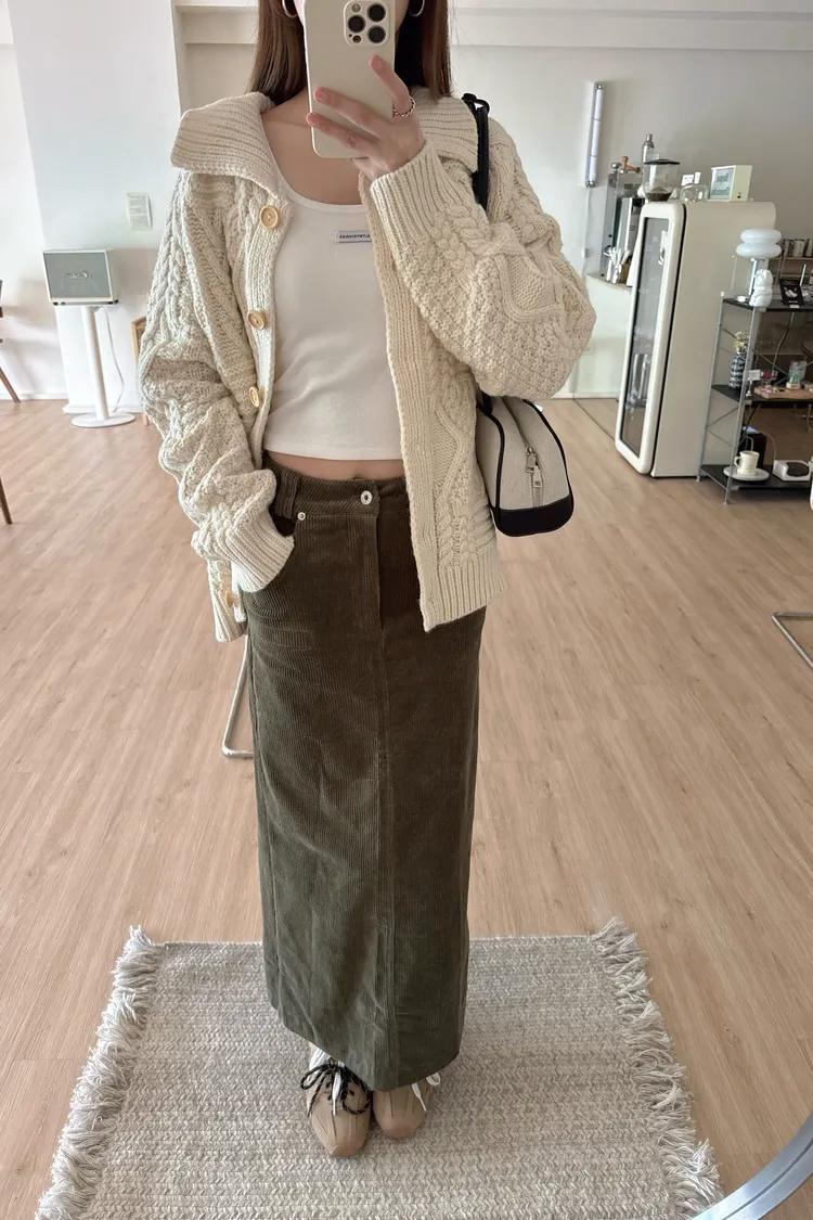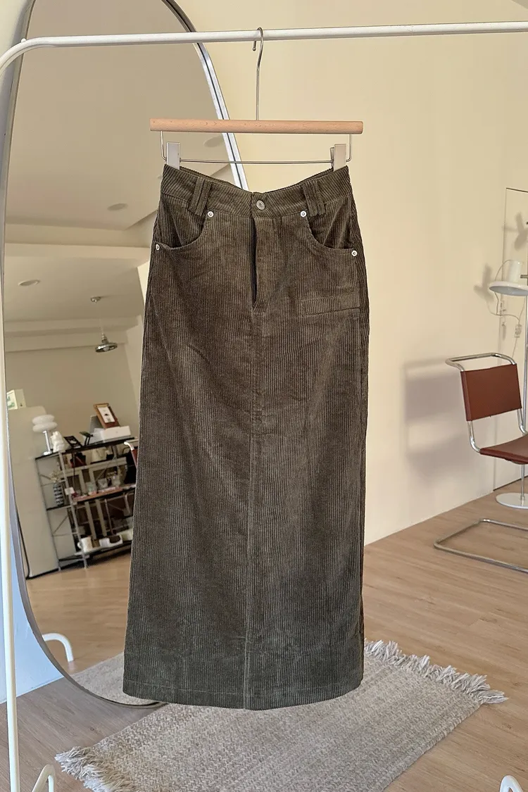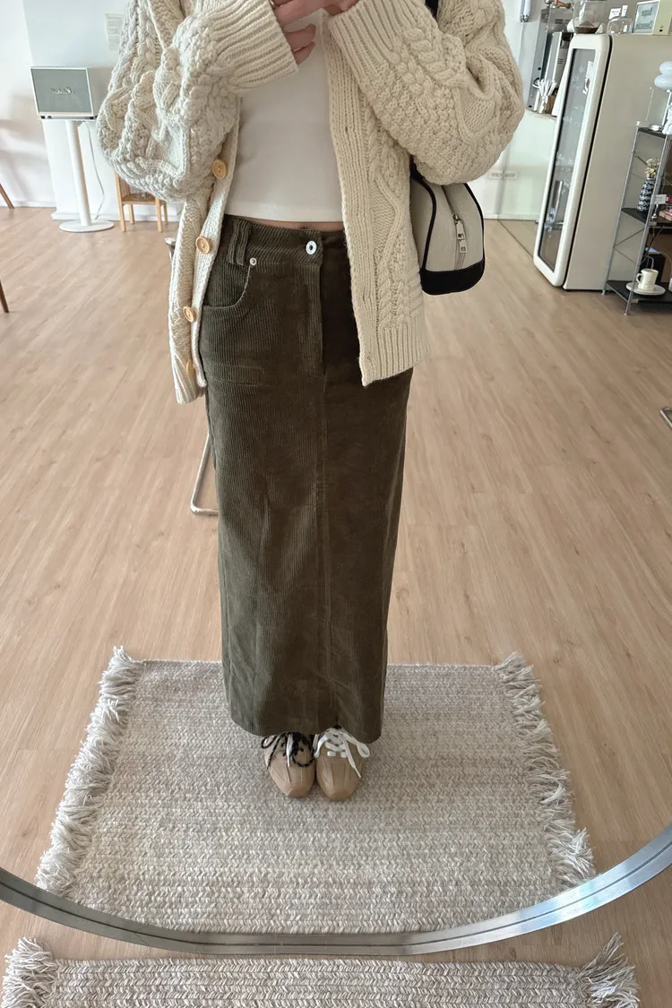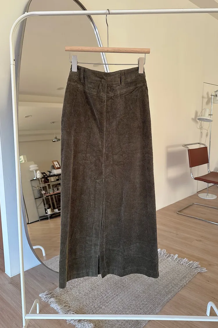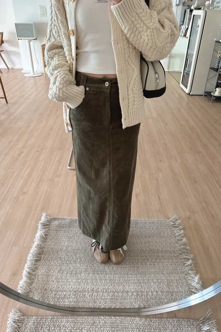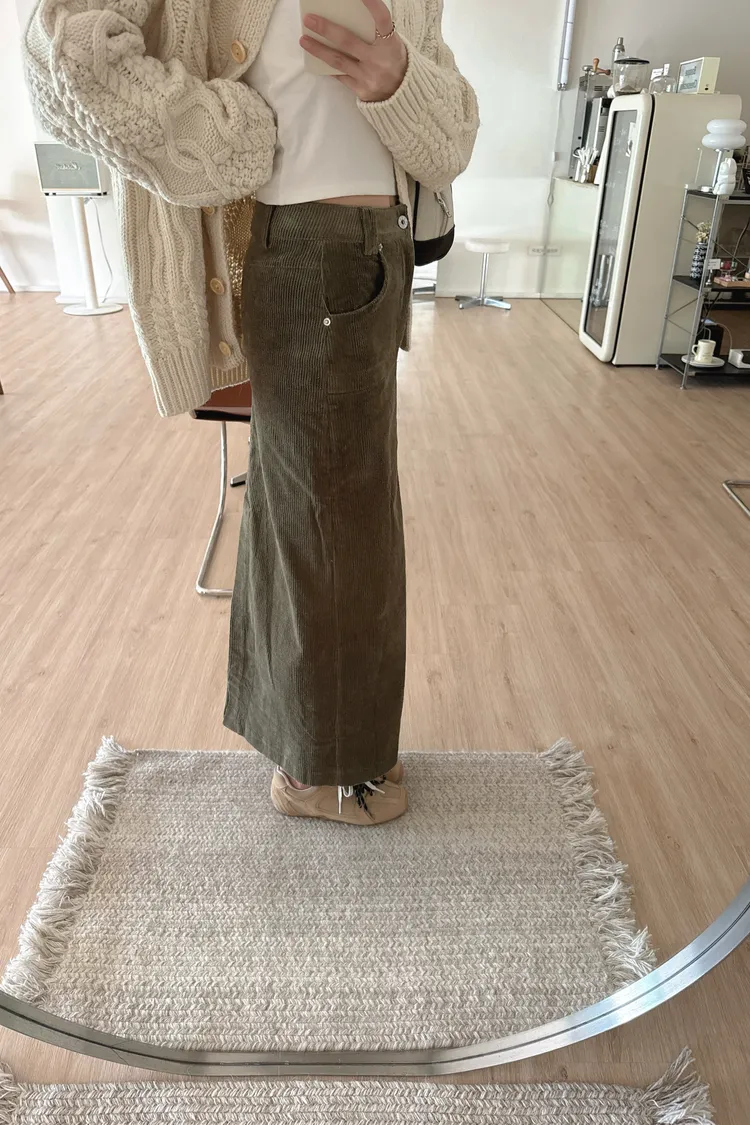 冬𝐧𝐞𝐰🍁燈芯絨開岔長裙,綠s/m