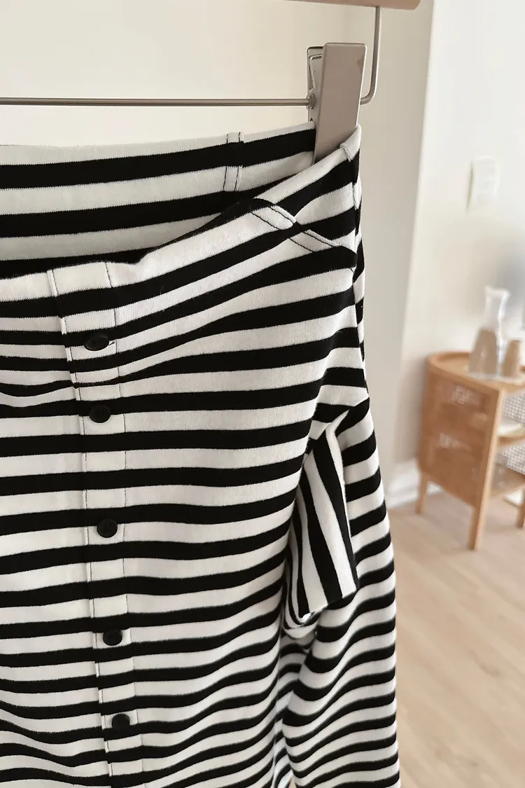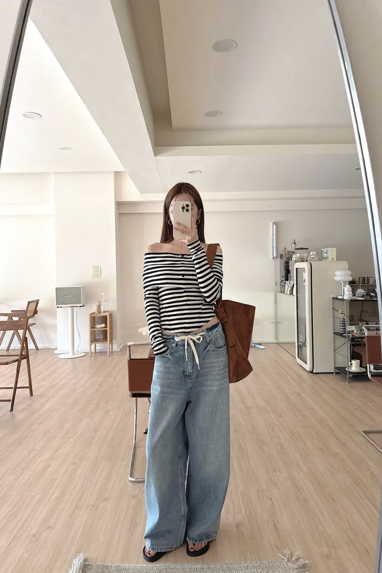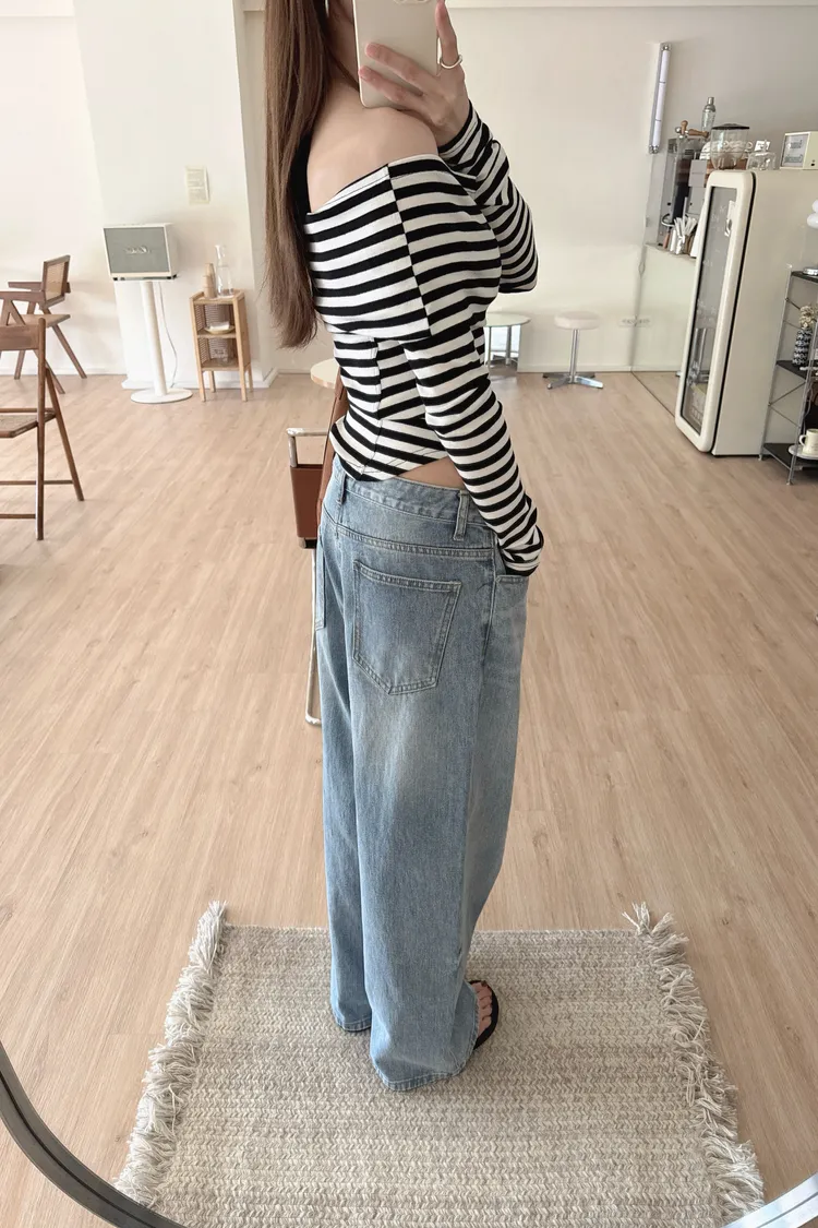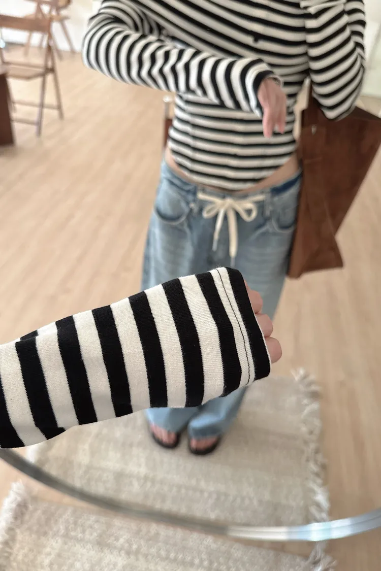 秋𝐧𝐞𝐰🍂條紋露肩圓弧下擺上衣(現貨)