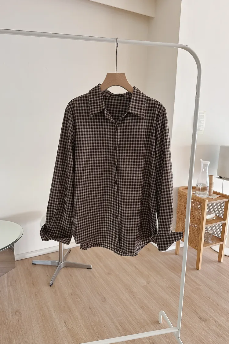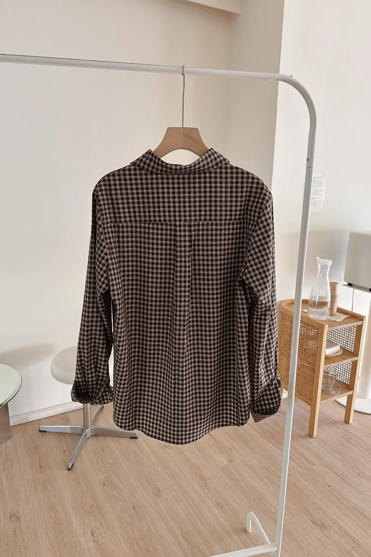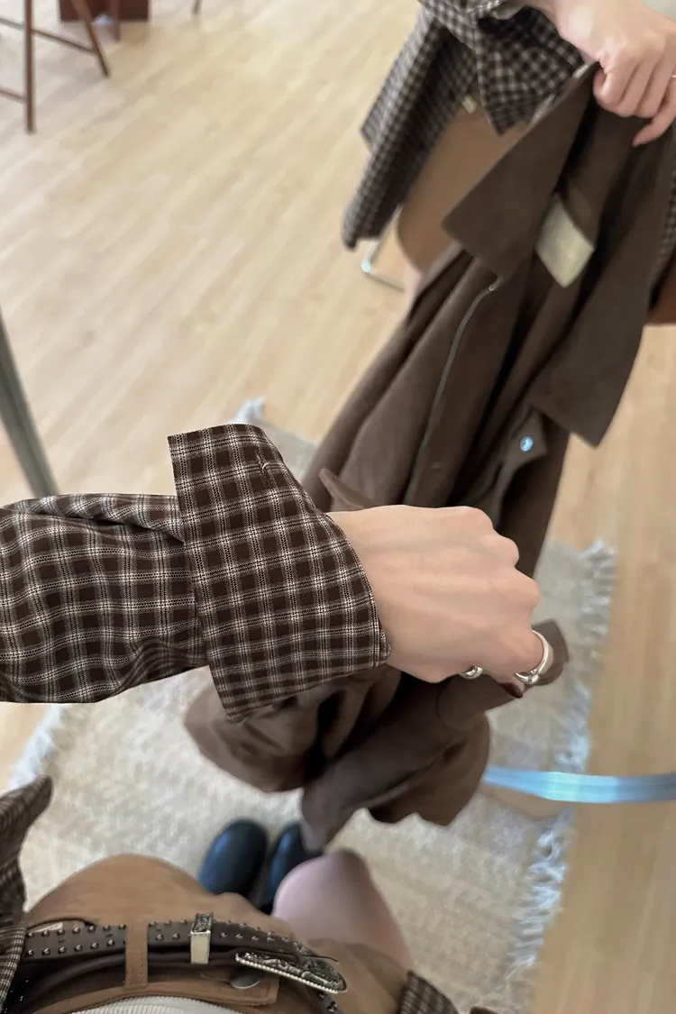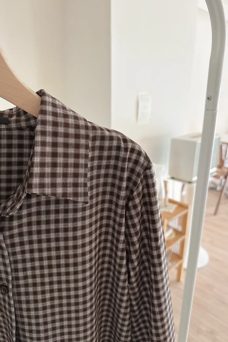 秋𝐧𝐞𝐰🍂小格子咖色薄襯衫