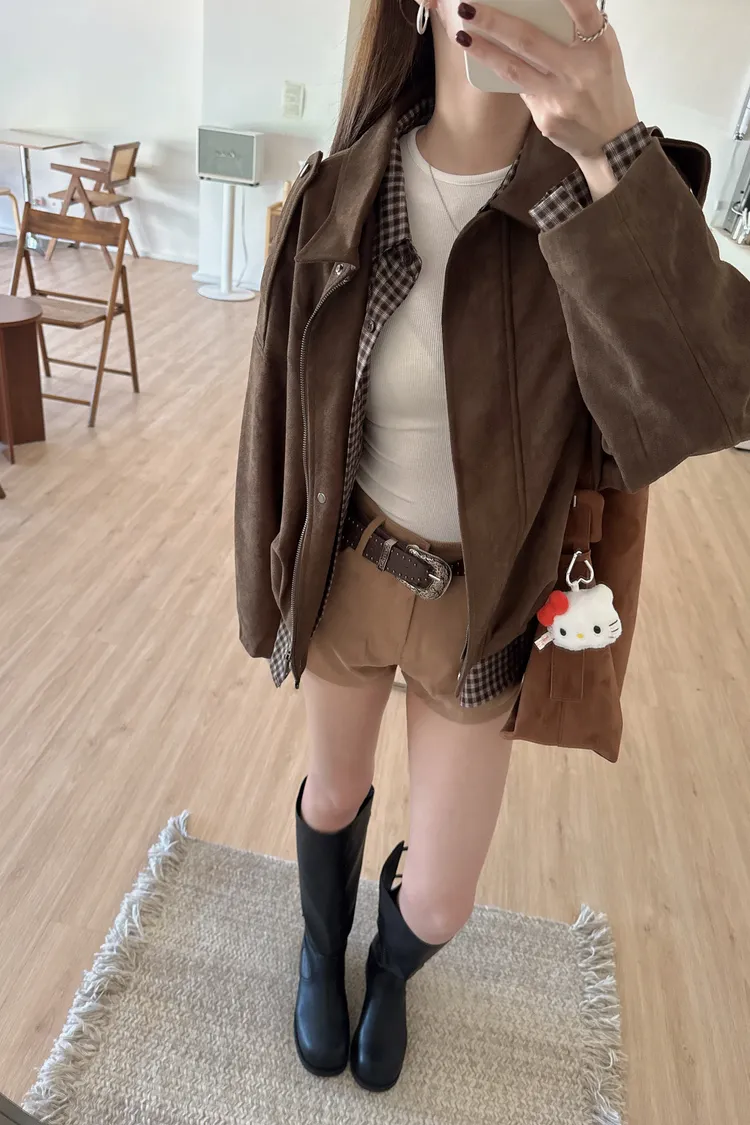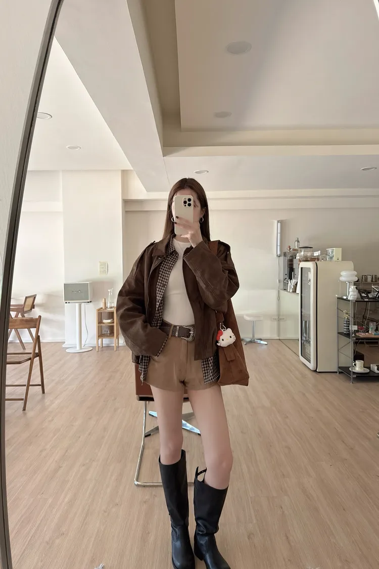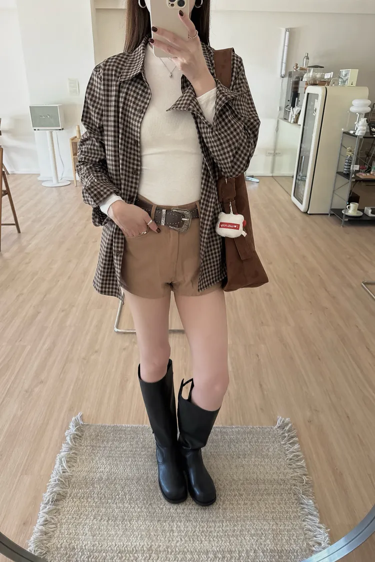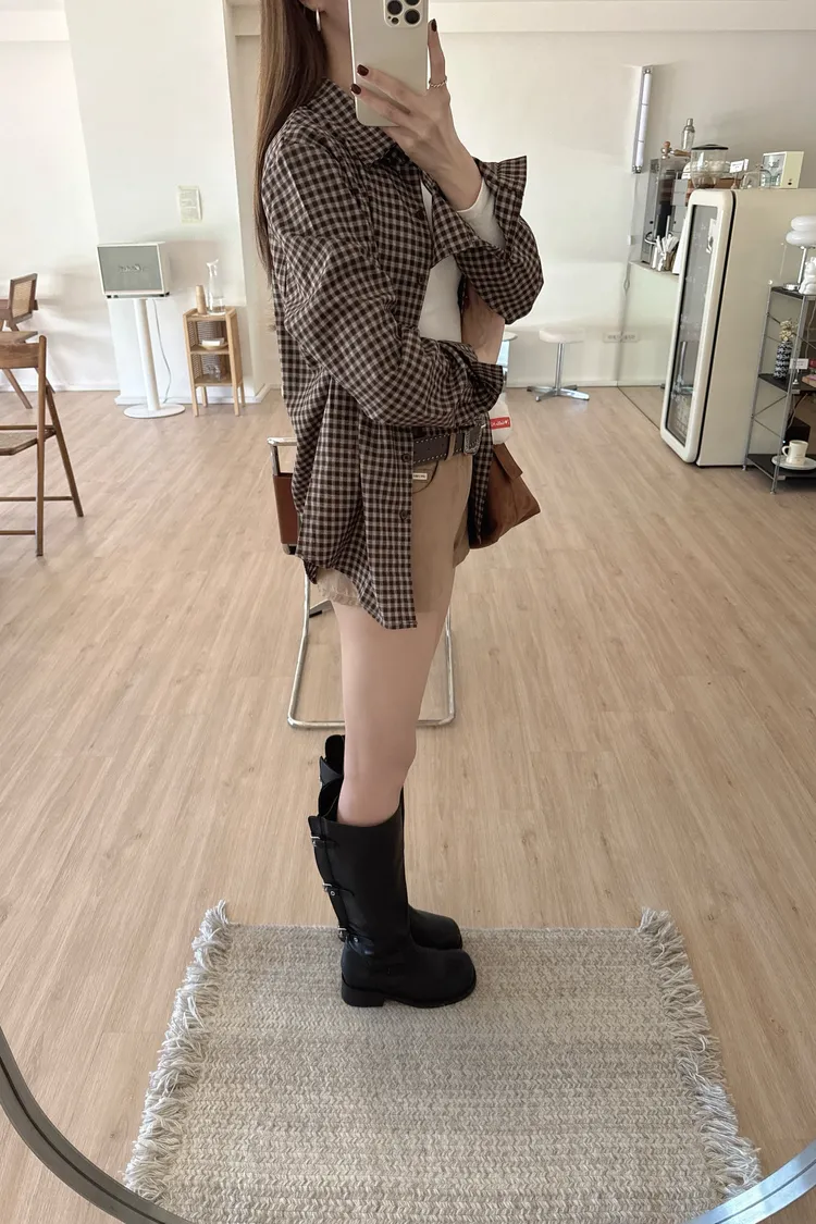 秋𝐧𝐞𝐰🍂小格子咖色薄襯衫