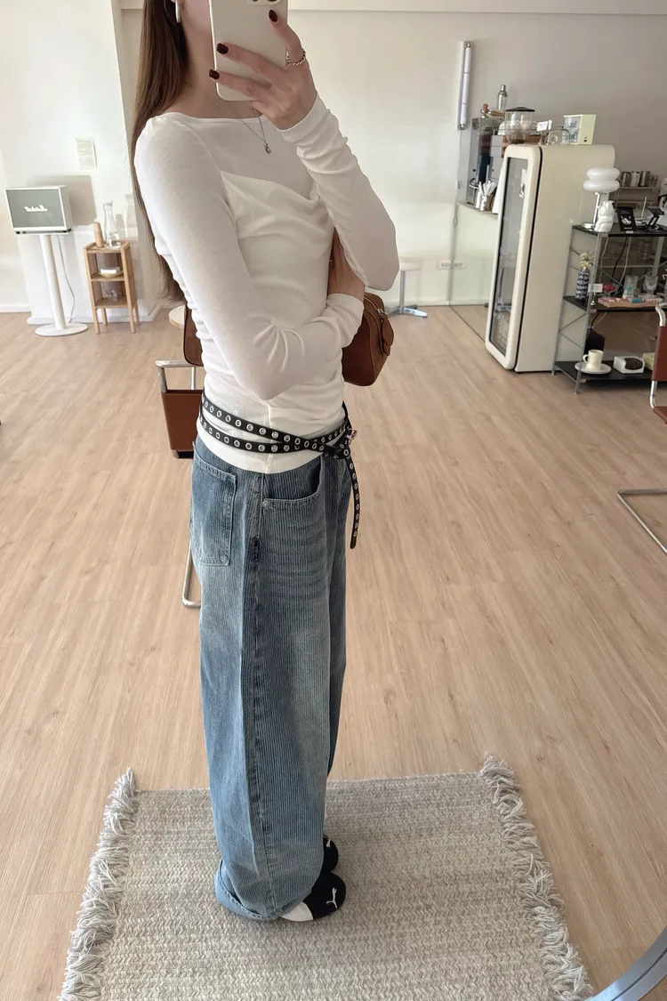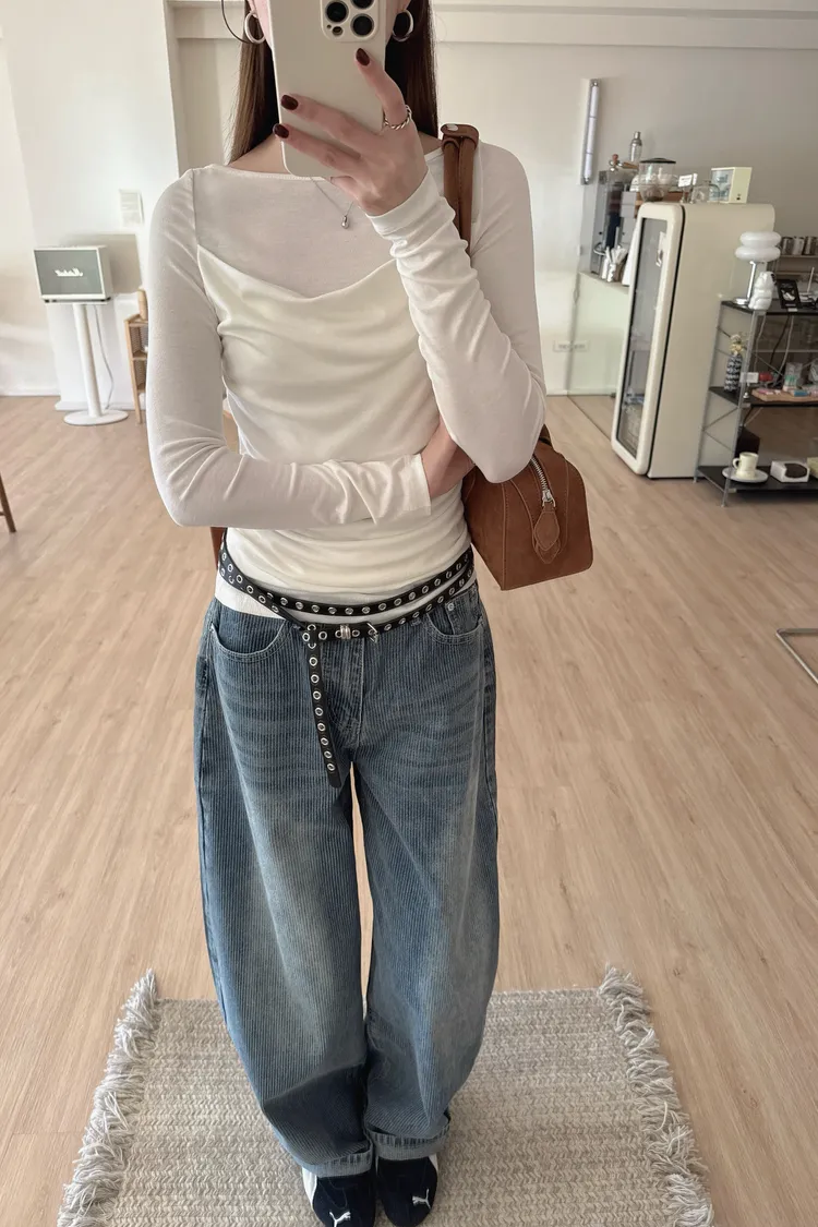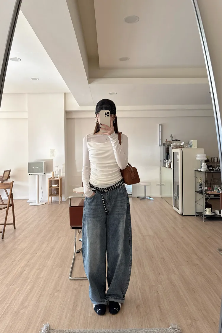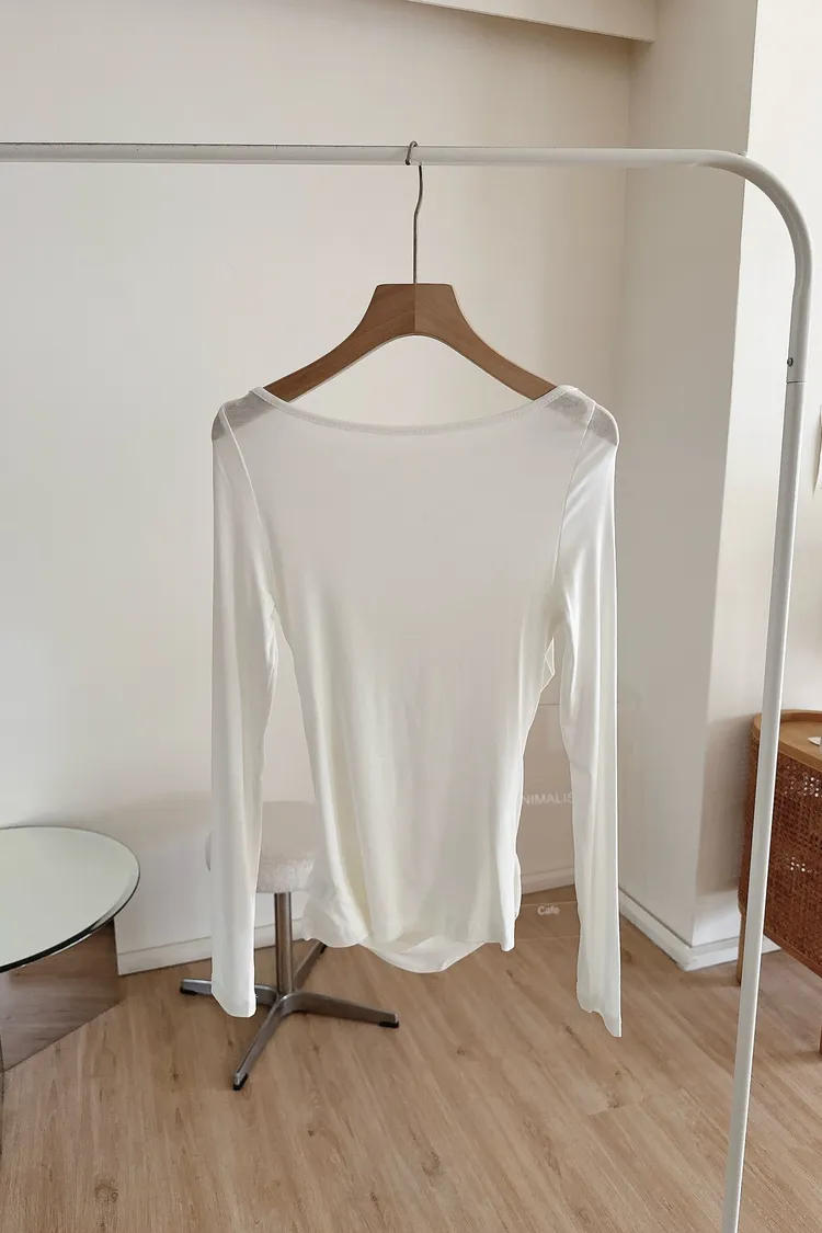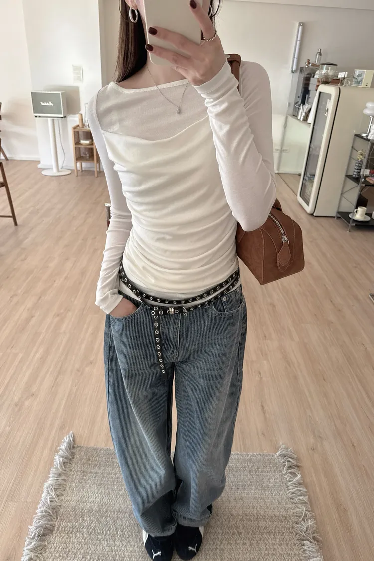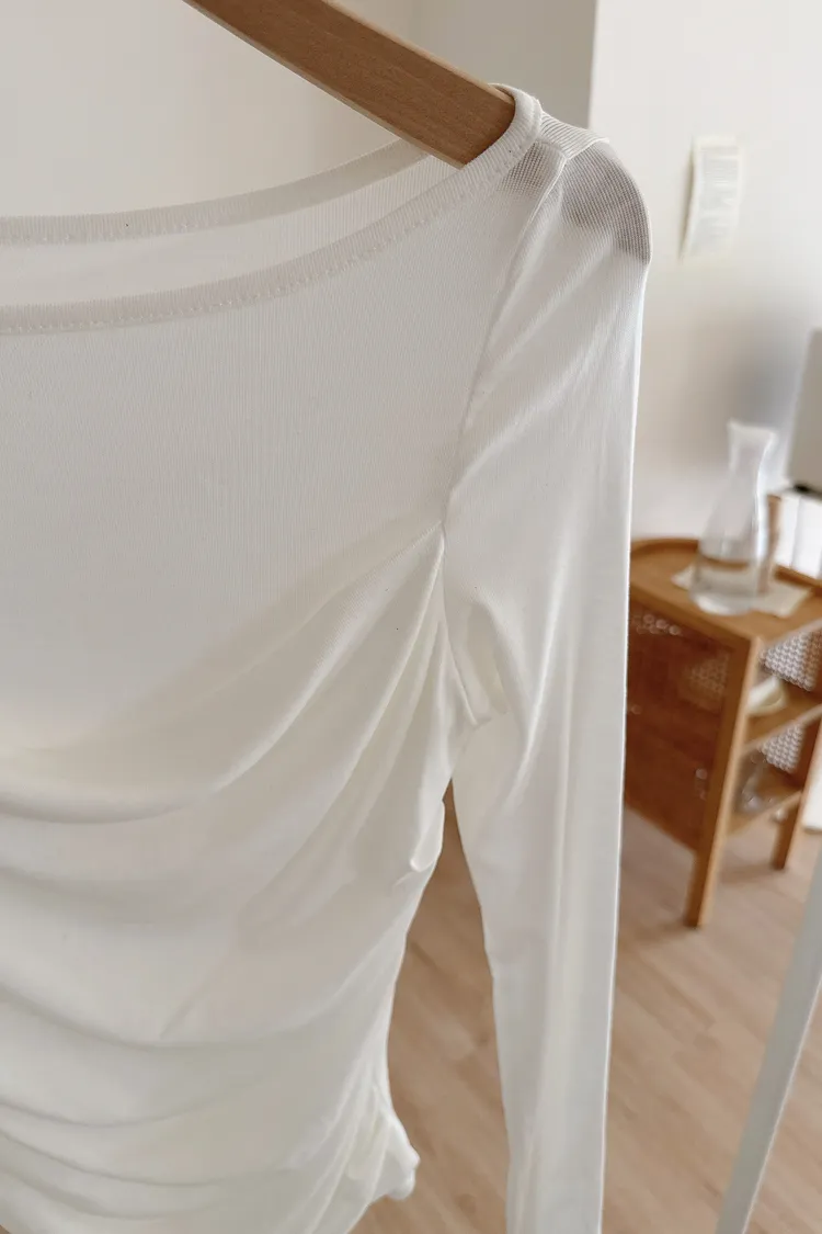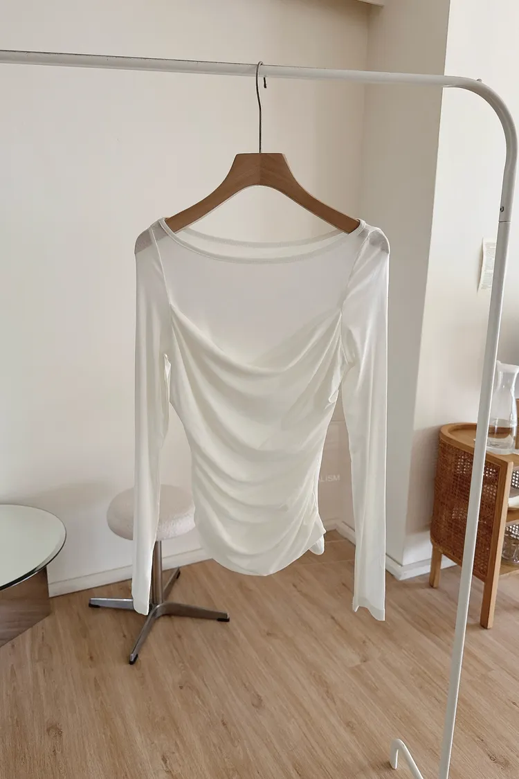 秋𝐧𝐞𝐰🍂透視皺摺感上衣,米白