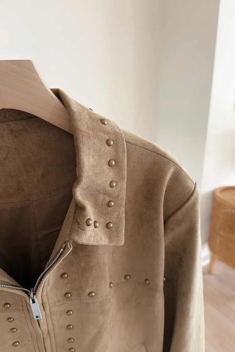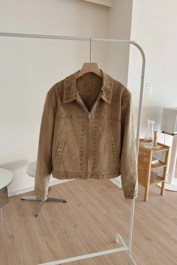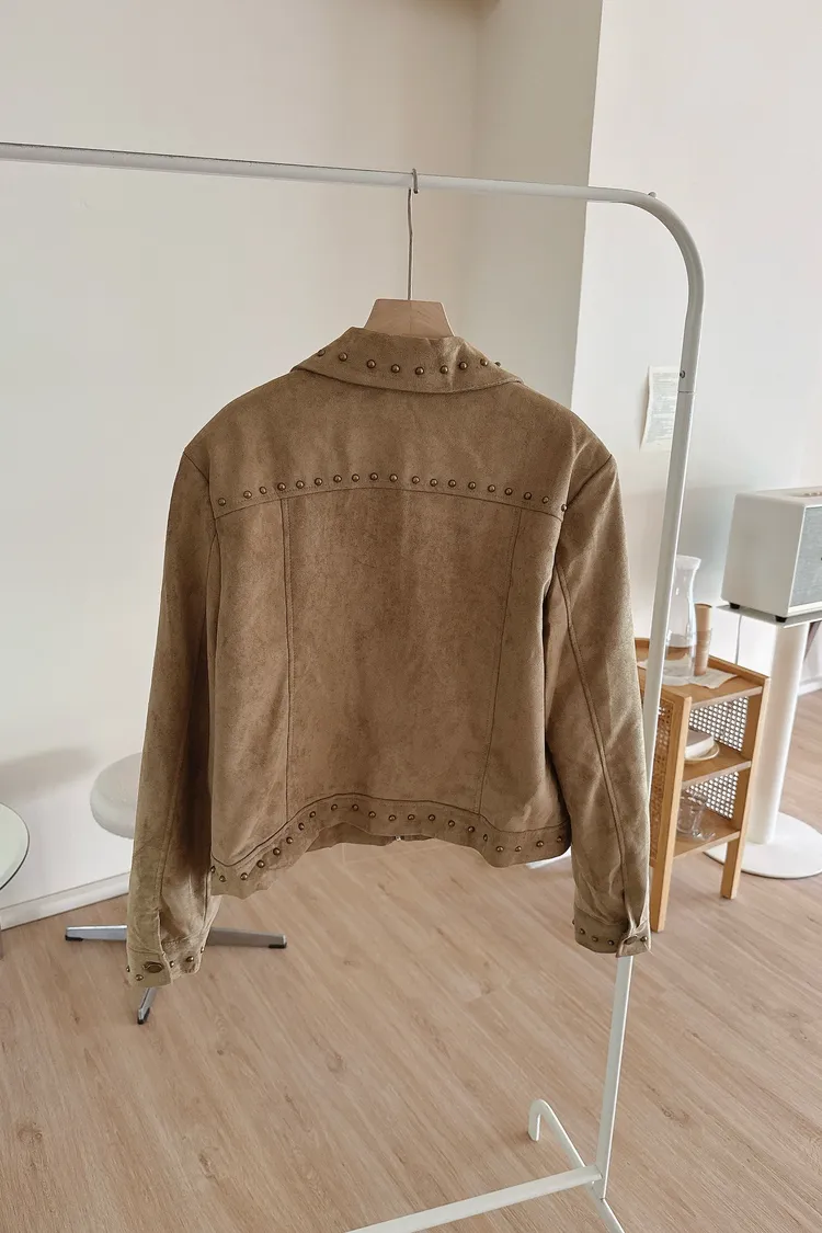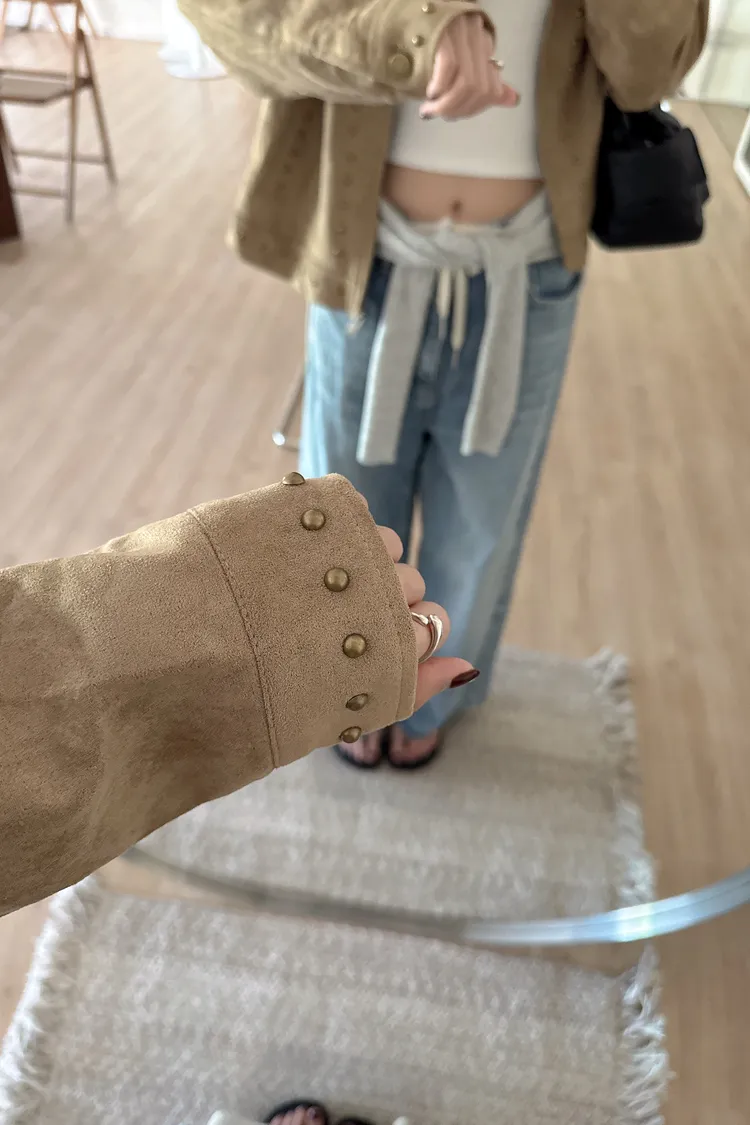 秋𝐧𝐞𝐰🍂金屬元素仿麂皮短外套,卡其