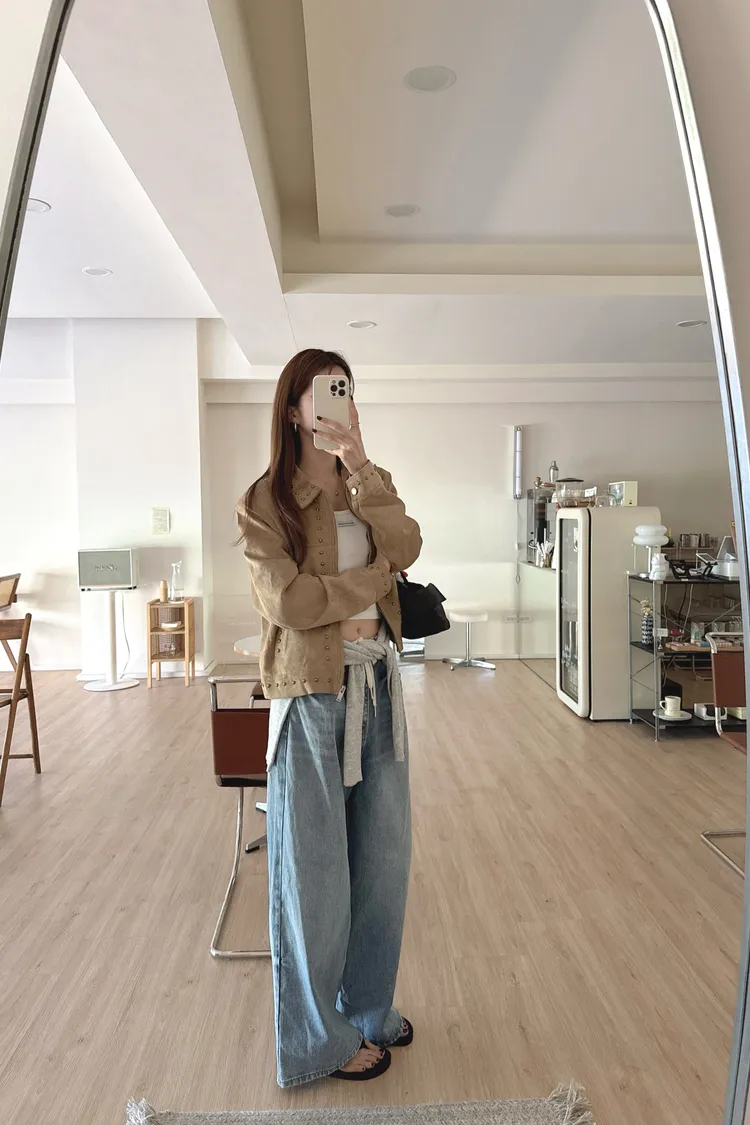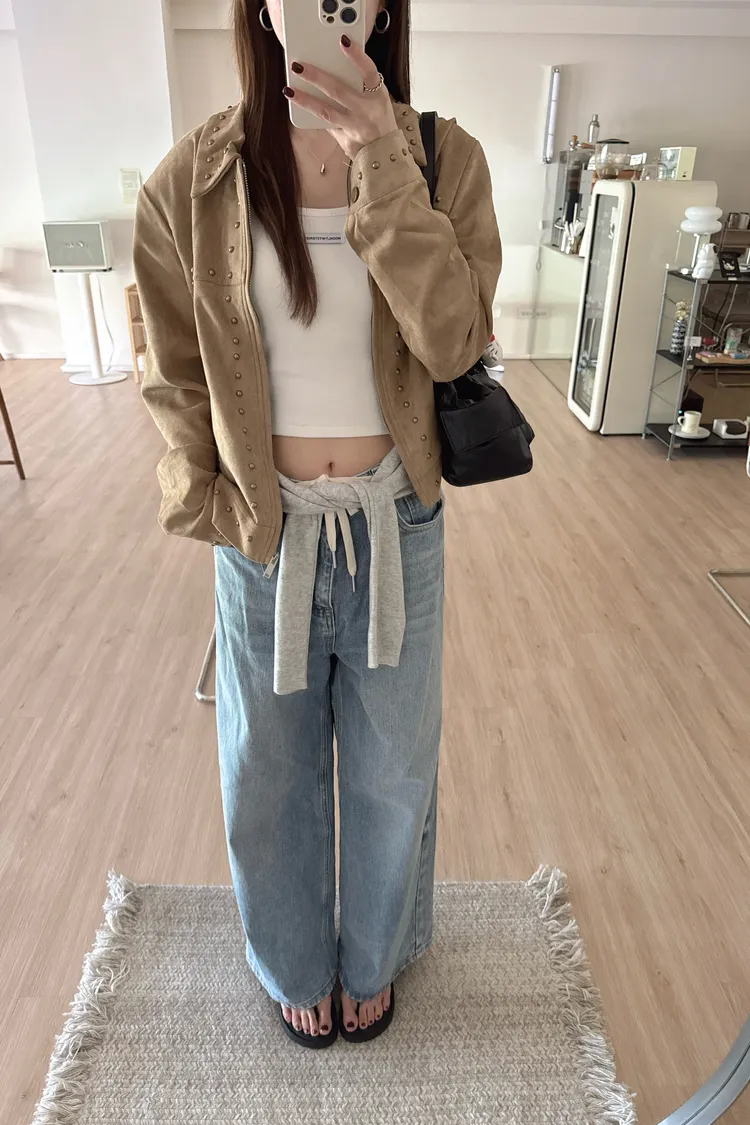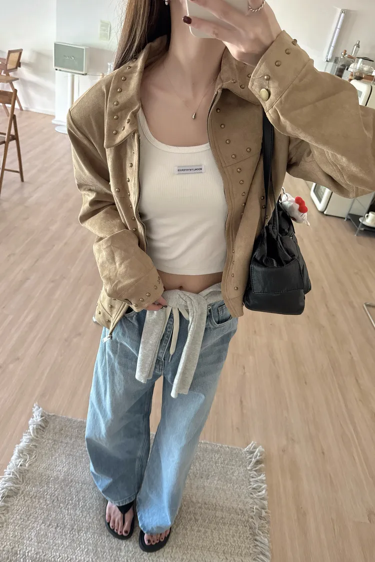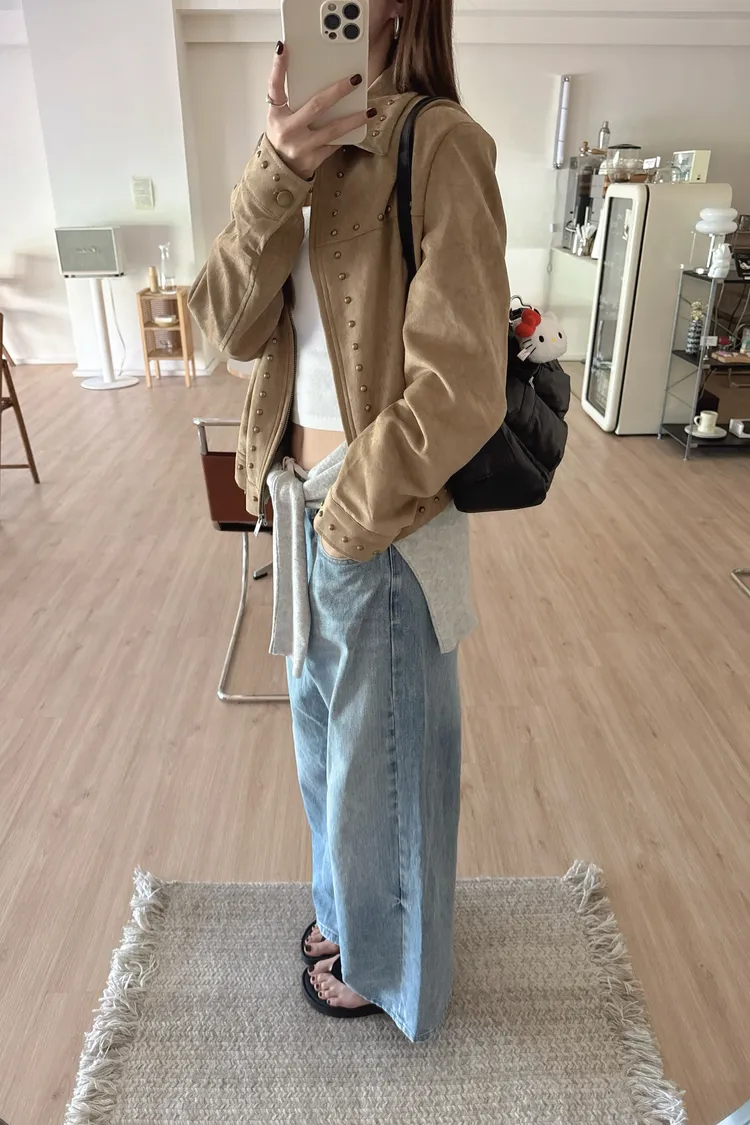 秋𝐧𝐞𝐰🍂金屬元素仿麂皮短外套,卡其