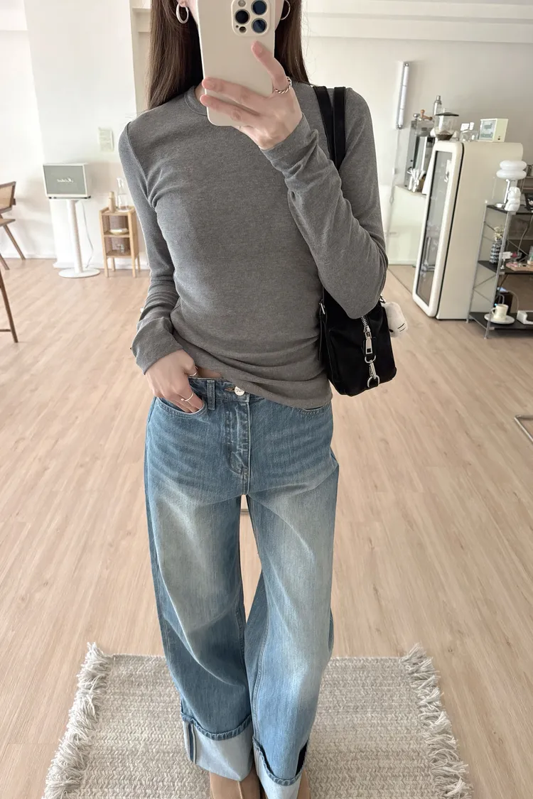 冬𝐧𝐞𝐰🍁基本款棉質素面上衣,白/灰/黑/燕麥(現貨)