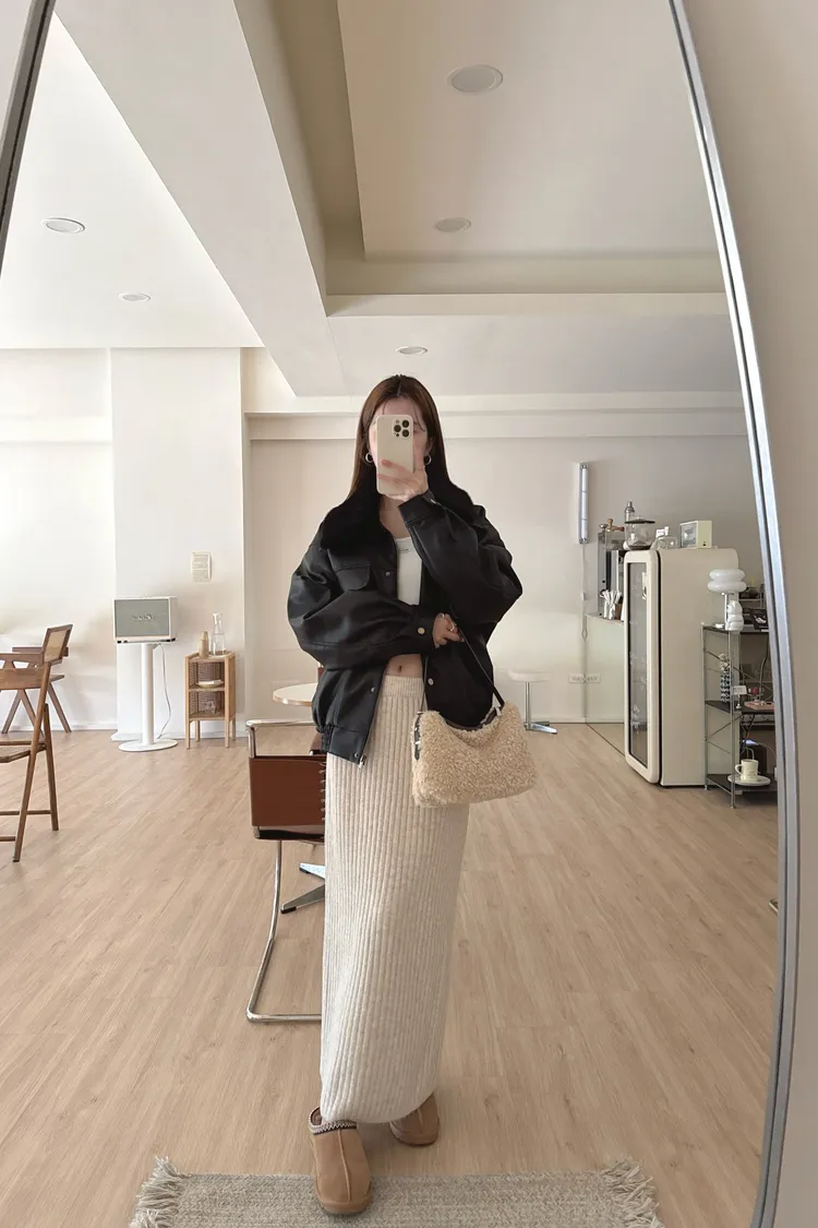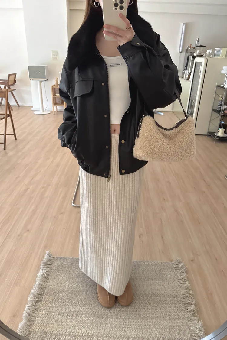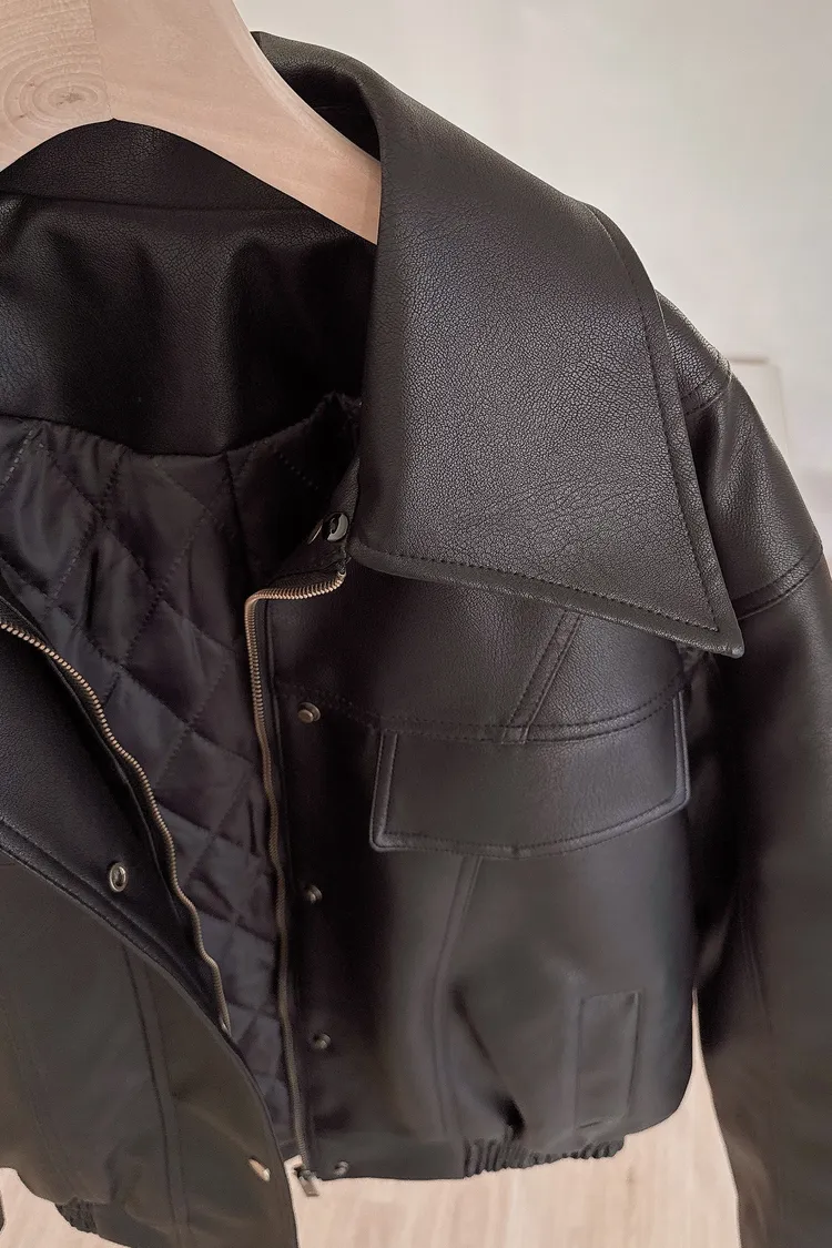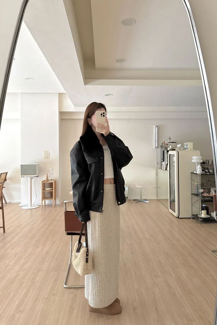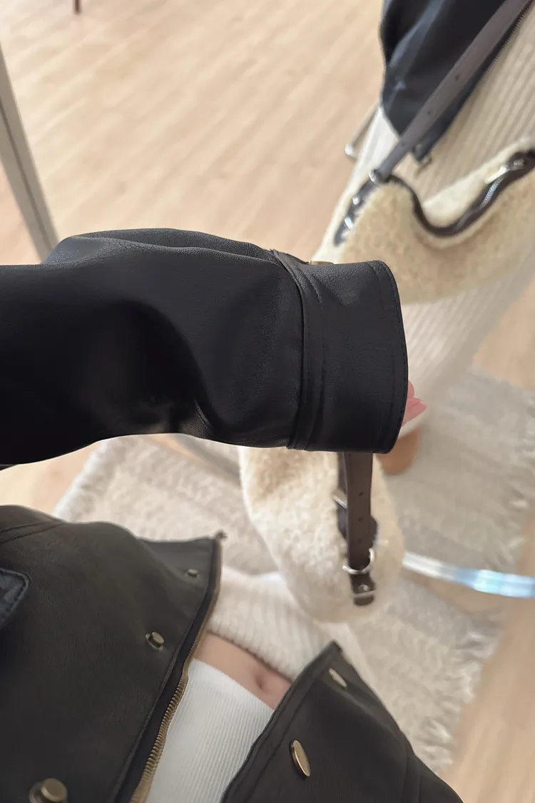 冬𝐧𝐞𝐰🍁毛領可拆皮革外套,黑