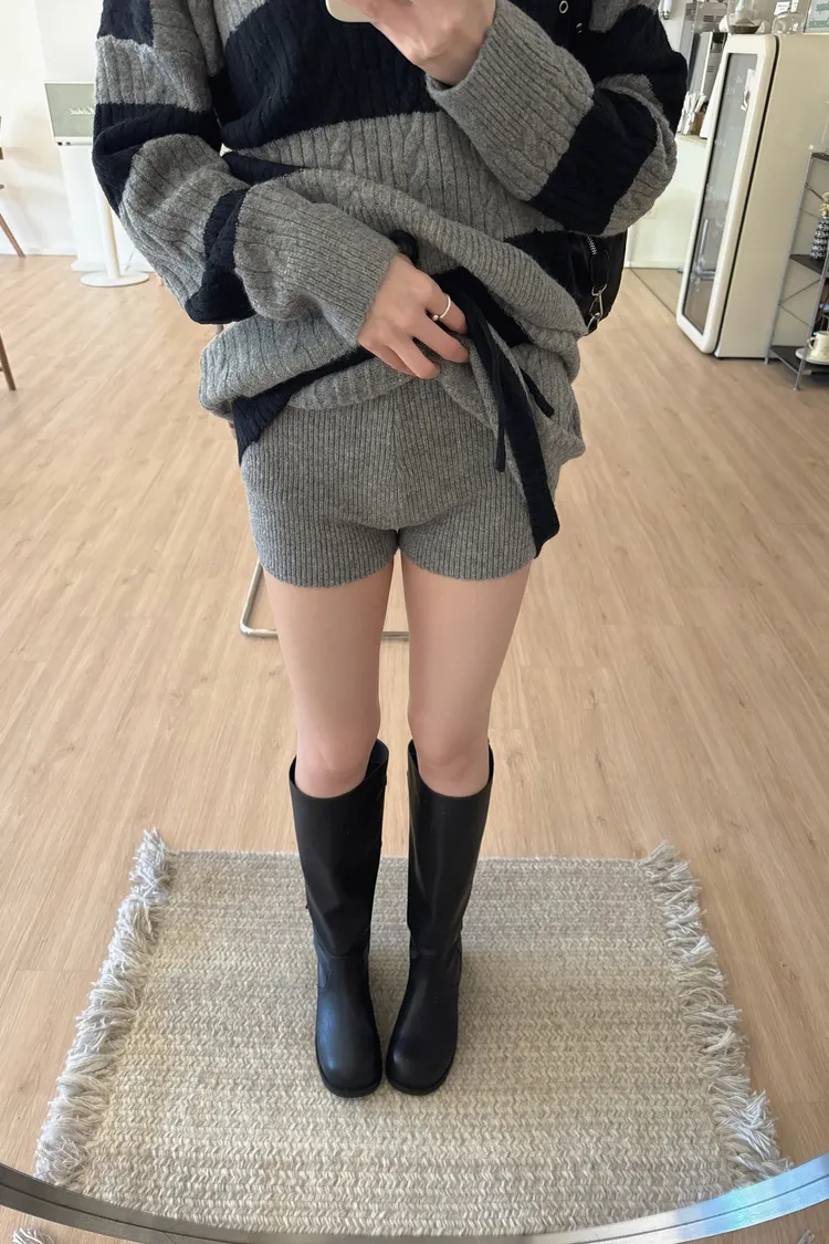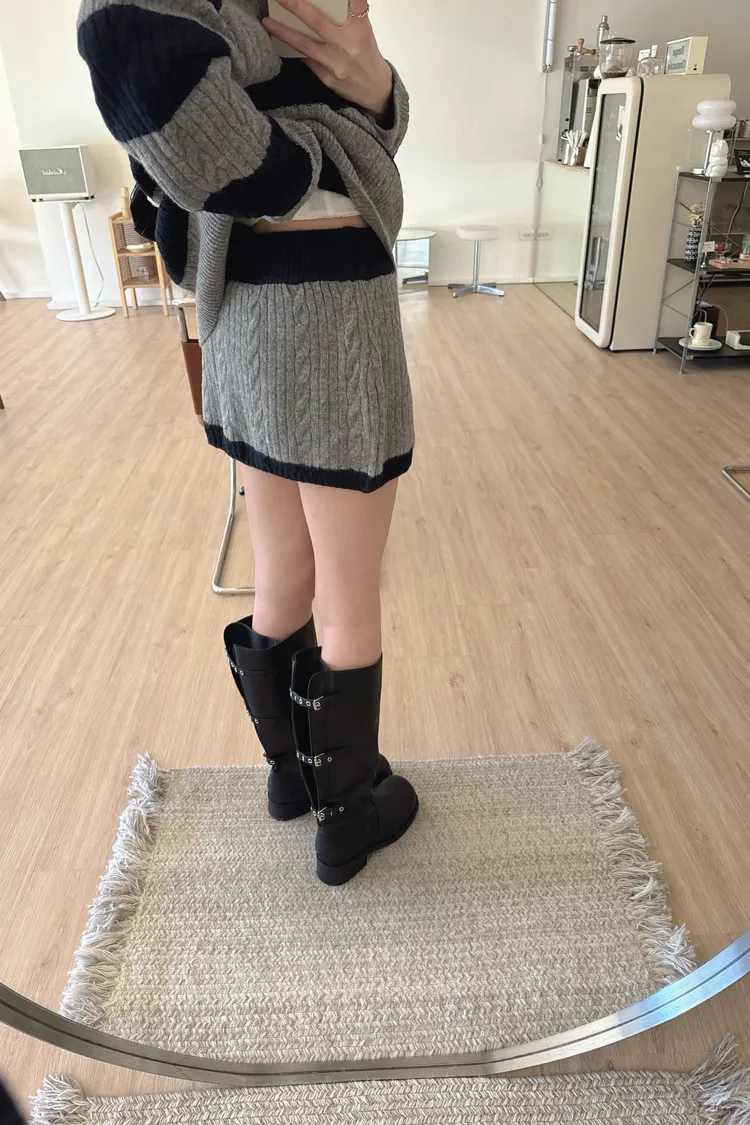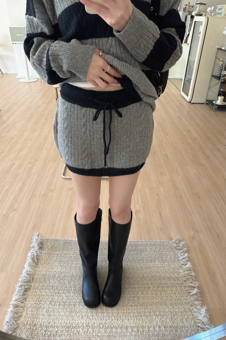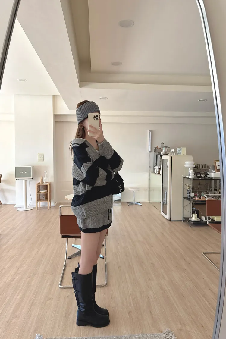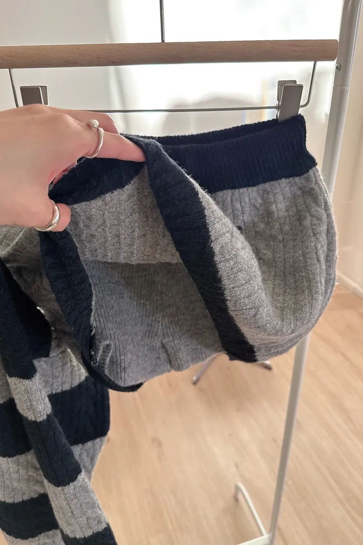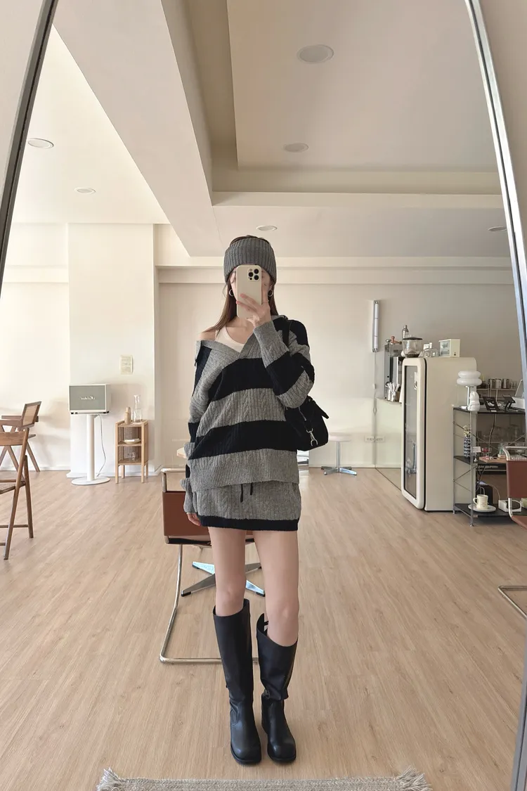 冬𝐧𝐞𝐰🍁套裝,v領條紋針織衣+針織褲裙,灰