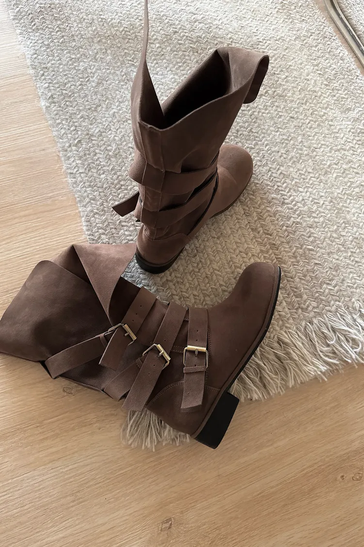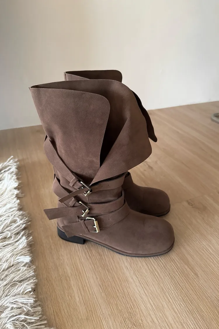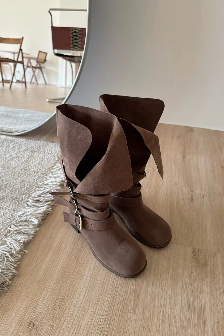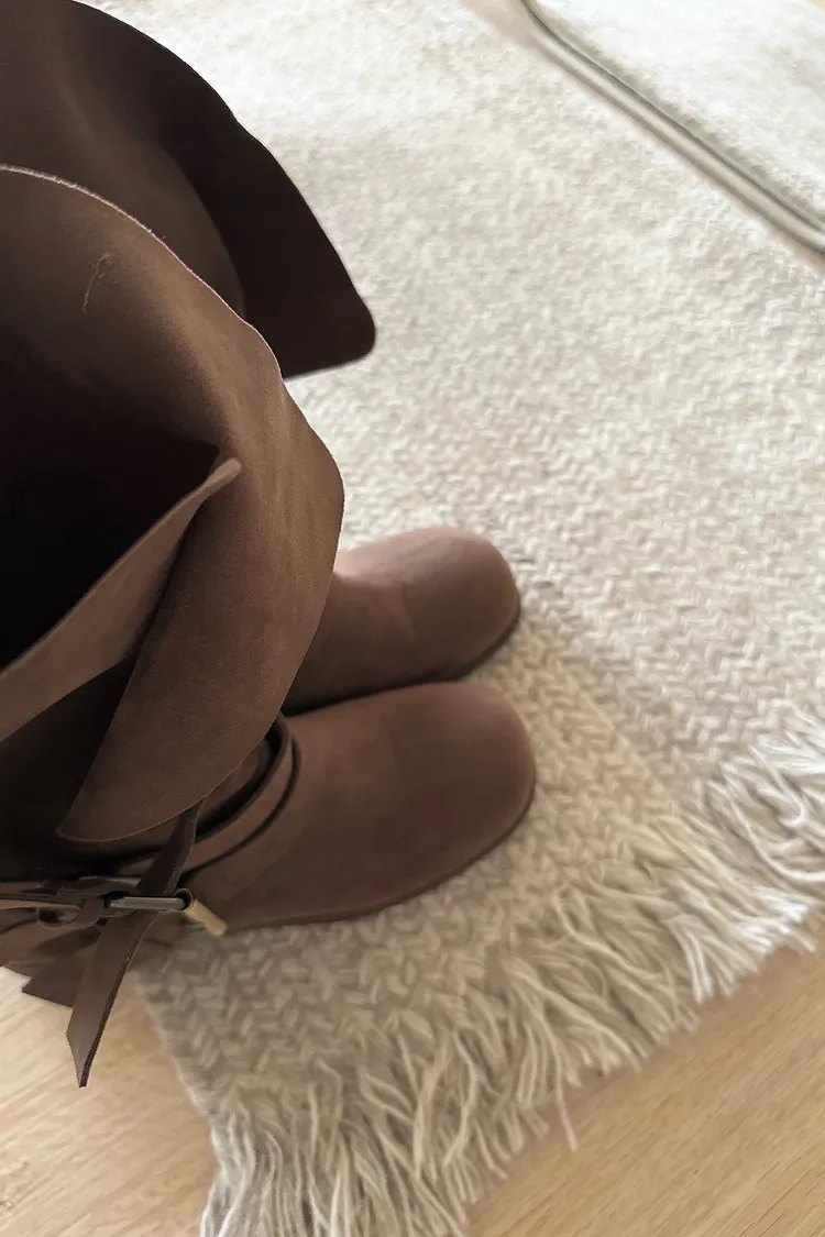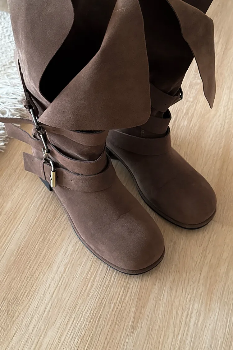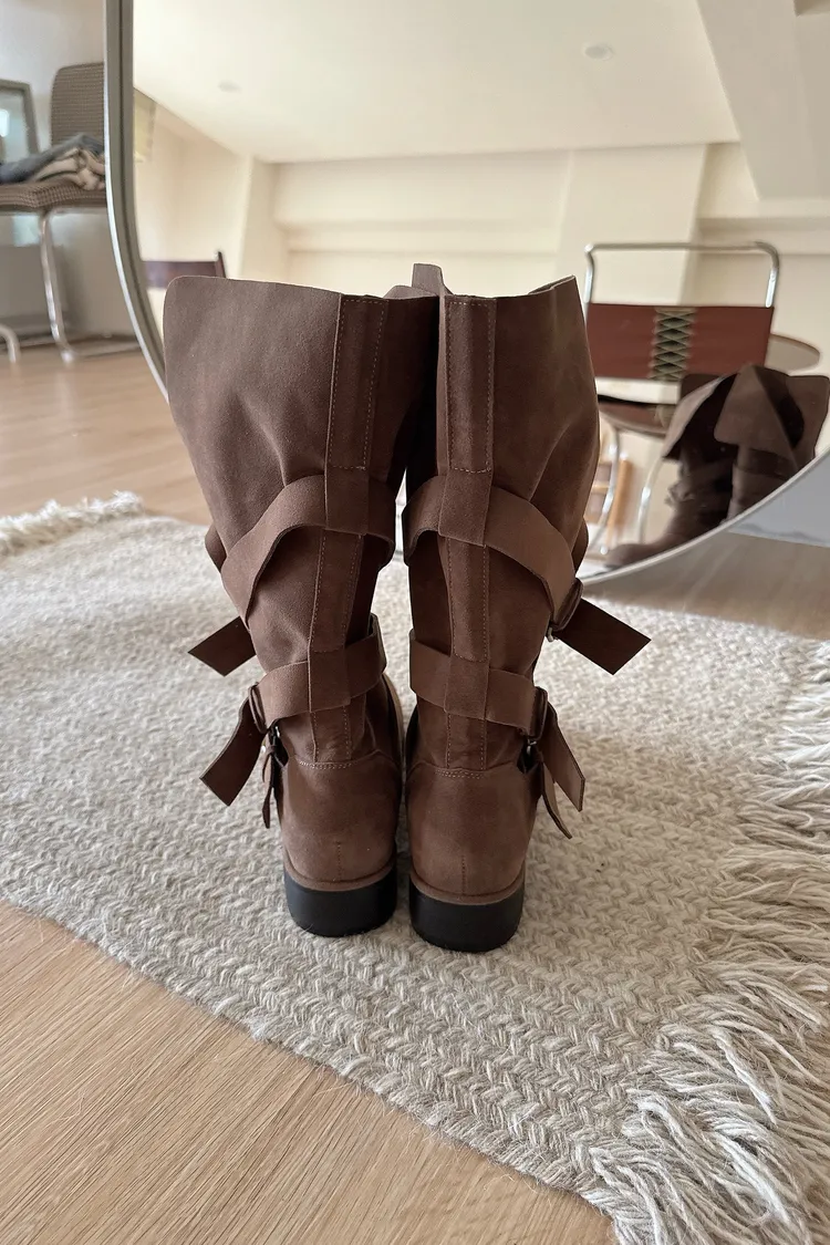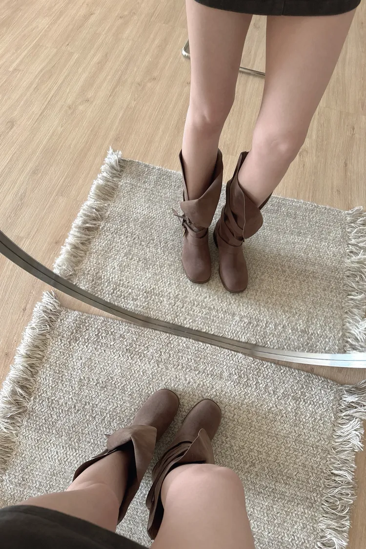 #下單前請查看購買須知、售後服務 可接受在下單❗️ ⚠️此款靴子會摺疊裝進紙盒出貨 ⚠️材質味道重 版型:正常,會穿厚襪建議可以大半號 材質:仿麂皮,摸起來有顆粒感不是平滑面的 📷闆娘:165/48 商品照片闆娘實穿實拍 每人身形胖瘦部位不同,建議參考商品平量尺寸