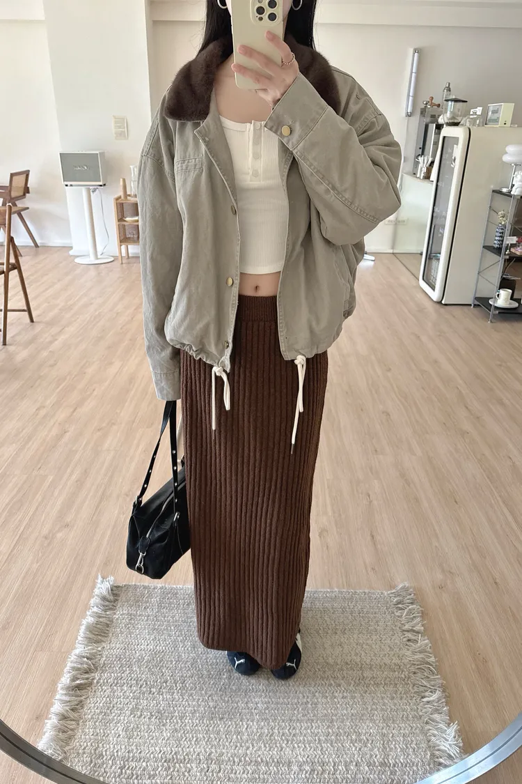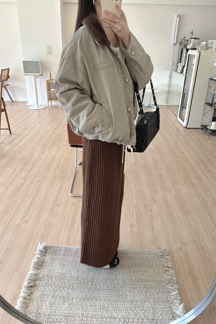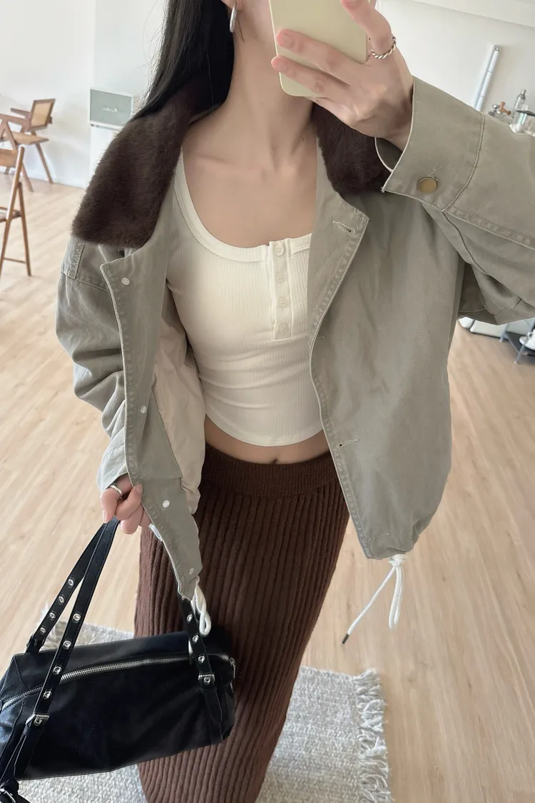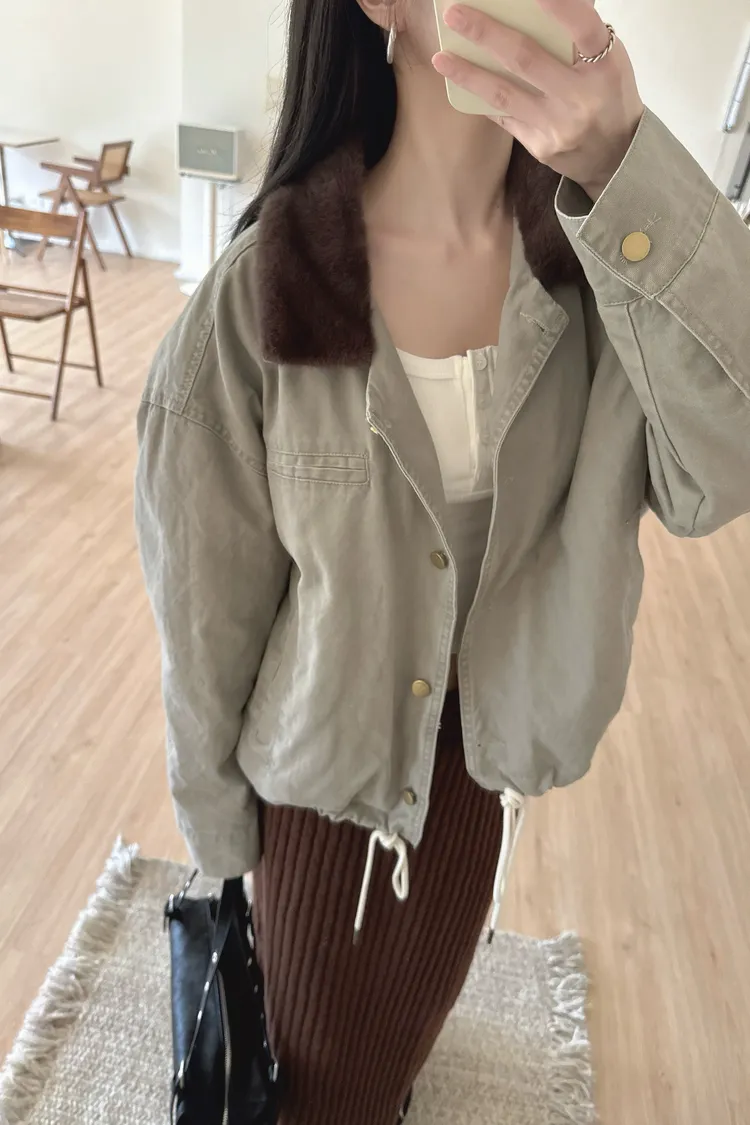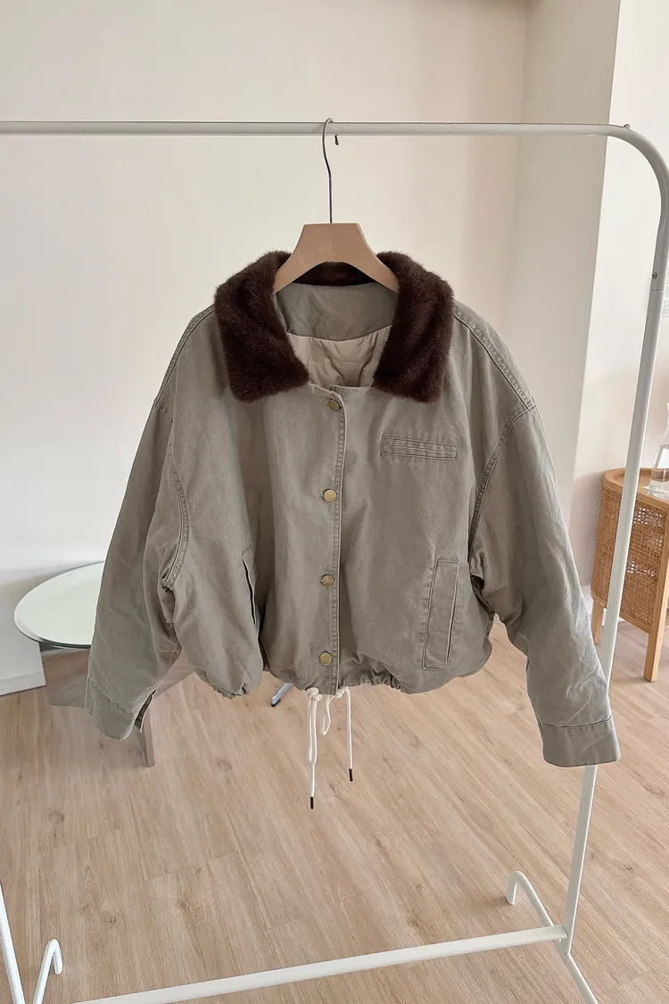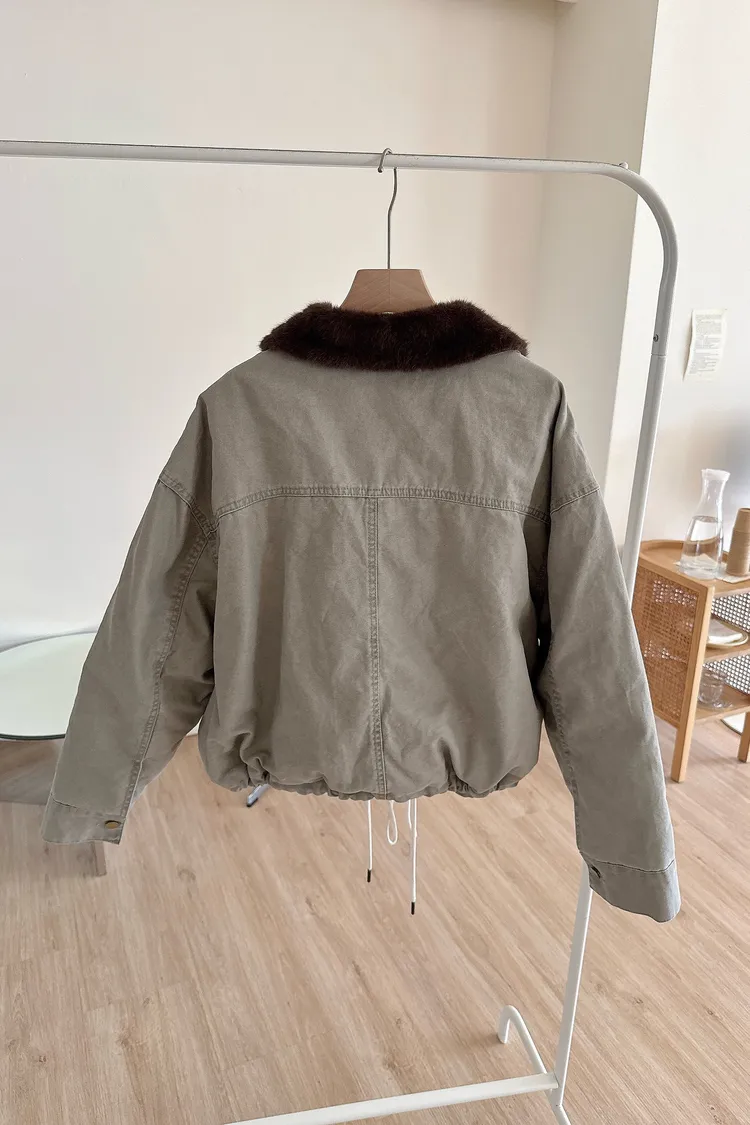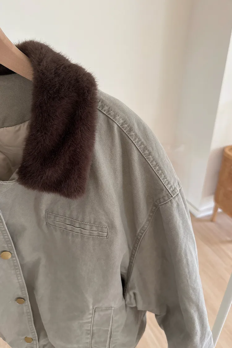 冬𝐧𝐞𝐰🍁仿水貂毛領工裝外套,灰