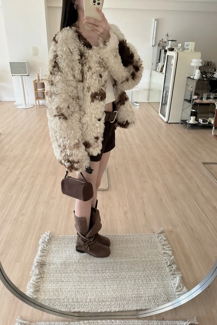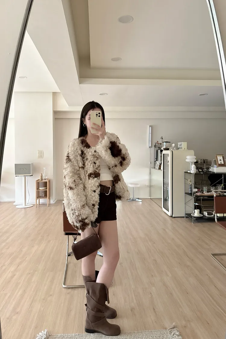 #下單前請查看購買須知、售後服務 可接受在下單❗️ ⚠️此款會掉毛 *布料每一件撞色部位不同屬於正常 厚度:厚 材質:毛料 📷闆娘:165/48 商品照片闆娘實穿實拍 每人身形胖瘦部位不同,建議參考商品平量尺寸