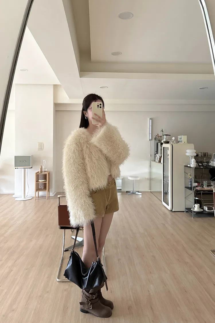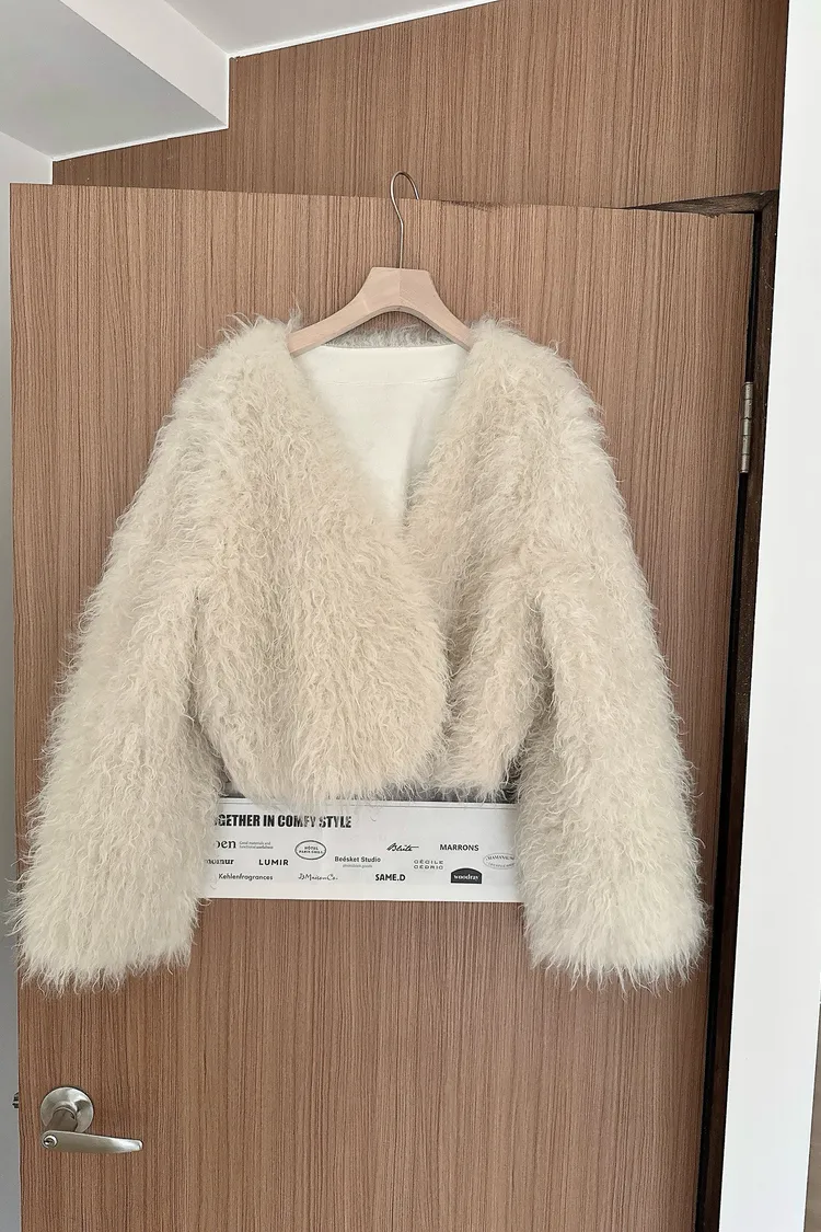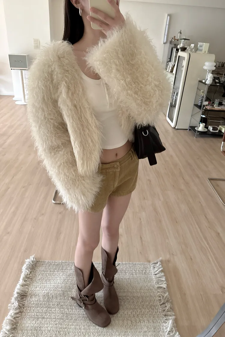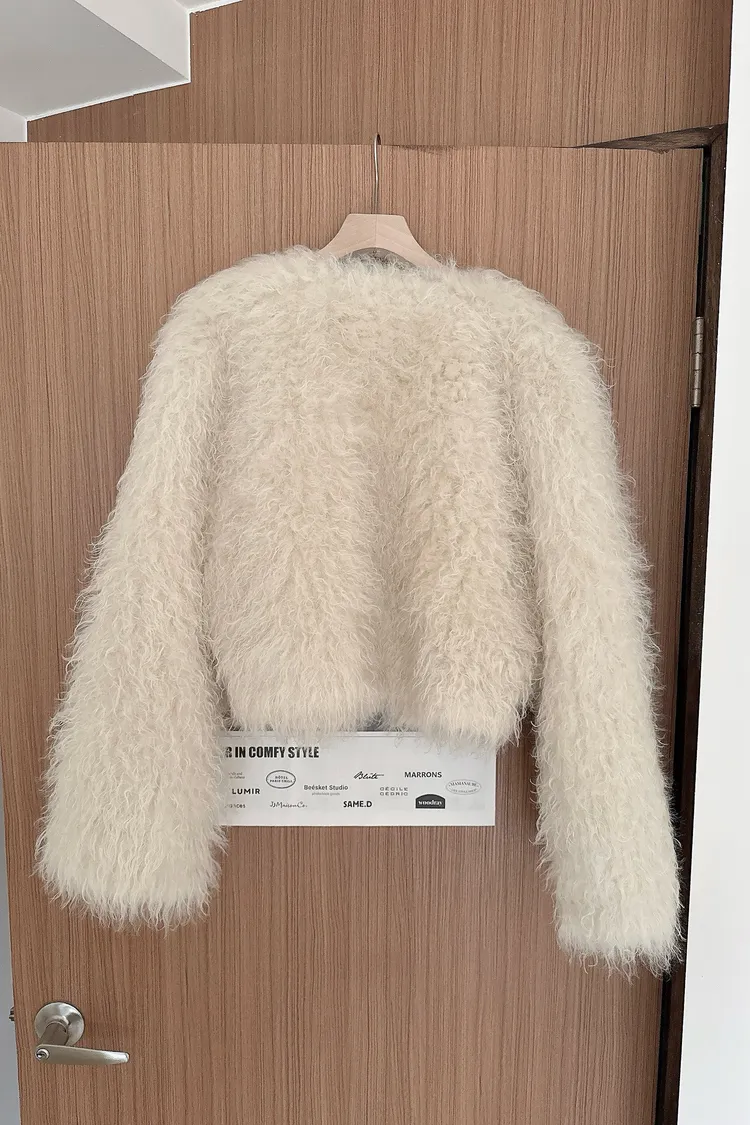 冬𝐧𝐞𝐰🍁鬚鬚毛毛外罩,米