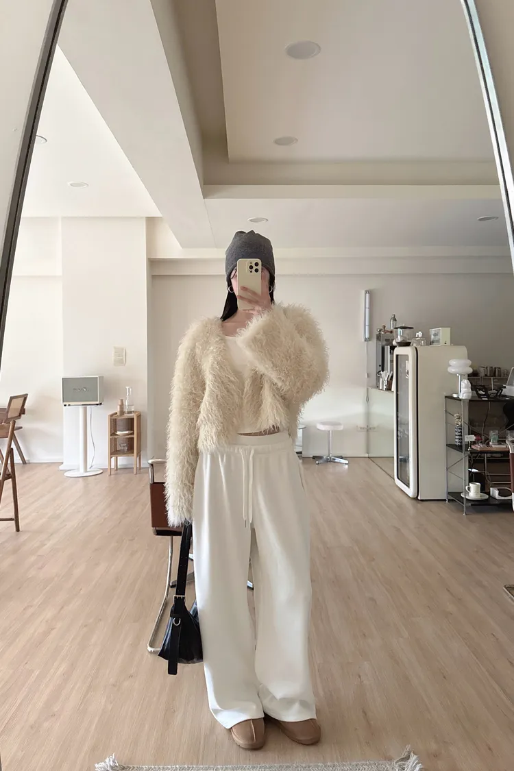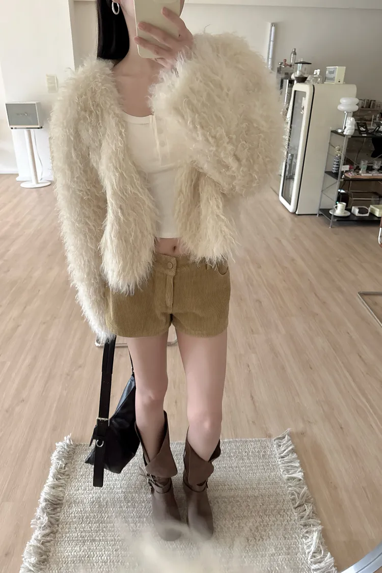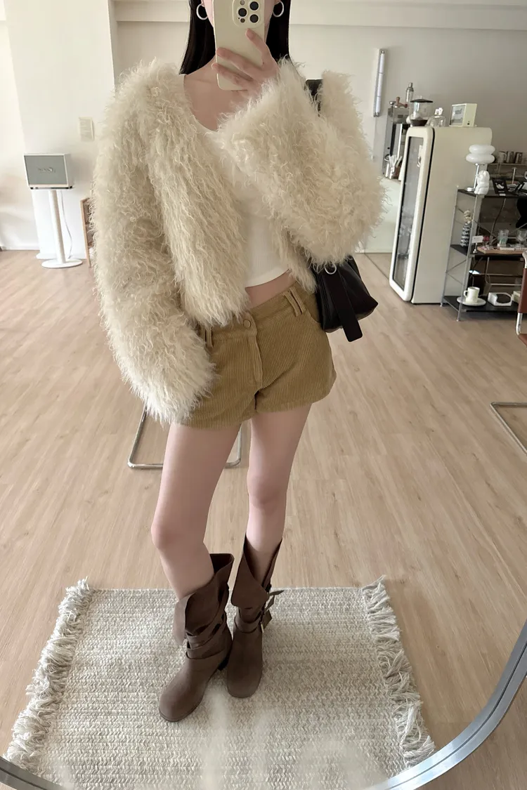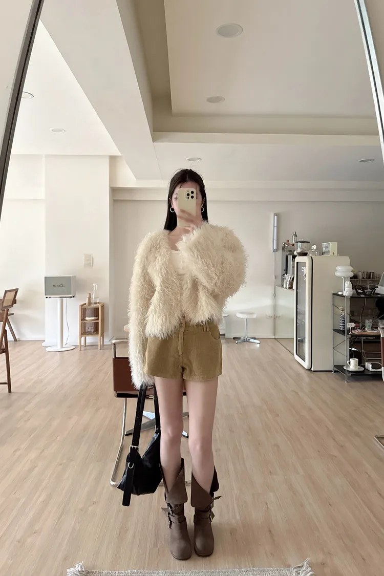 冬𝐧𝐞𝐰🍁鬚鬚毛毛外罩,米