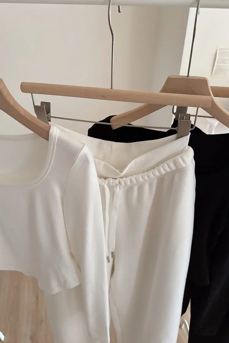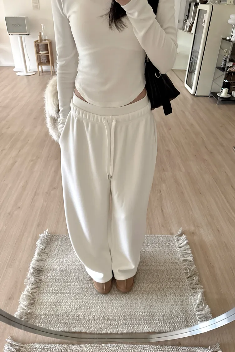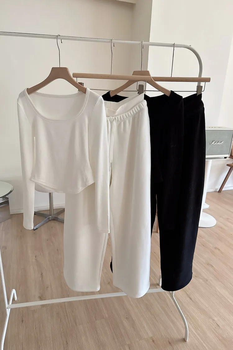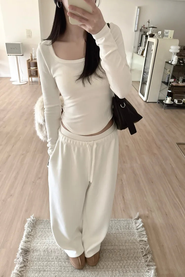 冬𝐧𝐞𝐰🍁闆娘包色🙌🏻磨毛圓弧下擺tee、加厚磨毛棉褲,白/黑(分開販售,選項有上衣褲子)