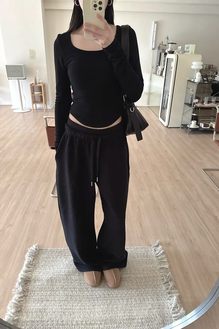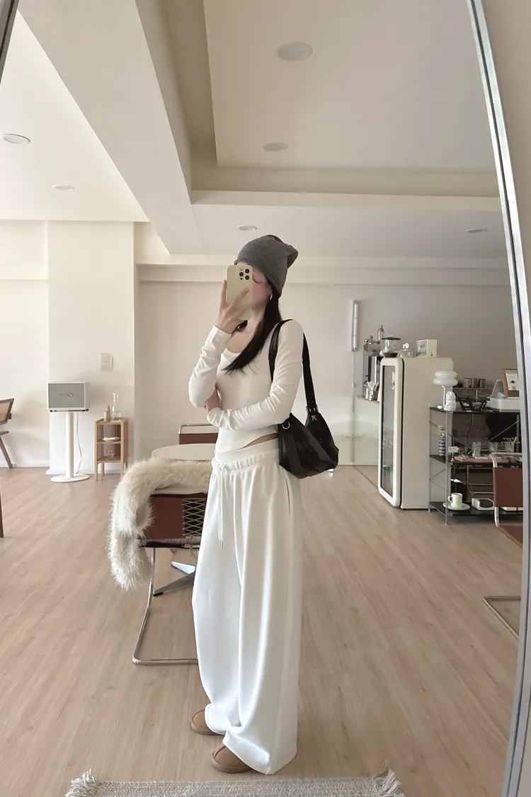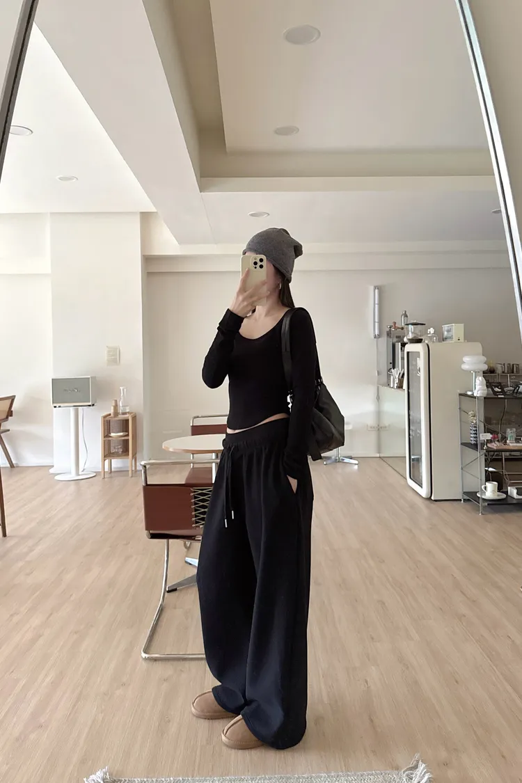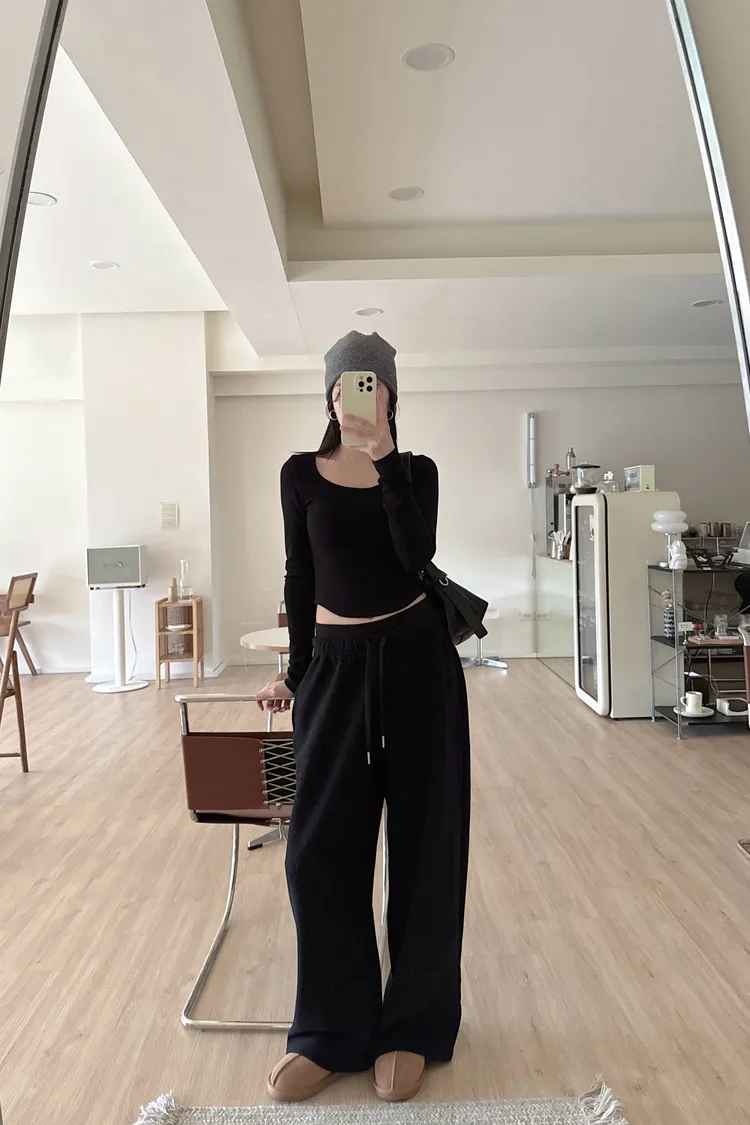 冬𝐧𝐞𝐰🍁闆娘包色🙌🏻磨毛圓弧下擺tee、加厚磨毛棉褲,白/黑(分開販售,選項有上衣褲子)