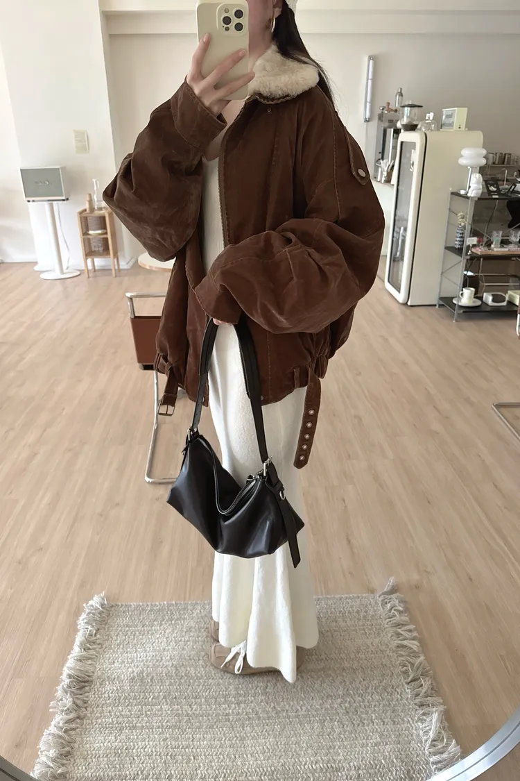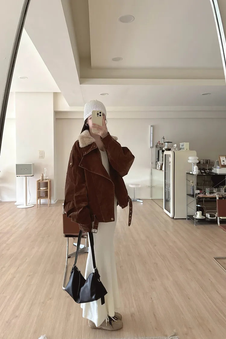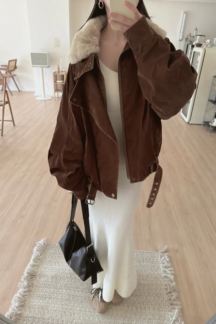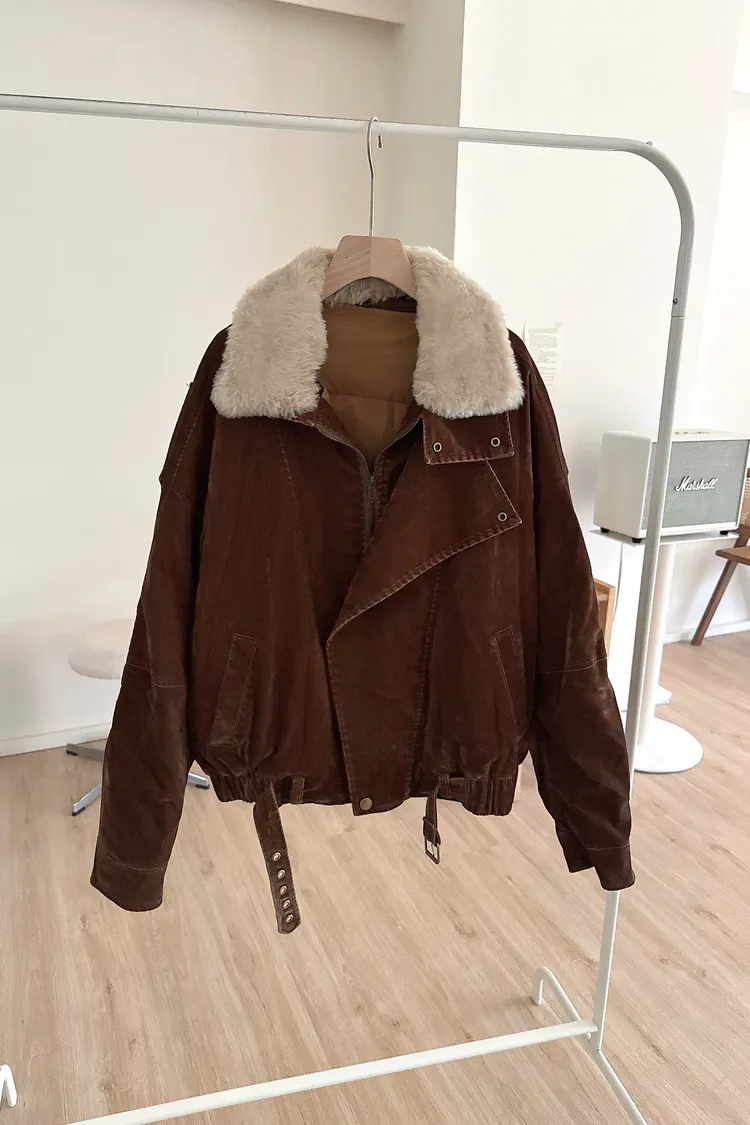 #下單前請查看購買須知、售後服務 可接受在下單❗️ ⚠️此款毛領會掉毛 *毛領可拆,羽絨棉內裡 厚度:厚 材質:仿麂皮+羽絨棉 📷闆娘:165/48 商品照片闆娘實穿實拍 每人身形胖瘦部位不同,建議參考商品平量尺寸