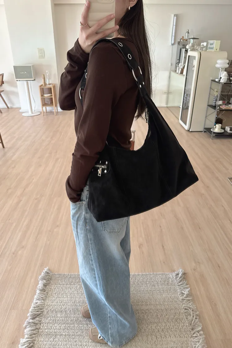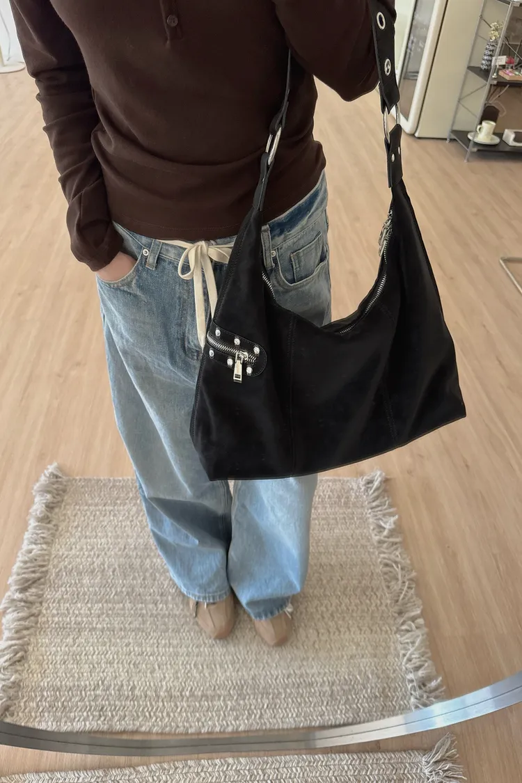 冬𝐧𝐞𝐰🍁仿麂皮金屬元素機車包,霧黑