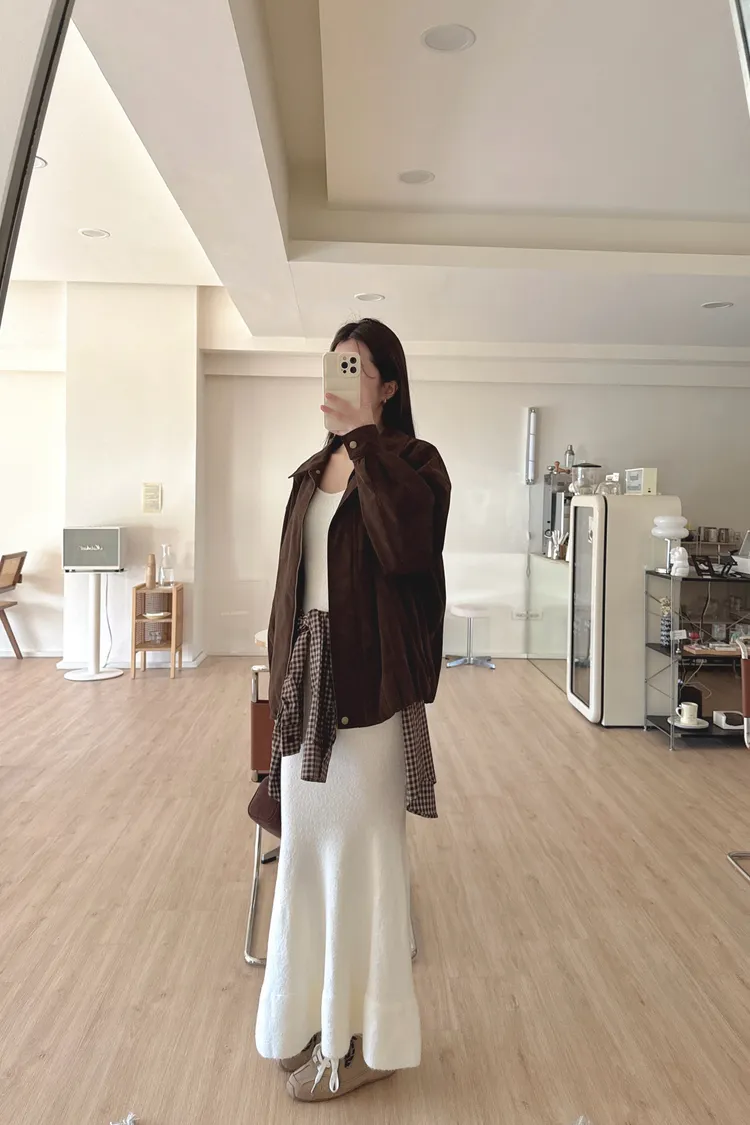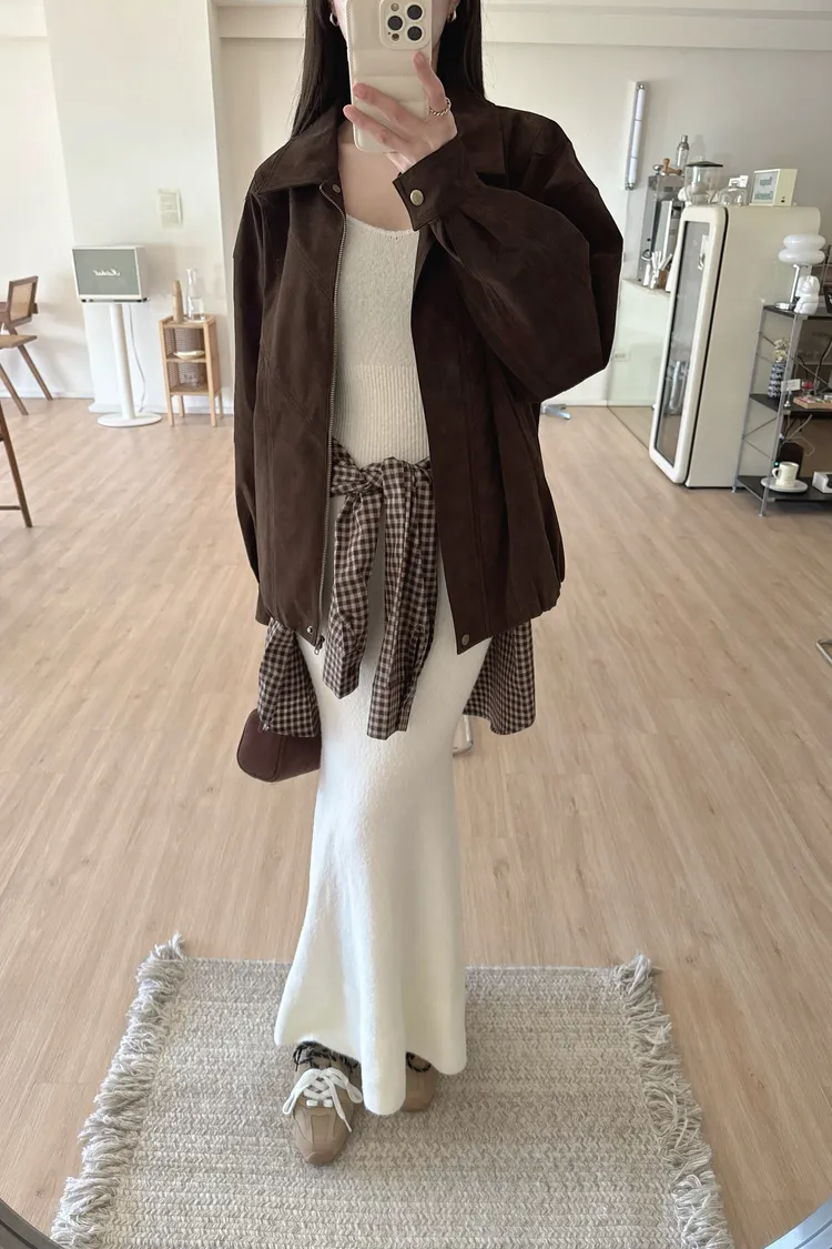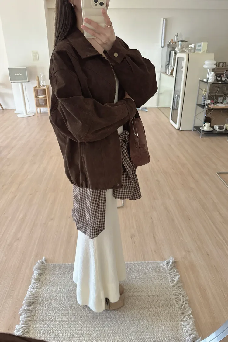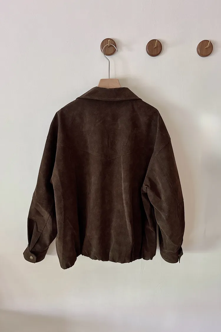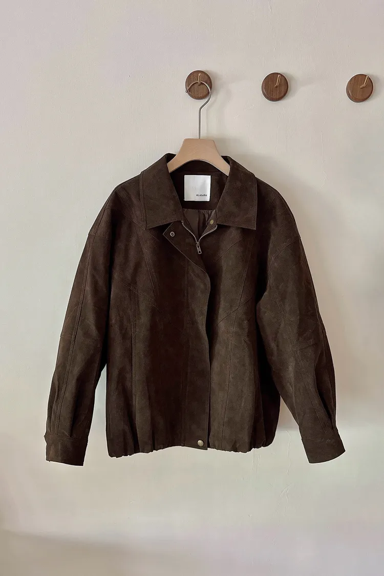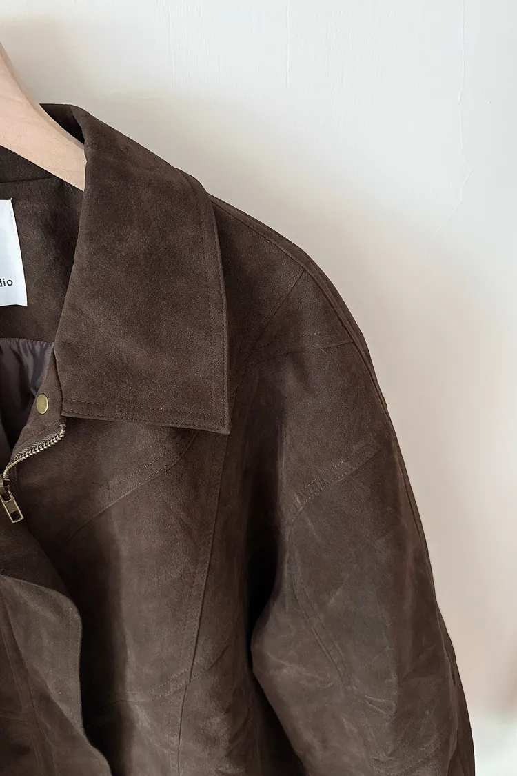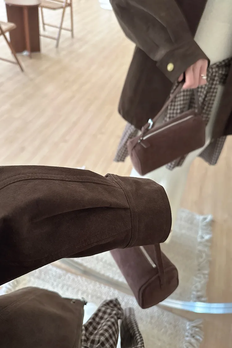 秋𝐧𝐞𝐰🍁深咖色收下擺仿麂皮外套