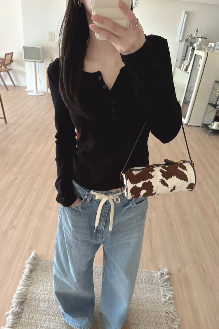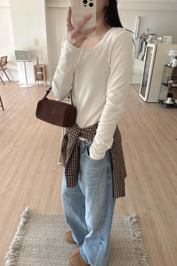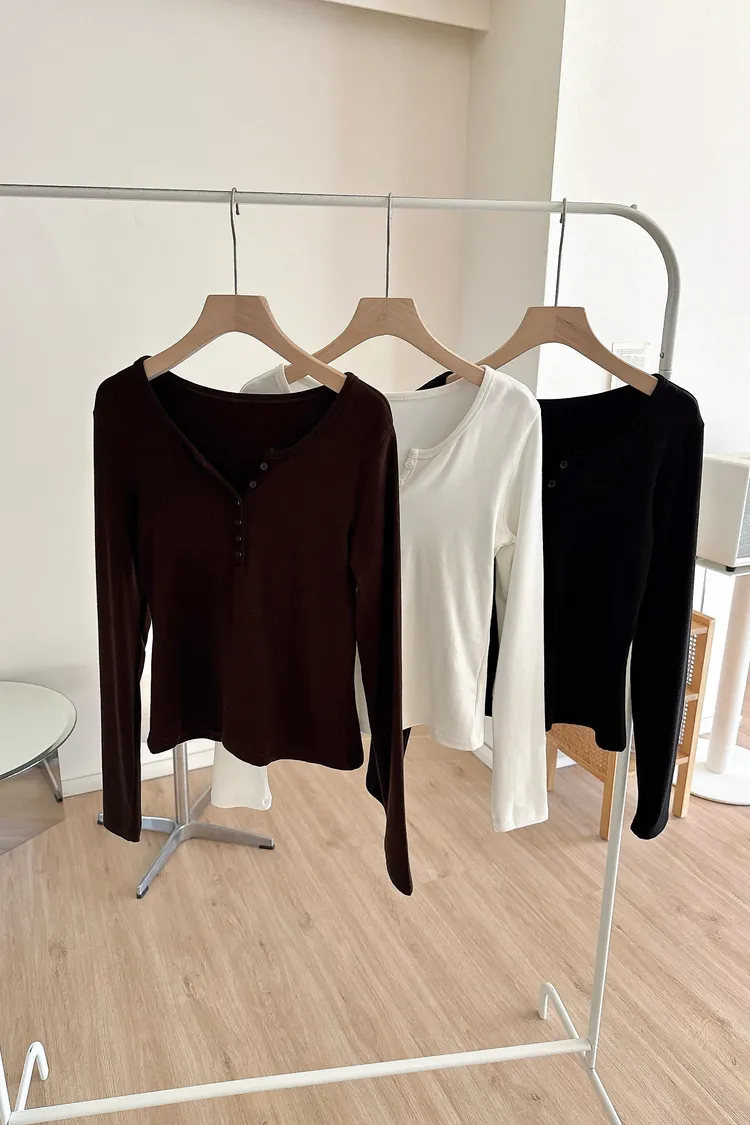 冬𝐧𝐞𝐰🍁內磨毛亨利領上衣,白/黑/咖