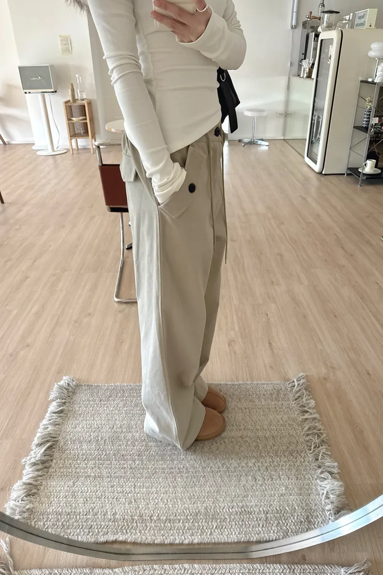 冬𝐧𝐞𝐰🍁內磨毛長腿工裝褲,灰綠