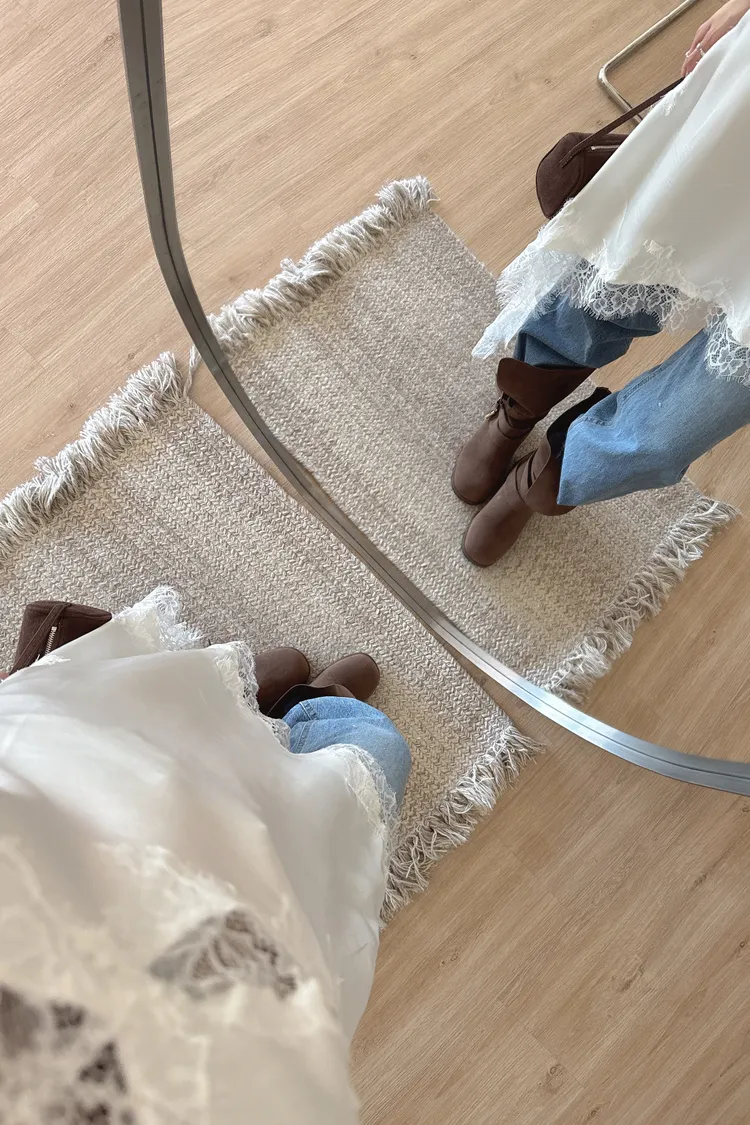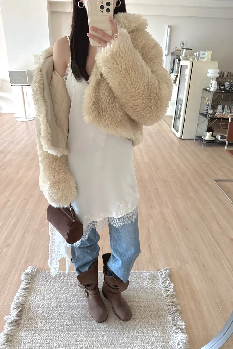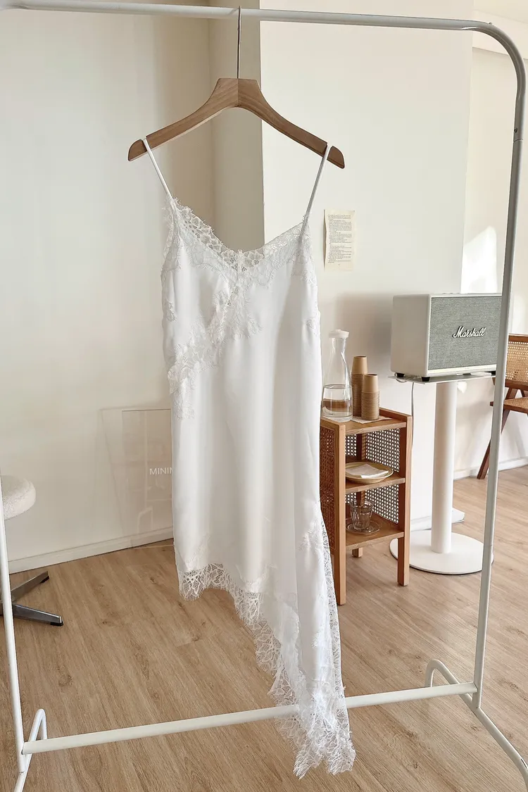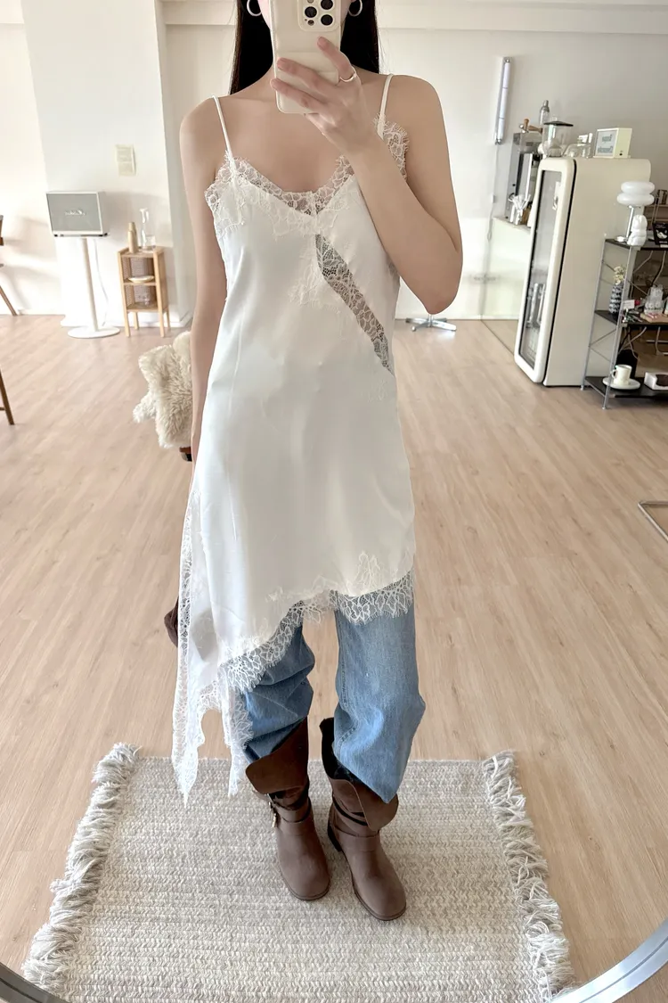 秋𝐧𝐞𝐰🍁細肩蕾絲斜邊短洋,白