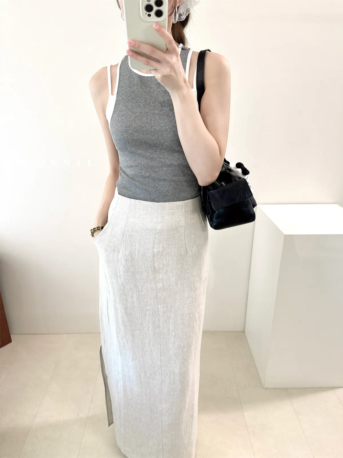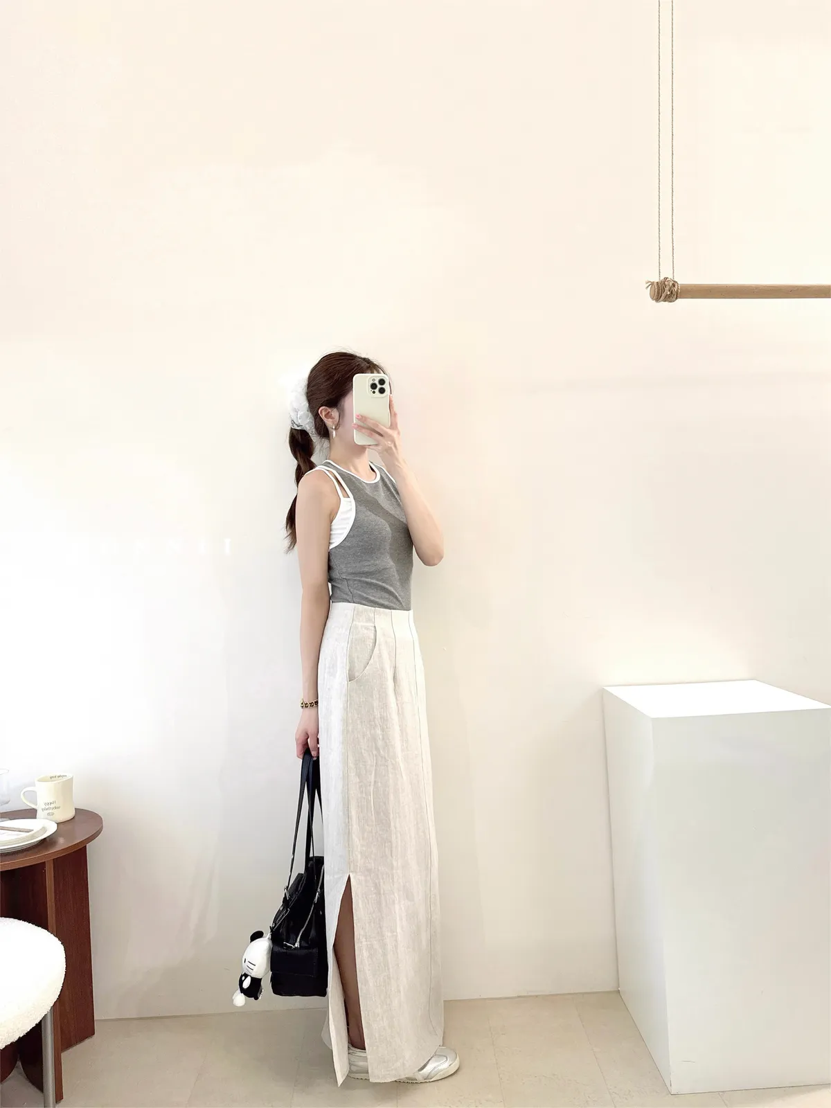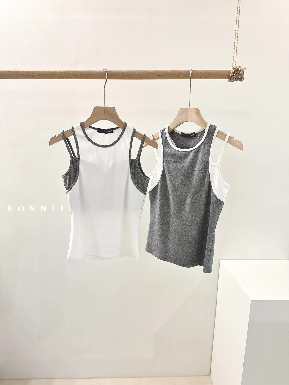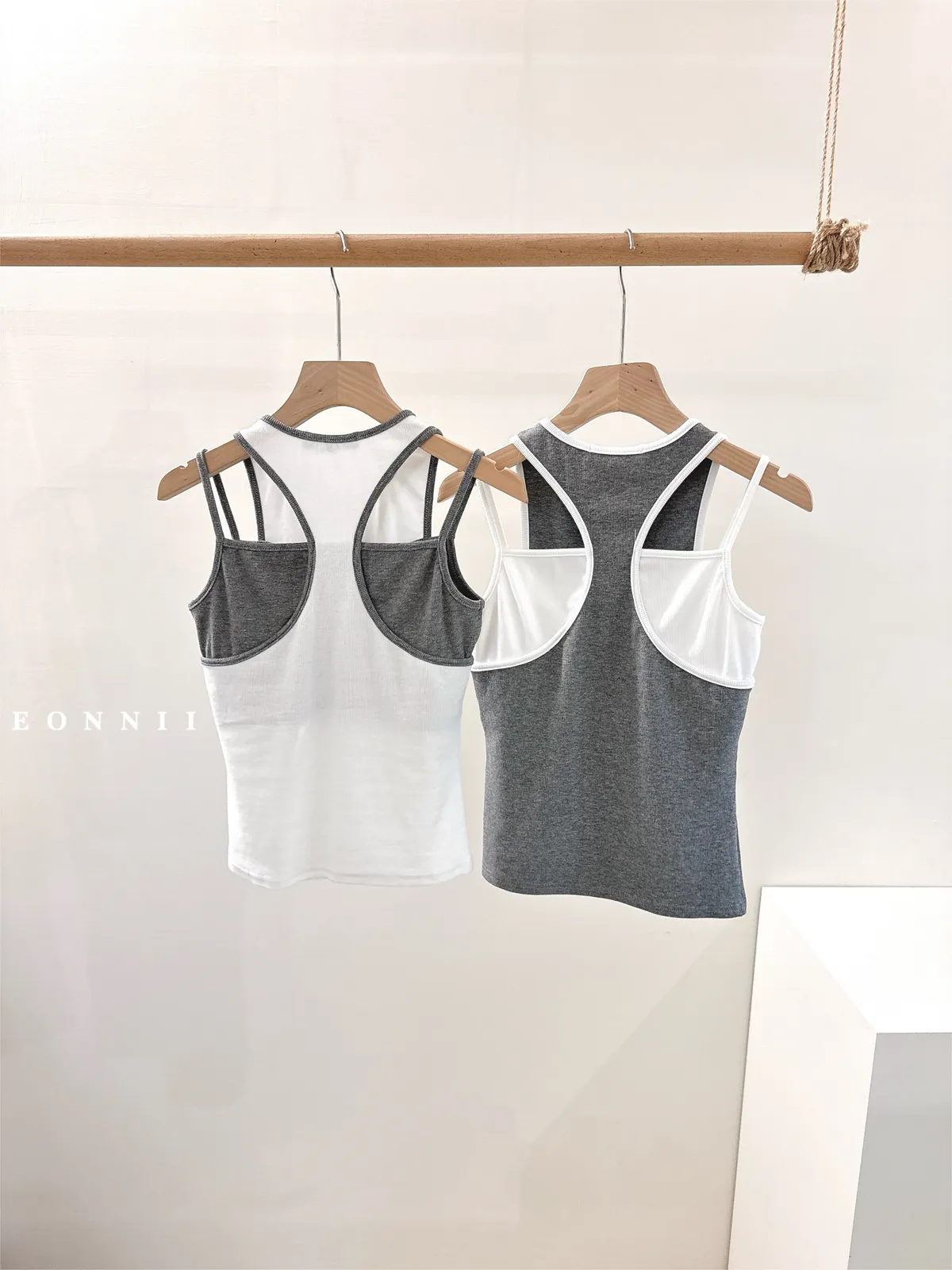 春夏𝐧𝐞𝐰🤍疊穿感棉質背心,白/灰