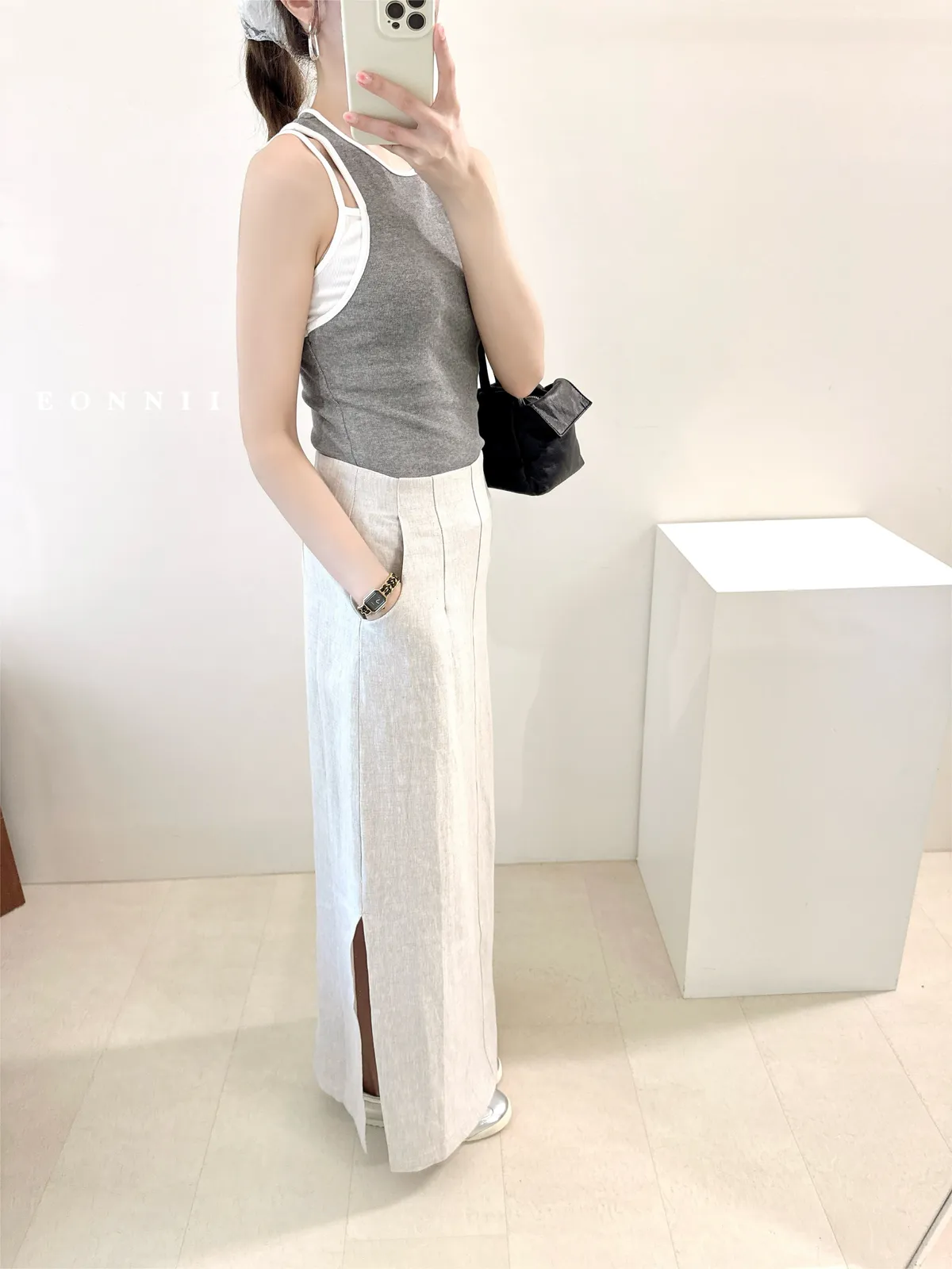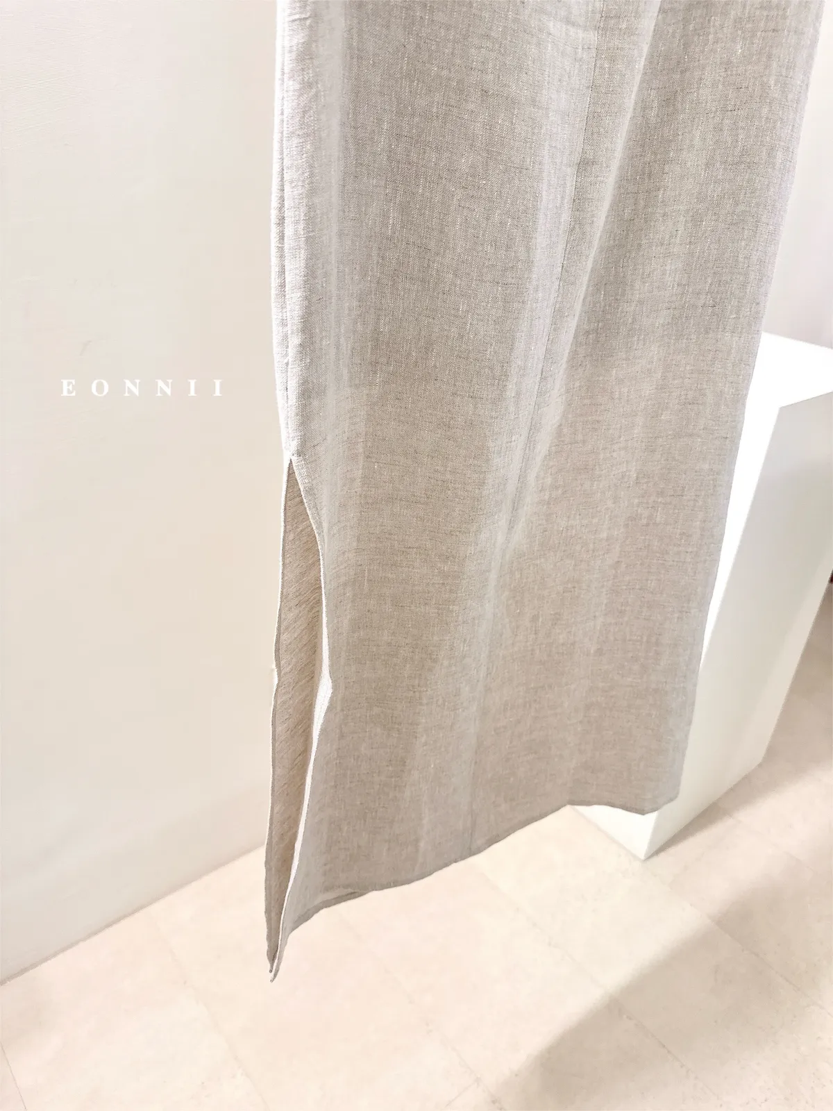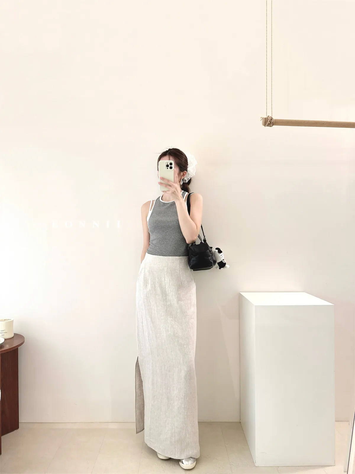 春夏𝐧𝐞𝐰🤍側開岔麻料長裙,米s/m(現貨)