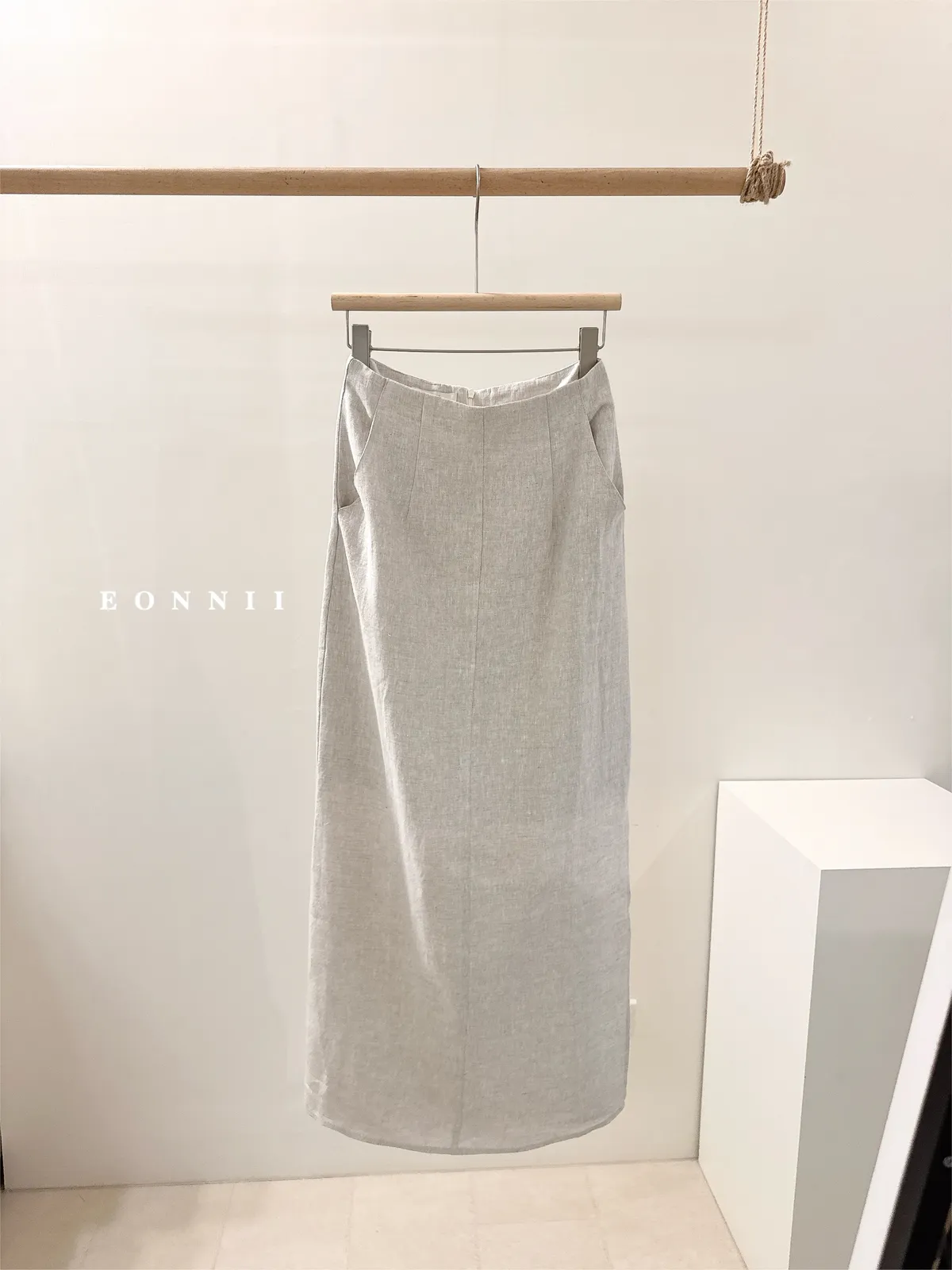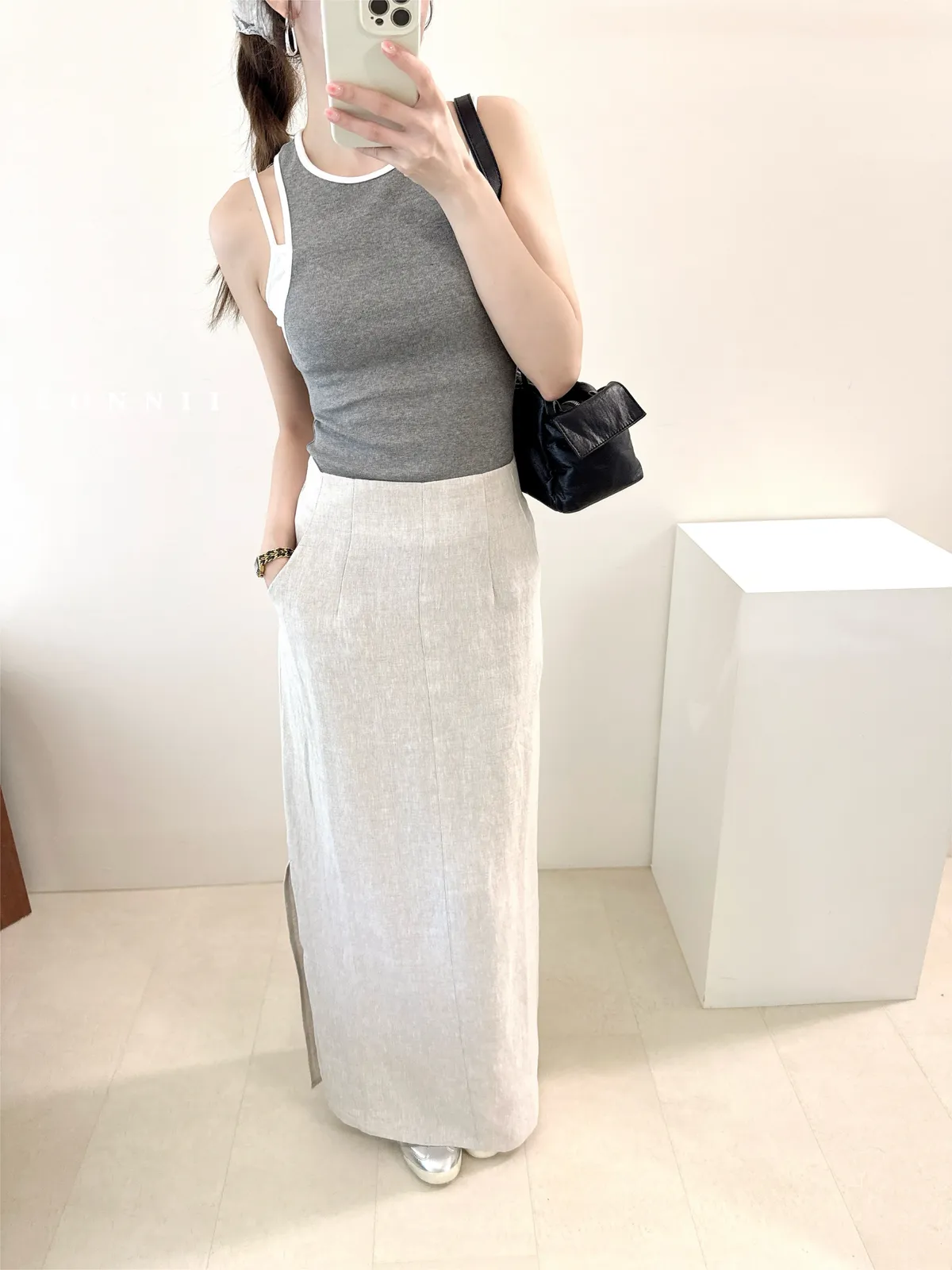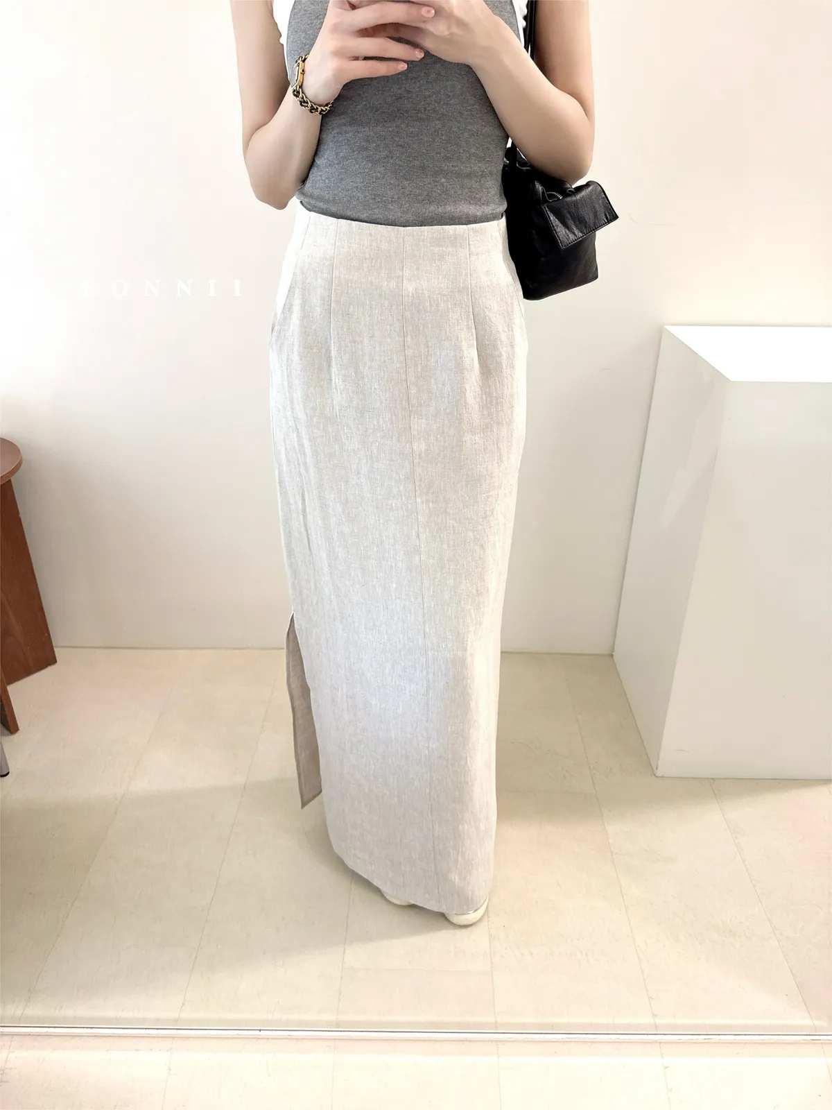 春夏𝐧𝐞𝐰🤍側開岔麻料長裙,米s/m(現貨)