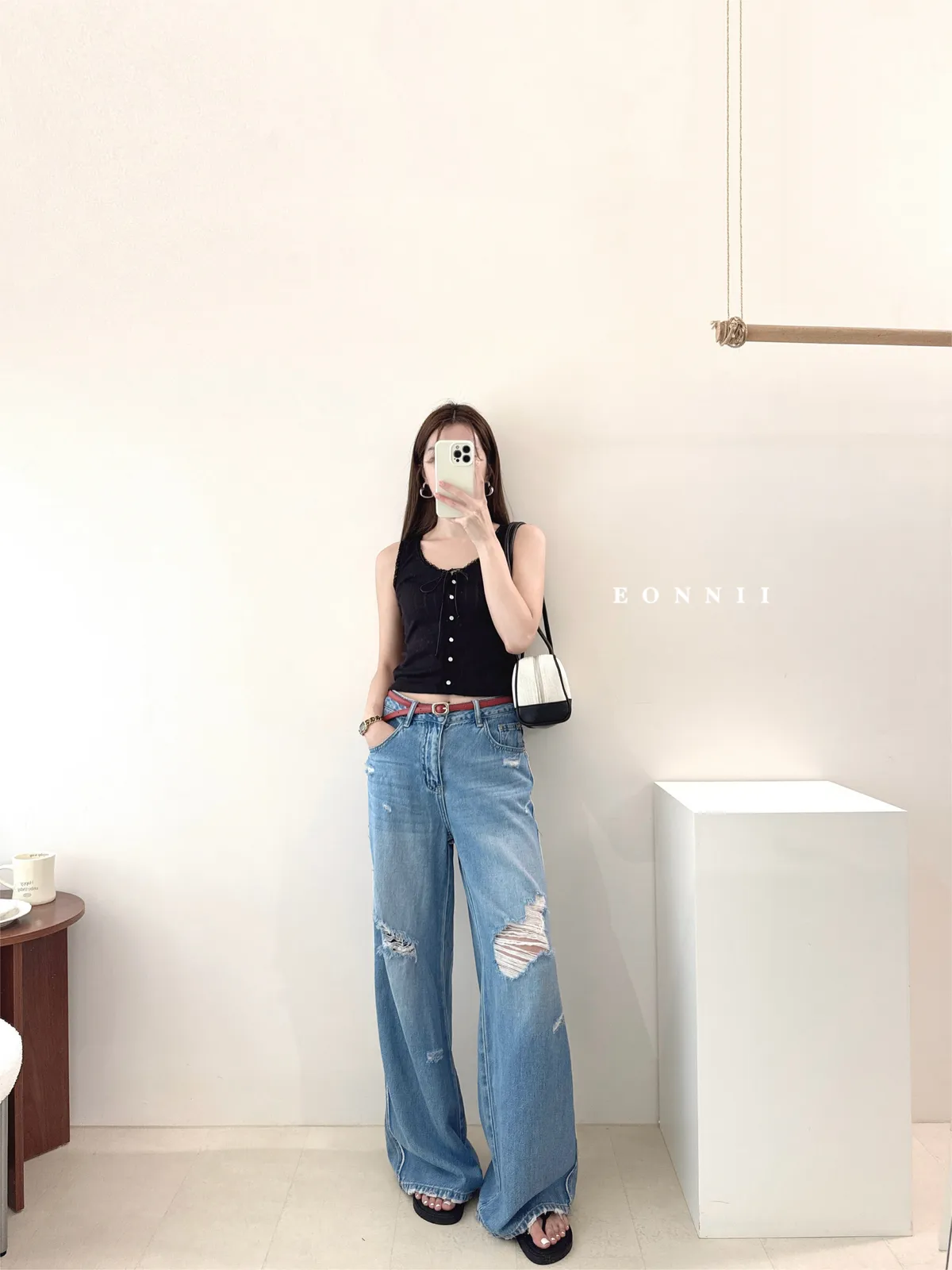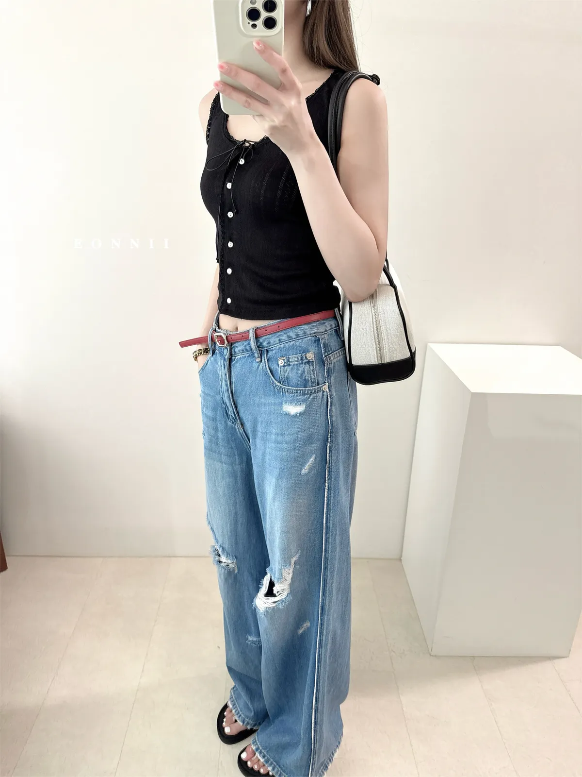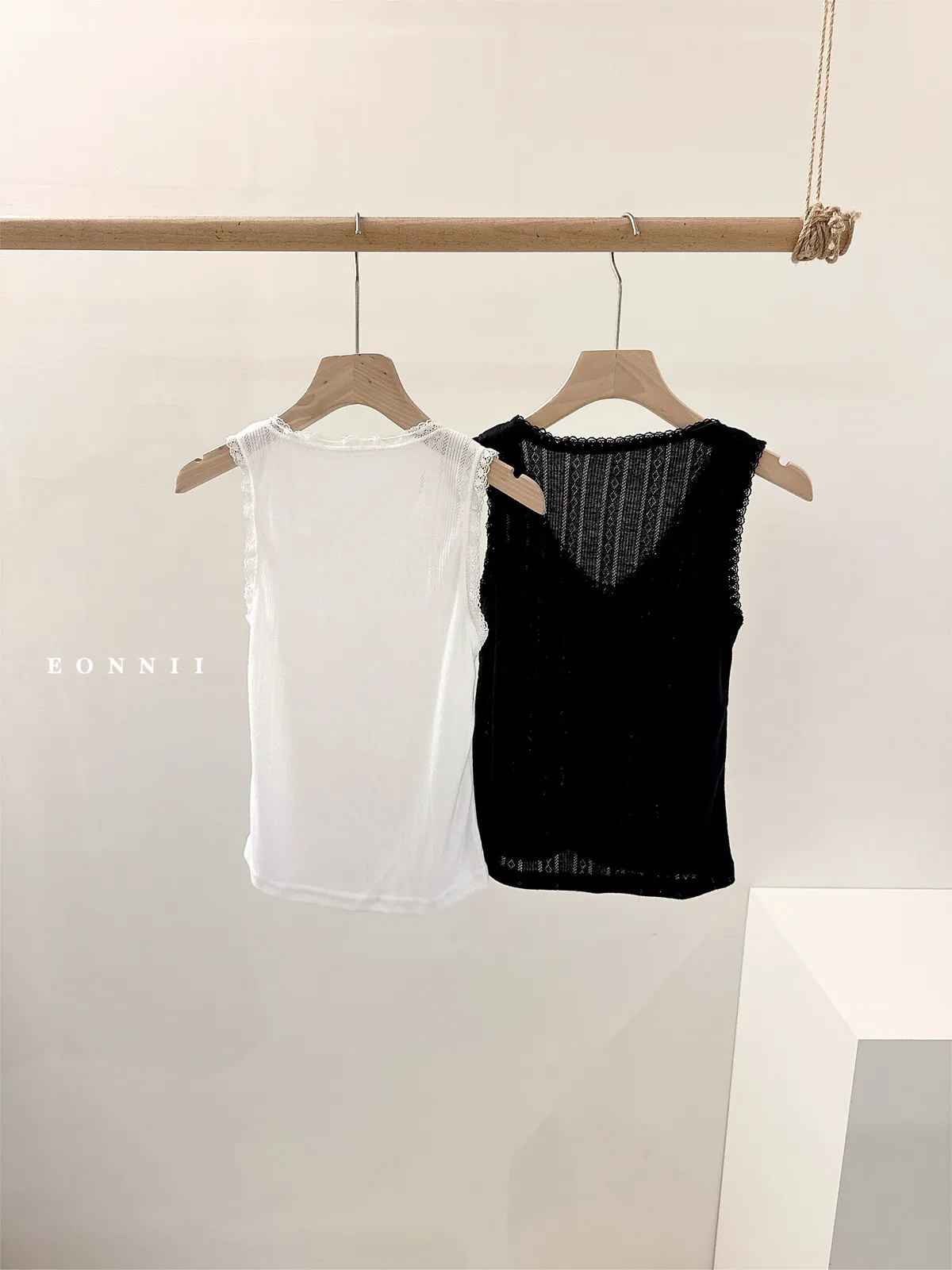 春夏𝐧𝐞𝐰🤍花邊綁結多釦無袖上衣,白/黑(現貨)