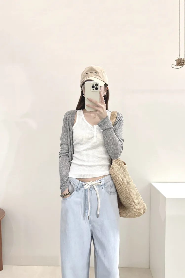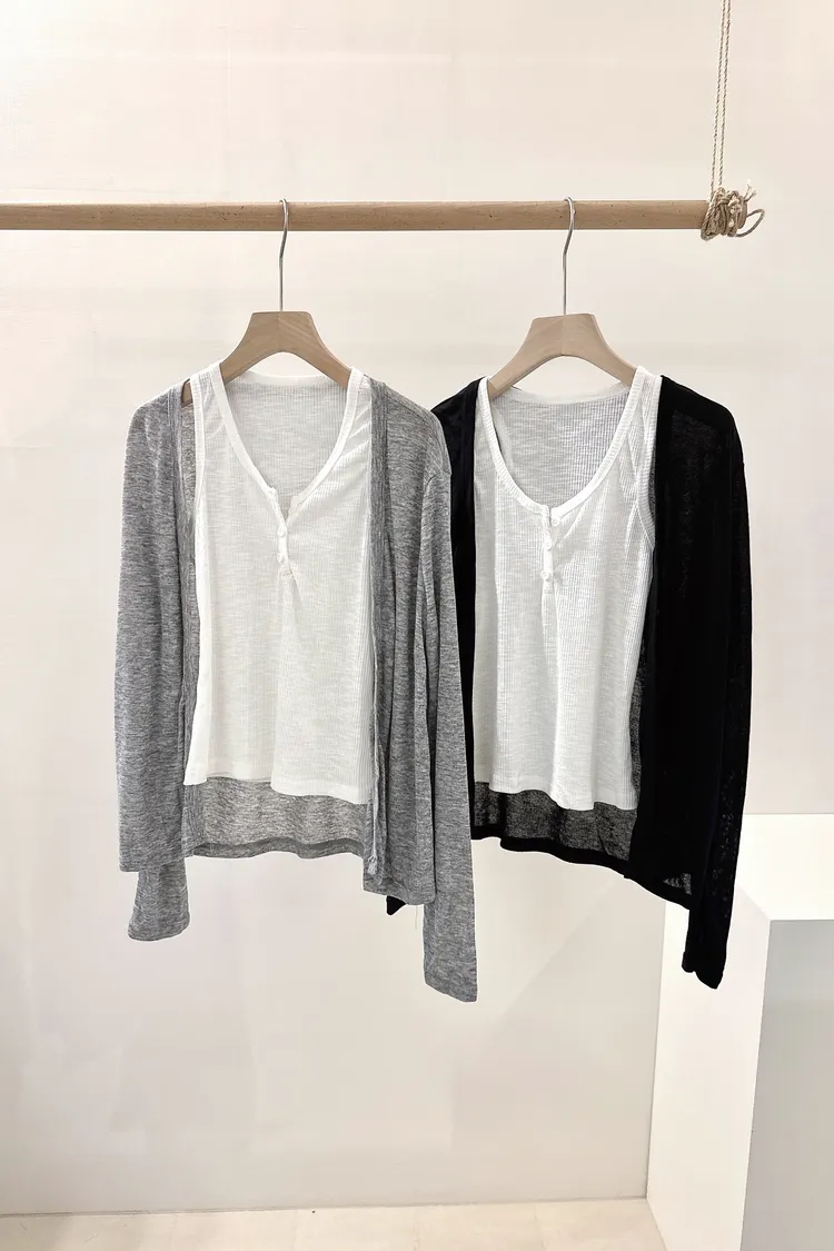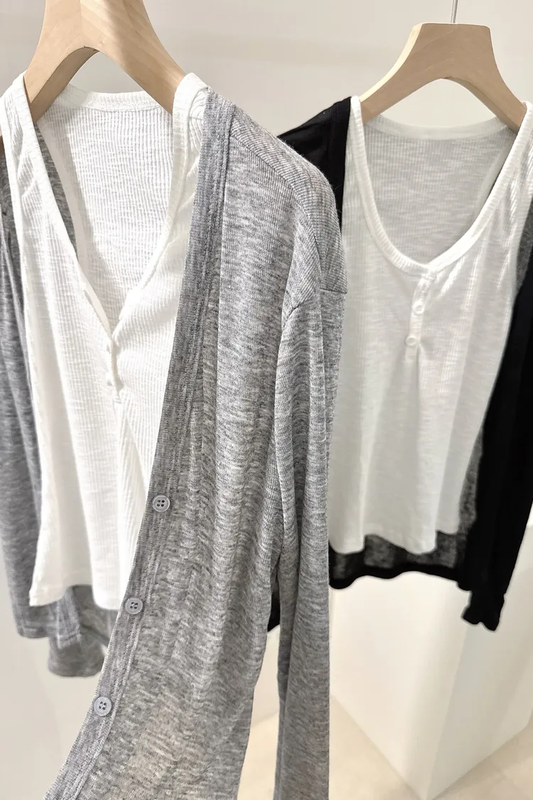 春夏𝐧𝐞𝐰🤍套裝,基本款棉外套+微透視背心,灰/黑(現貨黑)