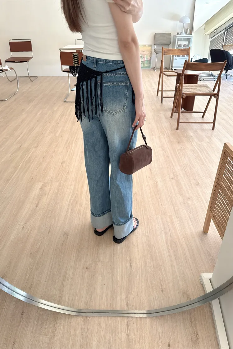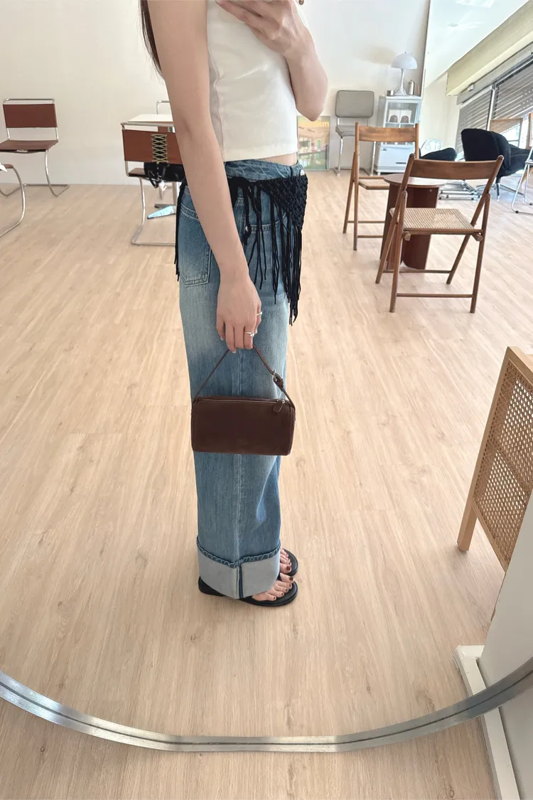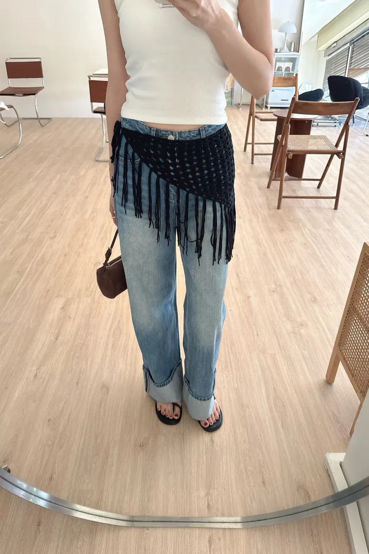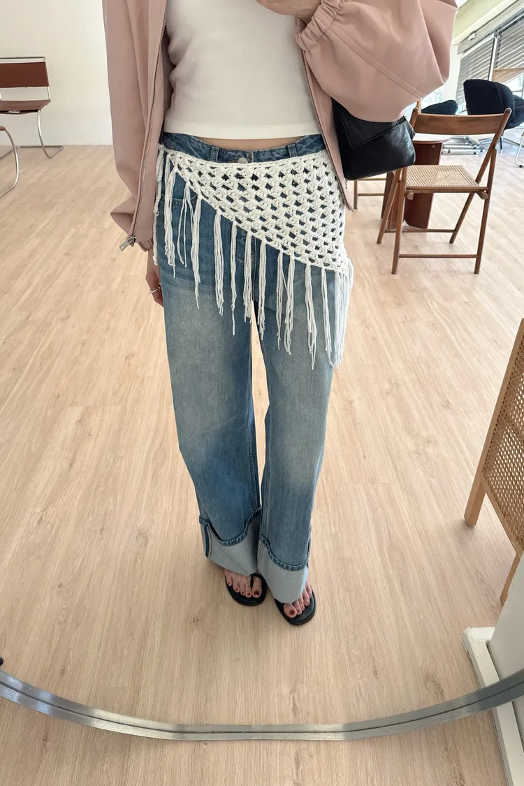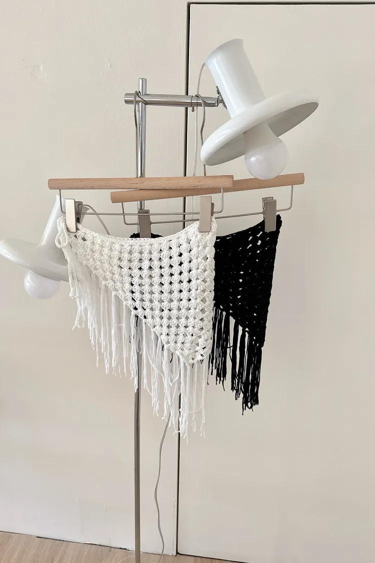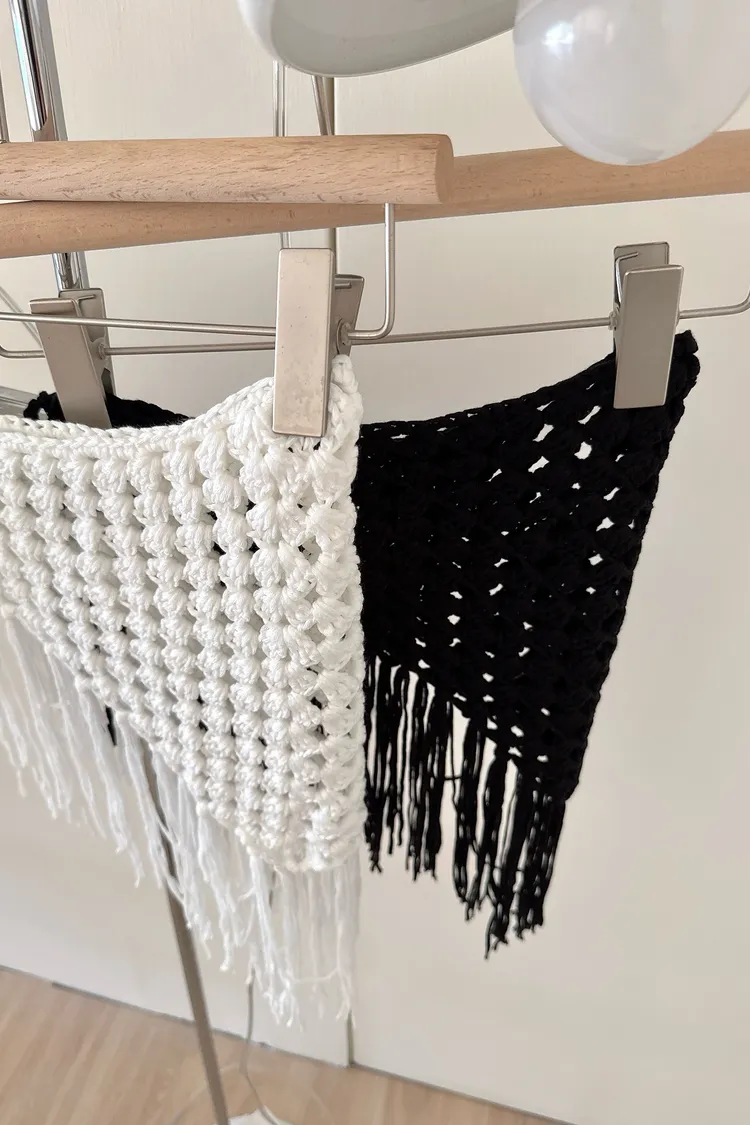 秋𝐧𝐞𝐰🍂針織流蘇腰巾,米白/黑
