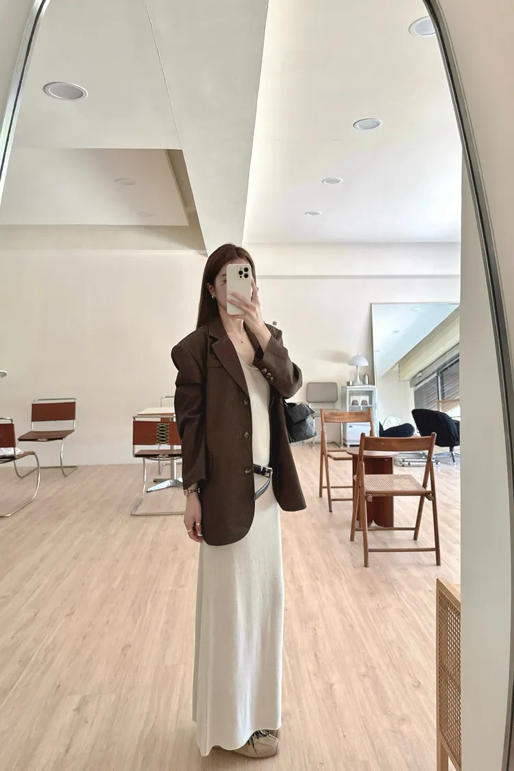 秋𝐧𝐞𝐰🍂基本款寬鬆西裝外套,咖(現貨)