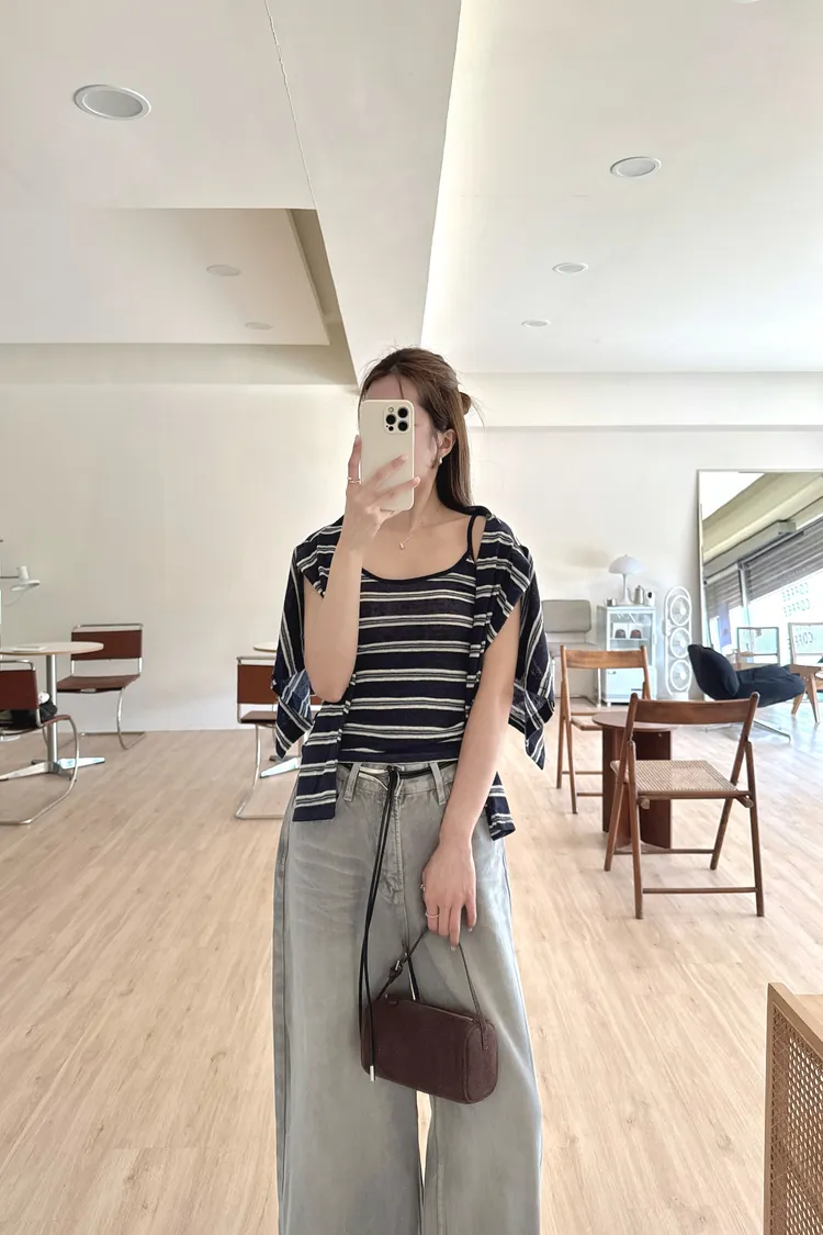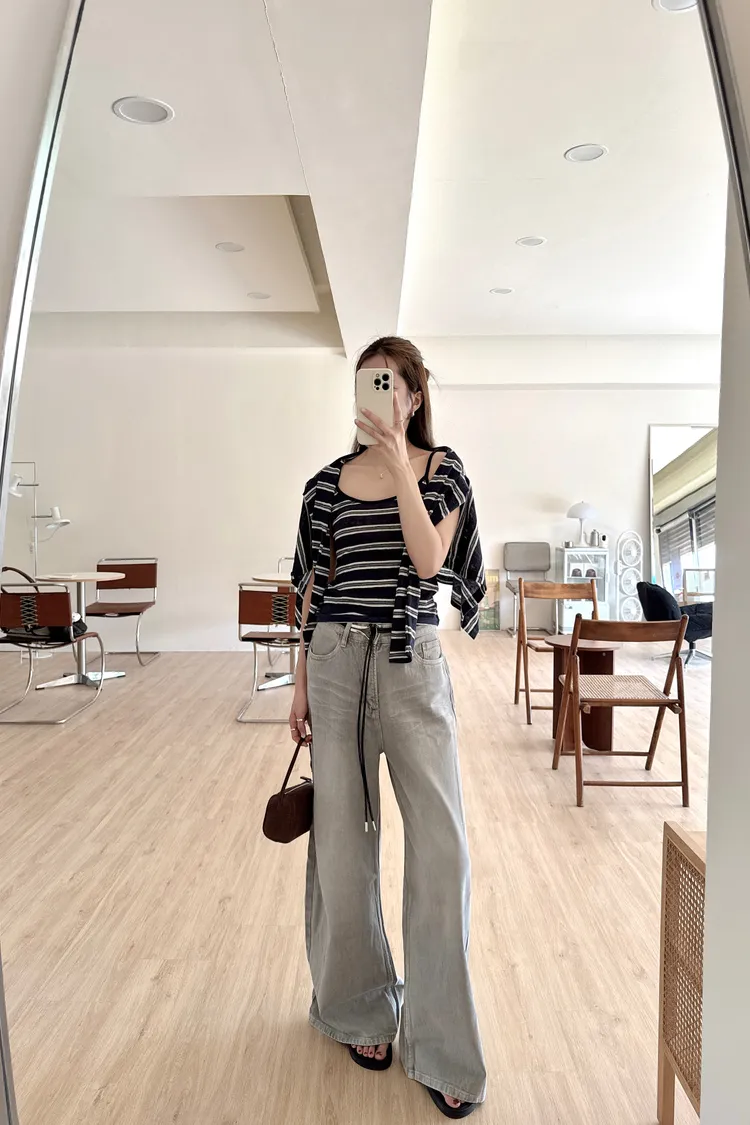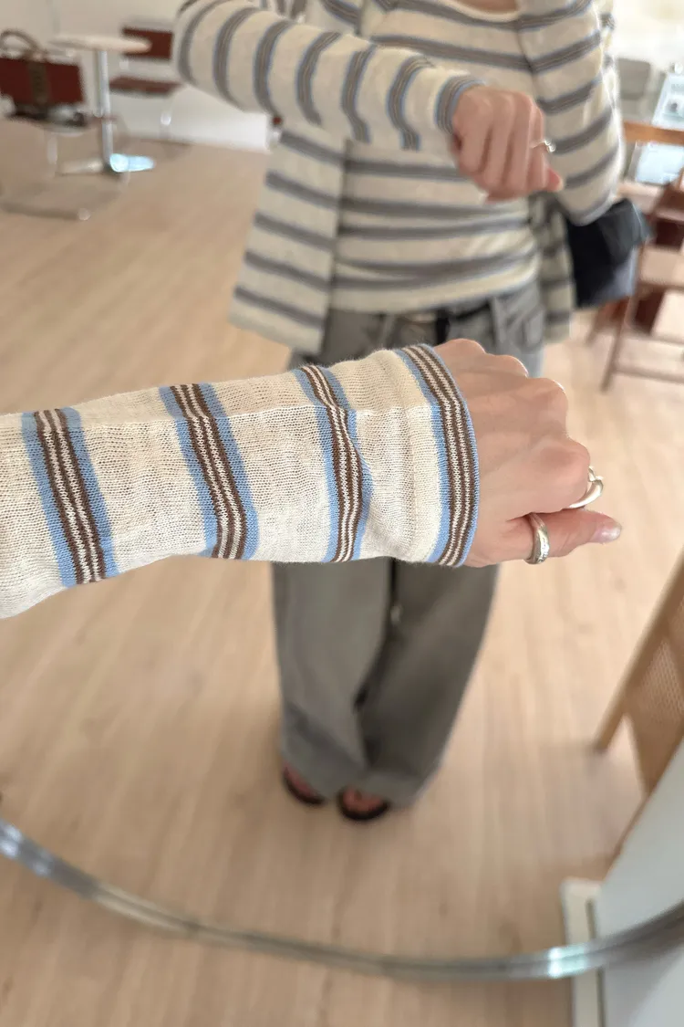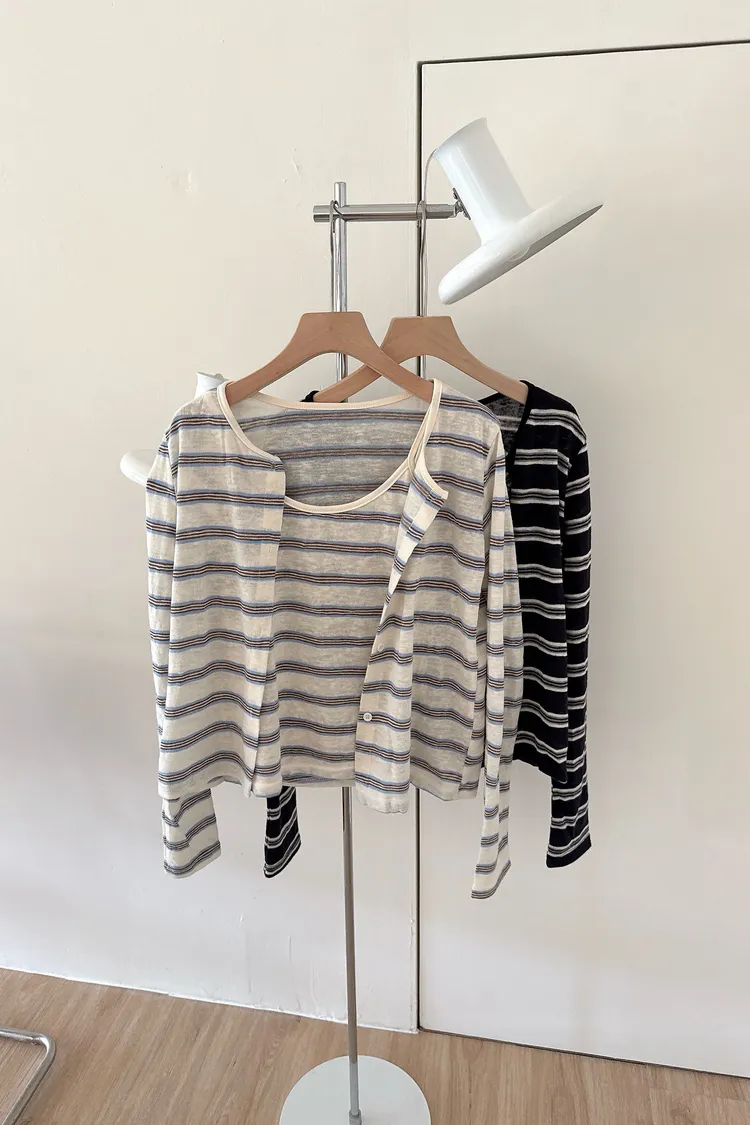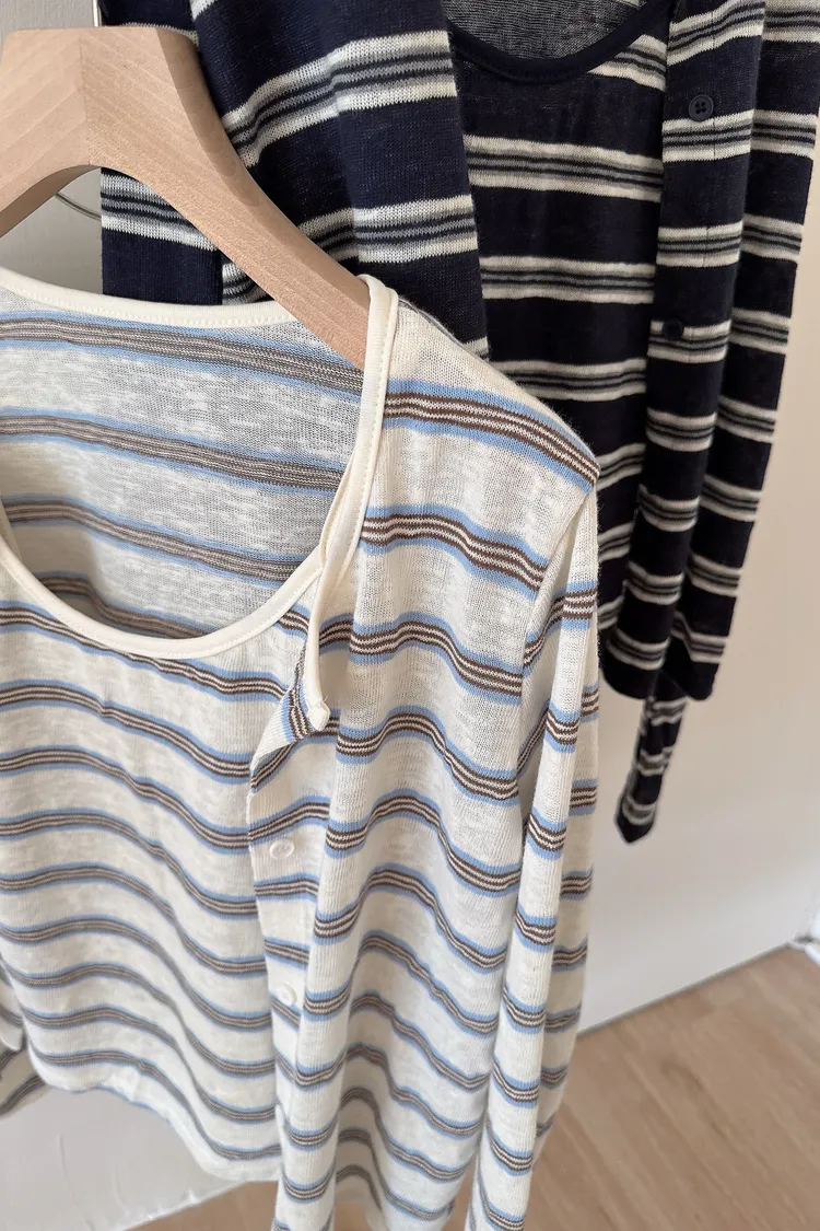 秋𝐧𝐞𝐰🍂套裝,撞色條紋外套+背心,米/深藍