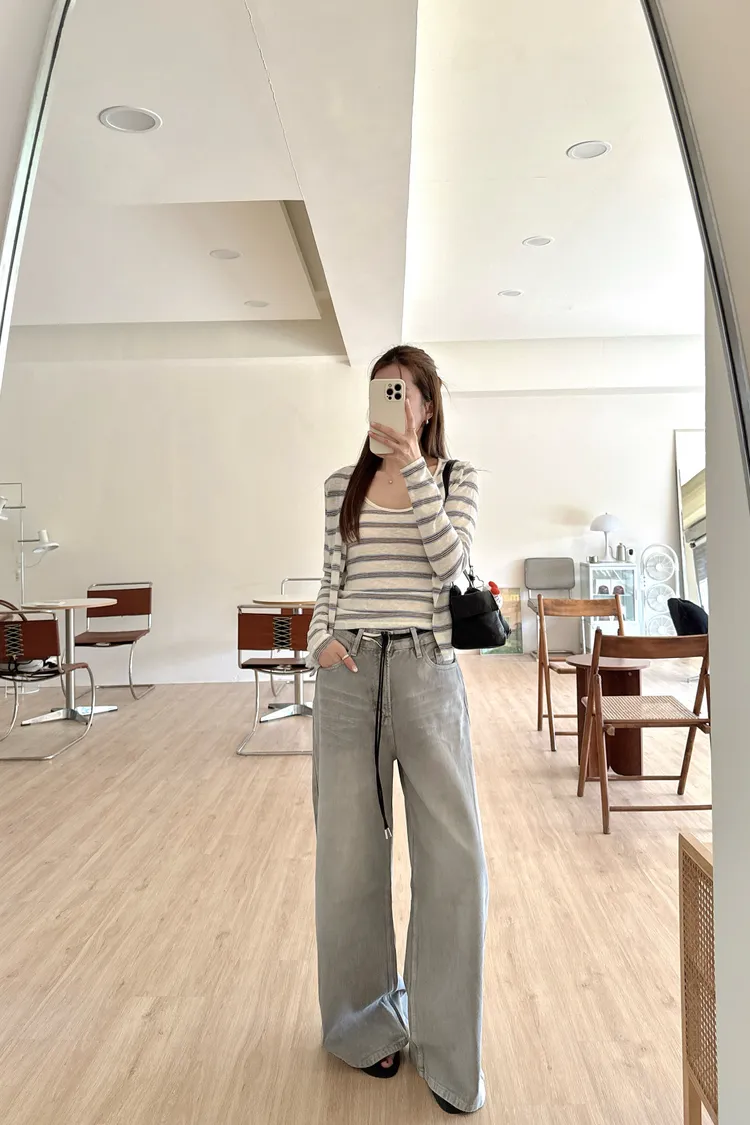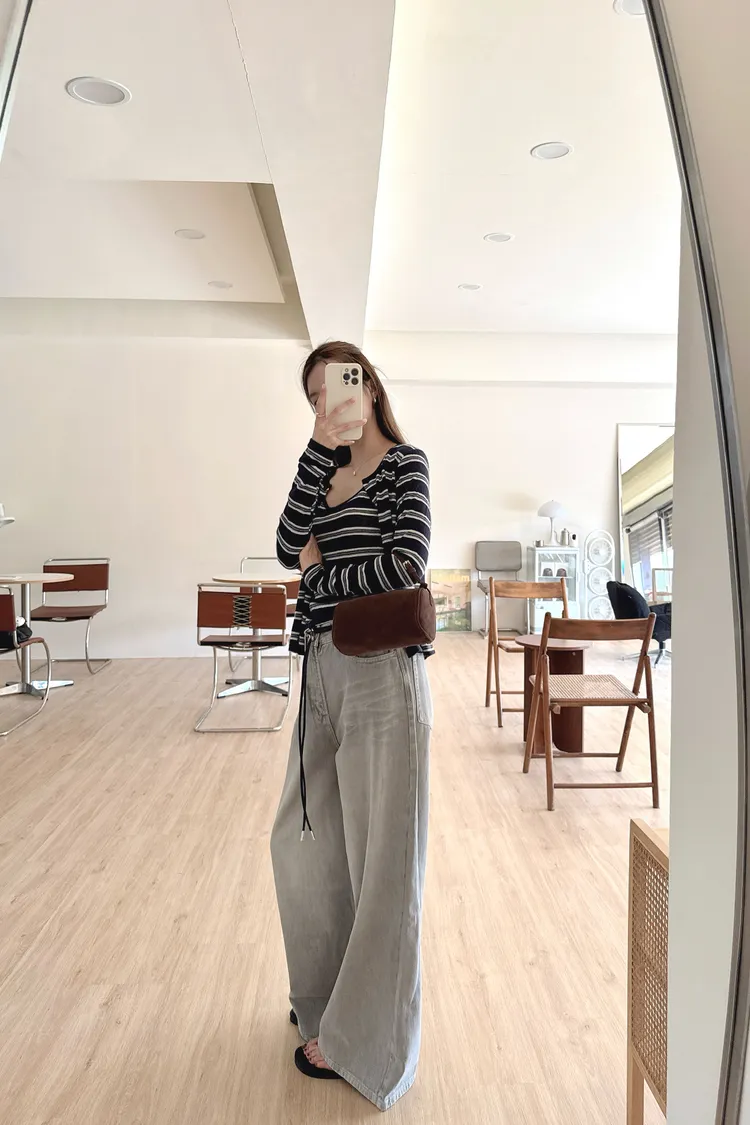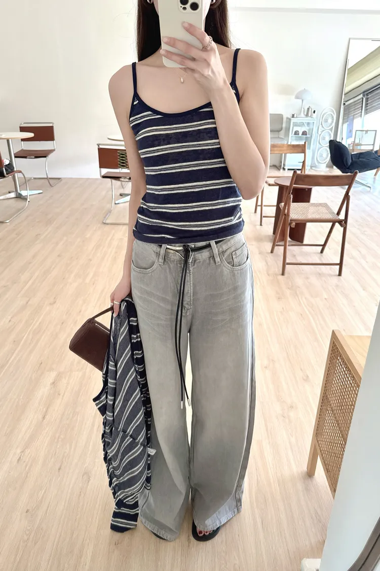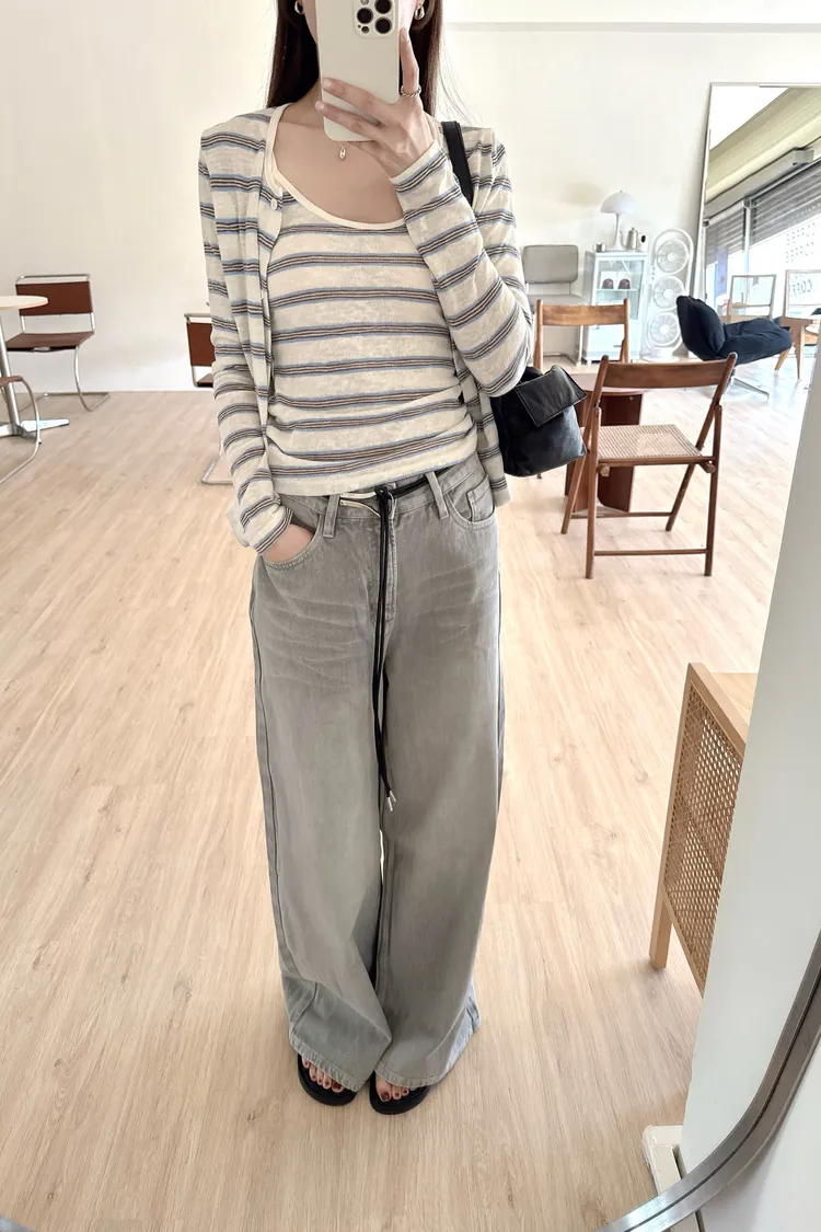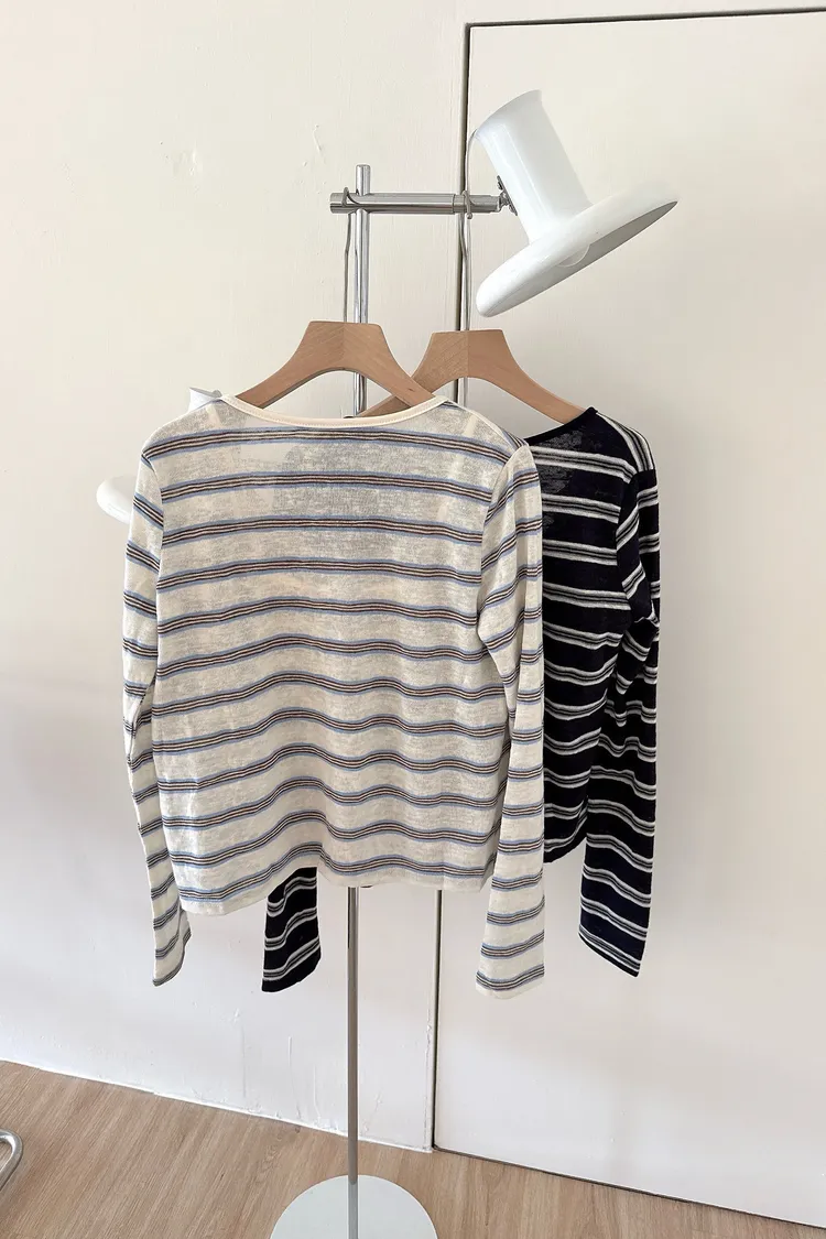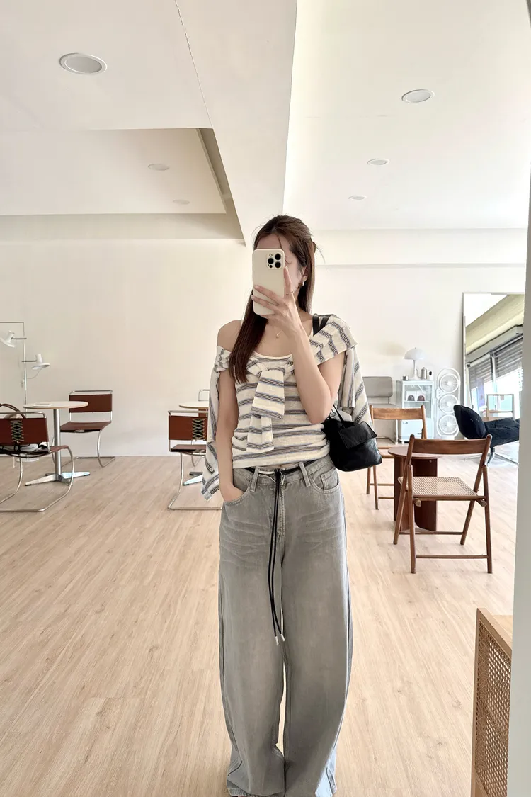 秋𝐧𝐞𝐰🍂套裝,撞色條紋外套+背心,米/深藍