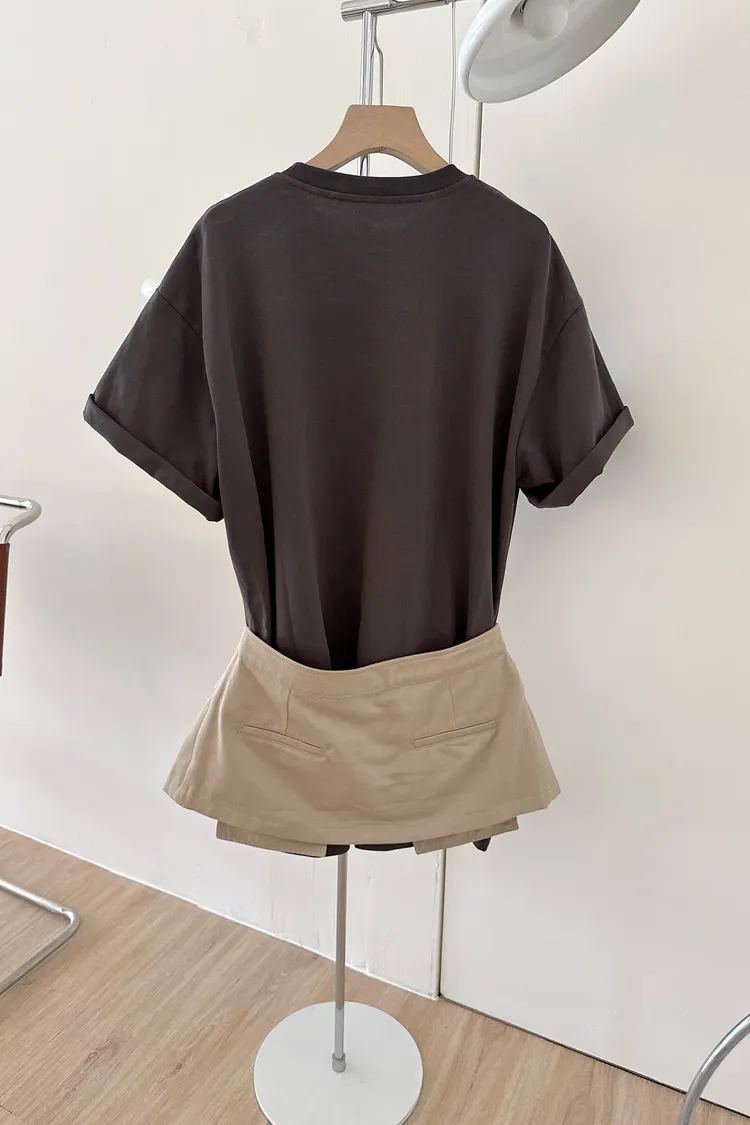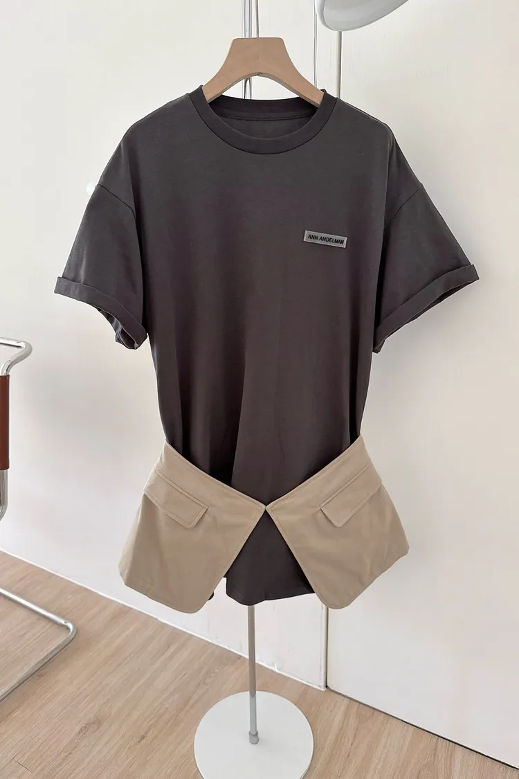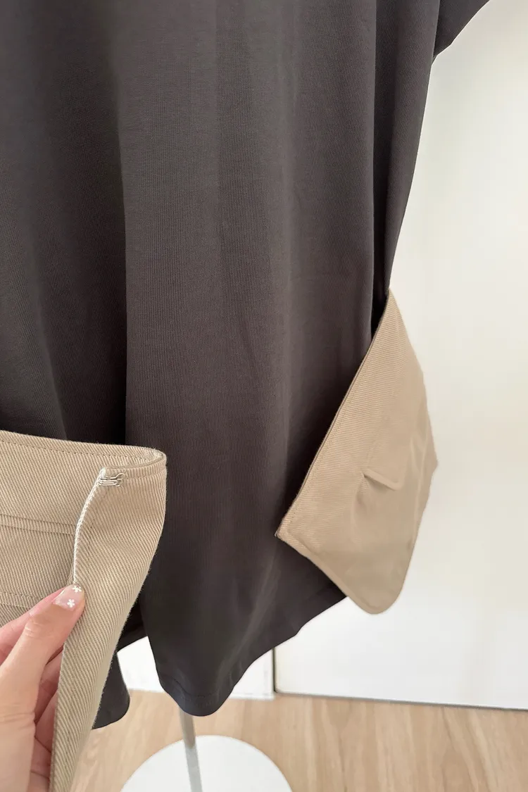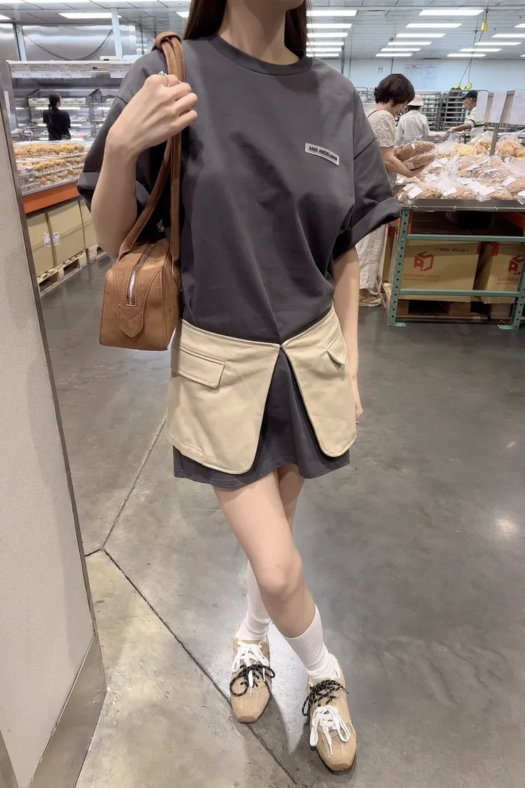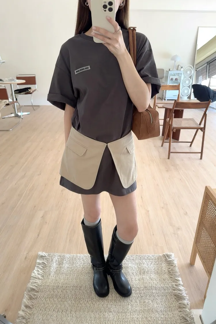秋𝐧𝐞𝐰🍂疊穿假兩件字母tee連裙,灰(現貨)