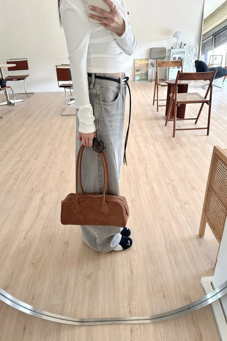 #下單前請查看購買須知、售後服務 可接受在下單❗️ ⚠️此款包包把手釦子會卡卡的不好開 不屬於瑕疵 **出貨沒有盒裝可能擠壓 材質:仿麂皮 📷闆娘:165/48 商品照片闆娘實穿實拍 每人身形胖瘦部位不同,建議參考商品平量尺寸
