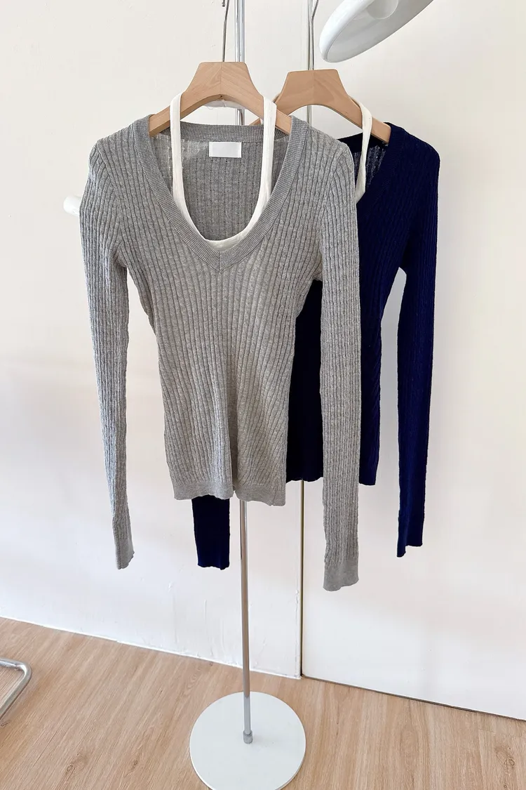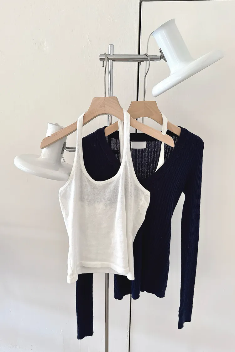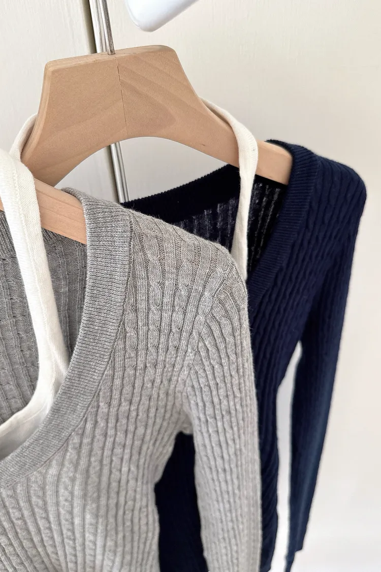 秋𝐧𝐞𝐰🍂套裝,麻花針織上衣+內搭背心,深藍/灰