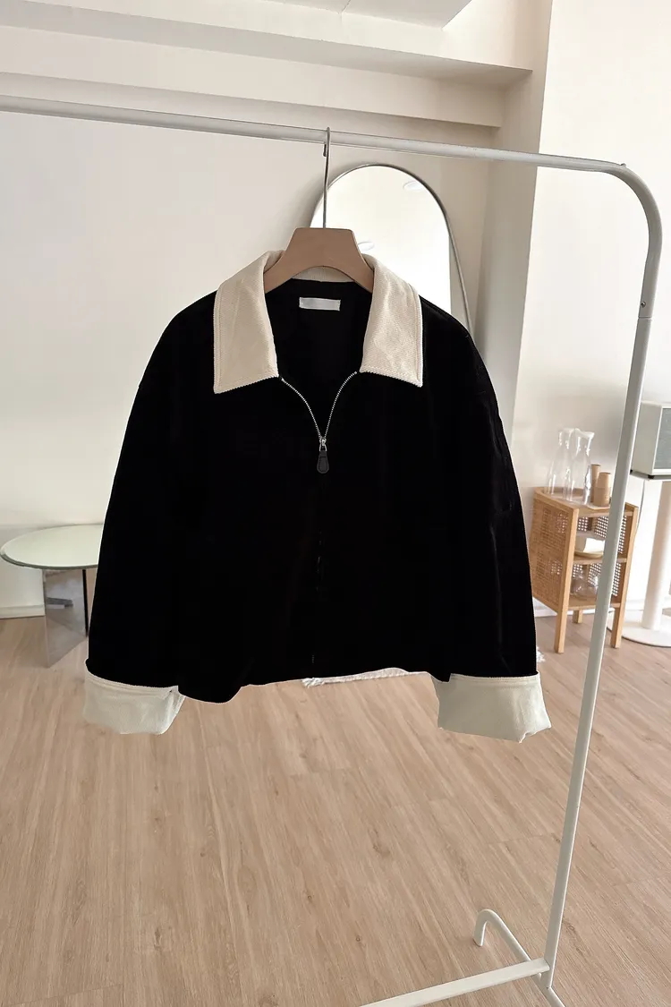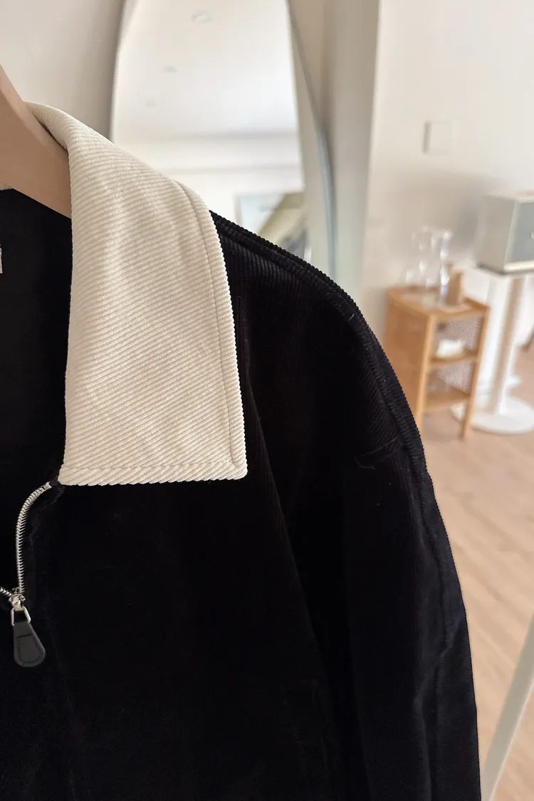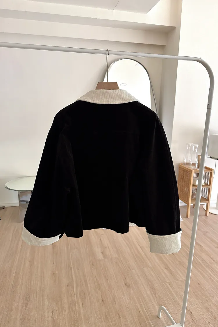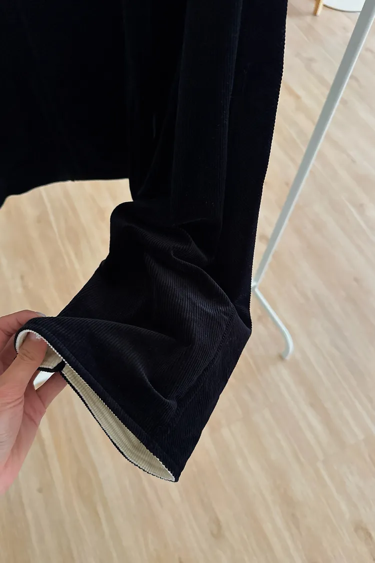 秋𝐧𝐞𝐰🍂撞色燈芯絨外套,黑(現貨)