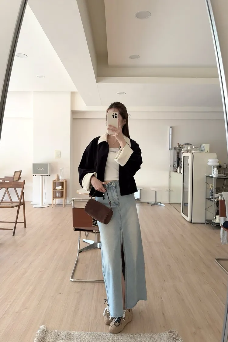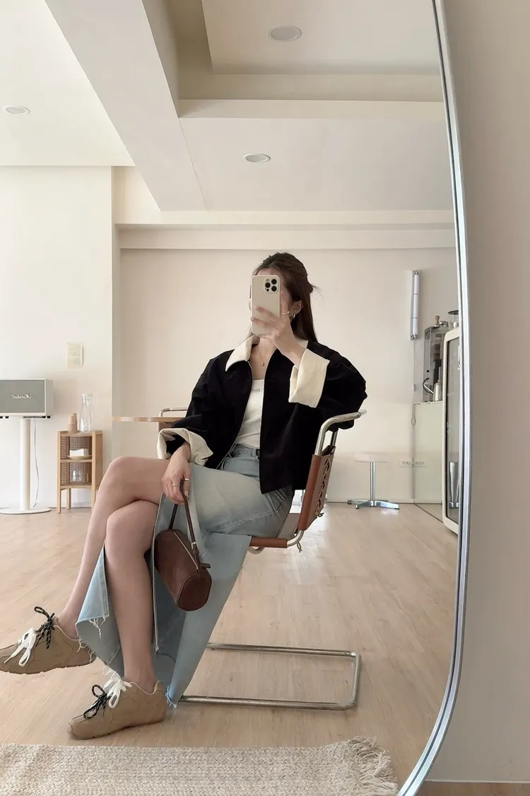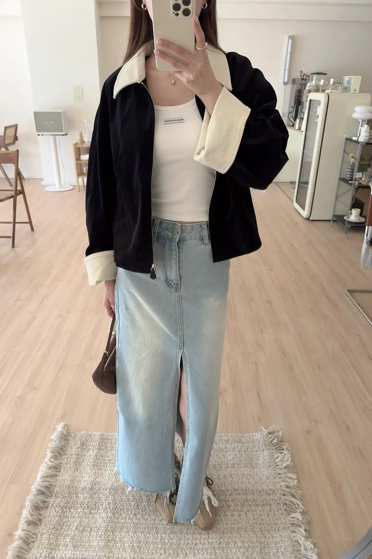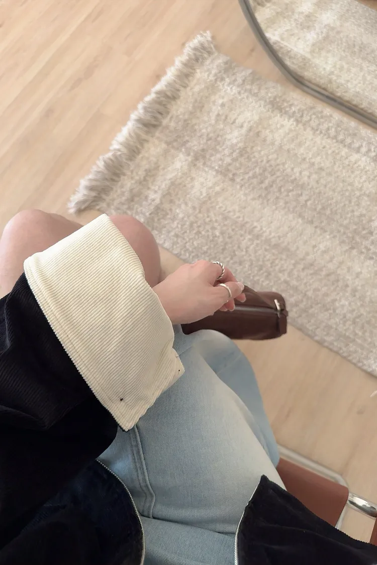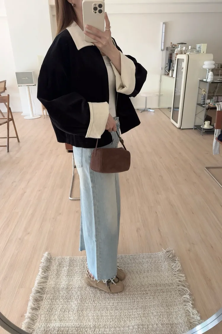 秋𝐧𝐞𝐰🍂撞色燈芯絨外套,黑(現貨)